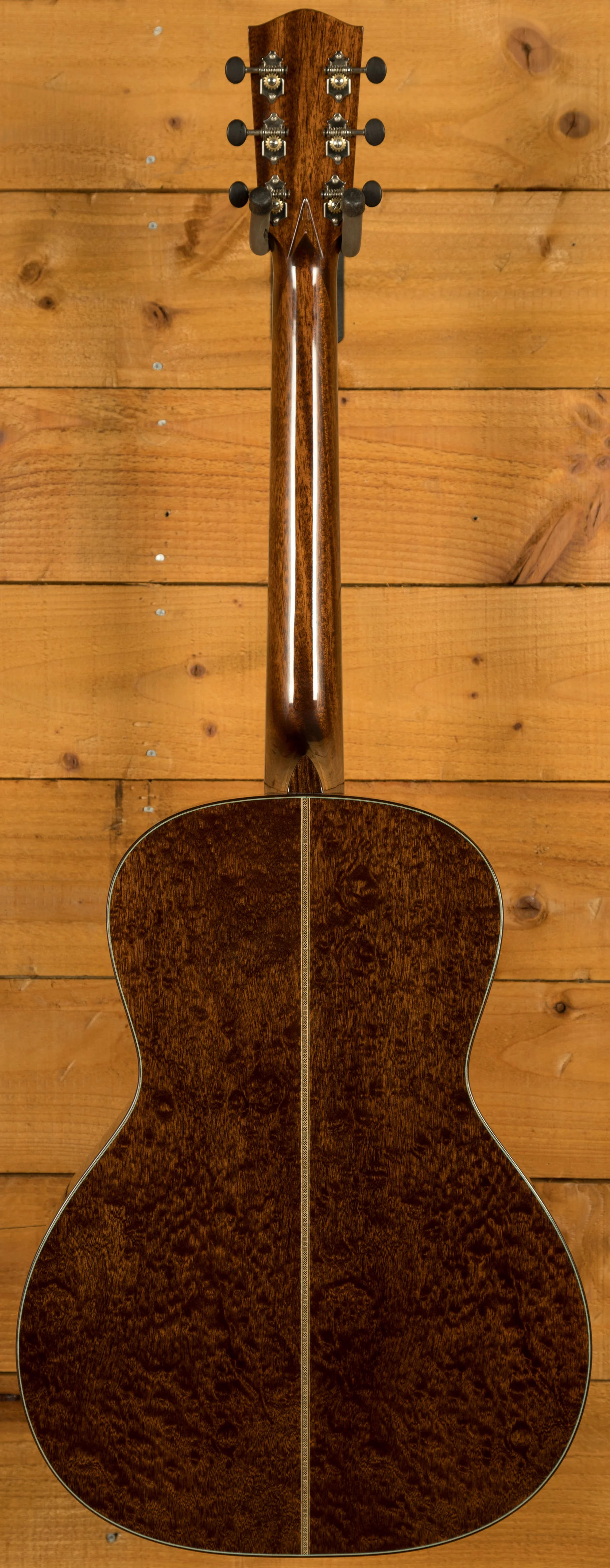 Crafted with meticulous attention to detail, the L-OOSS-QS model is a testament to Eastman's commitment to excellence. The mahogany neck, adorned with an ebony fingerboard, offers sublime playability and a comfortable grip, while the traditional even "C" neck profile ensures a familiar and inviting feel. The bone nut measures a versatile 1.68" (43mm), perfectly accommodating different playing styles. The 20 Jescar-FW43080 fretwire and a scale length of 24.75" further contribute to the impeccable playability of this instrument.