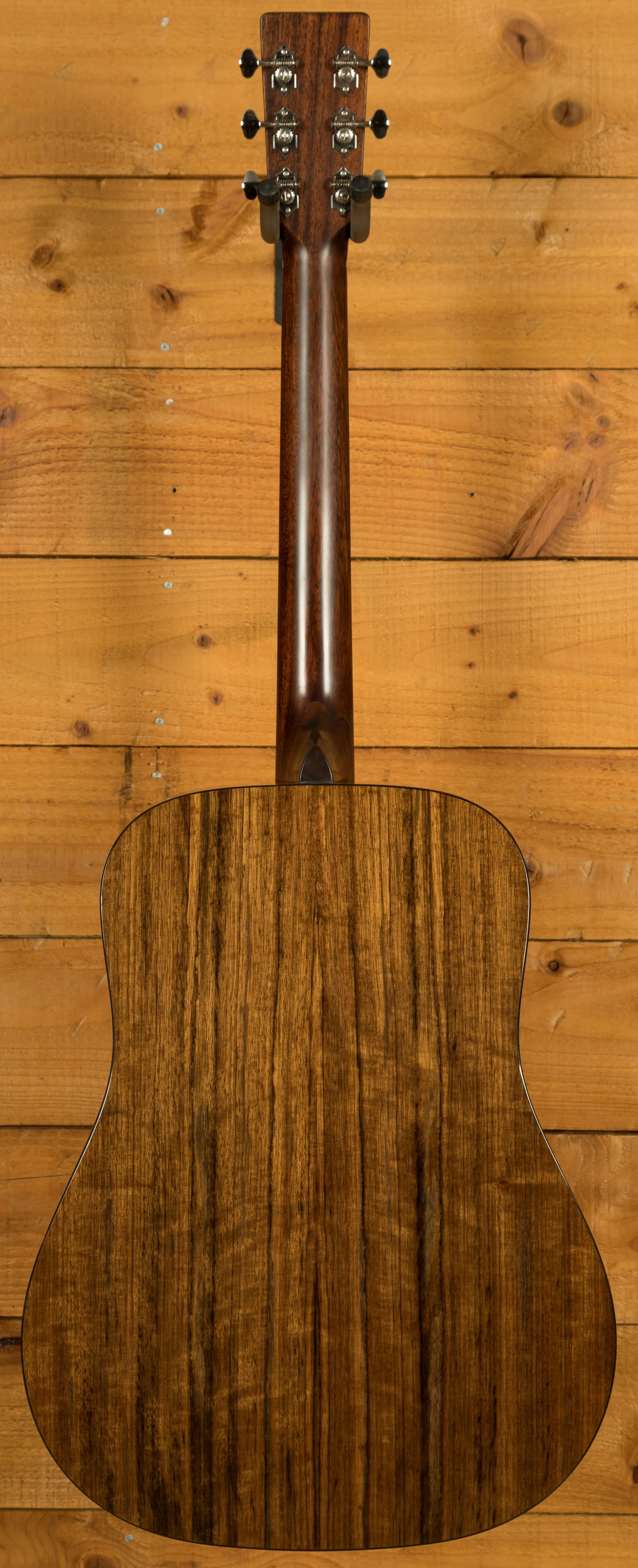 Crafted for outstanding sound projection, the E3D Deluxe features a solid Sitka spruce top and solid ovangkol back and sides. This combination produces a rich, balanced tone with remarkable clarity and depth. The hand-carved scalloped X bracing further enhances the guitar's resonance, allowing every note to ring out with incredible sustain and harmonic complexity. Whether you're strumming chords or fingerpicking intricate melodies, the E3D Deluxe delivers a dynamic and expressive sound that captivates both player and audience.