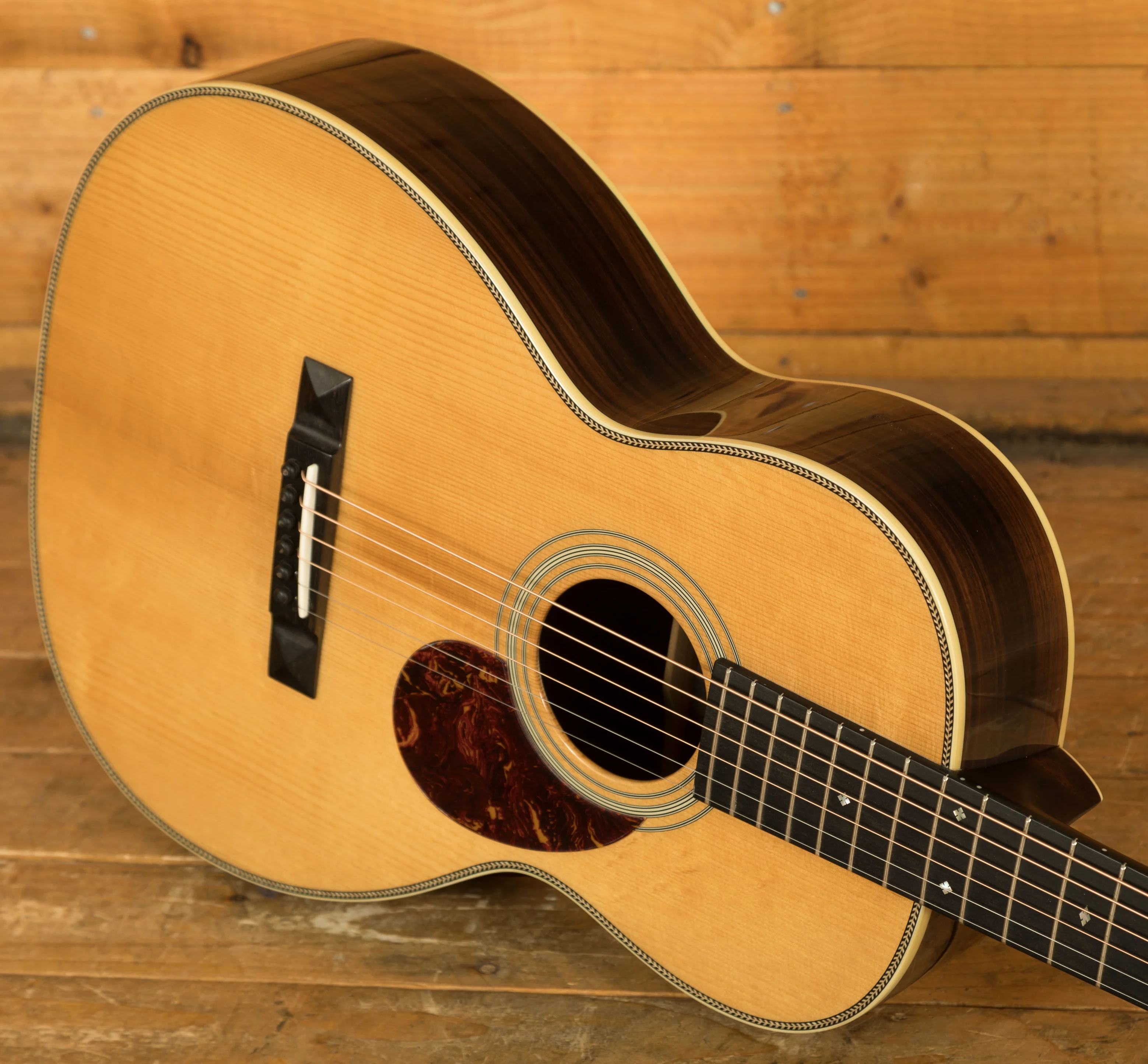 With meticulous attention to detail, the E20OO-TC is finished with a Truetone gloss finish on the body top, back, and sides, showcasing the natural beauty of the tonewoods. The tortoise shell pickguard adds a vintage touch while providing protection for the guitar's top.
