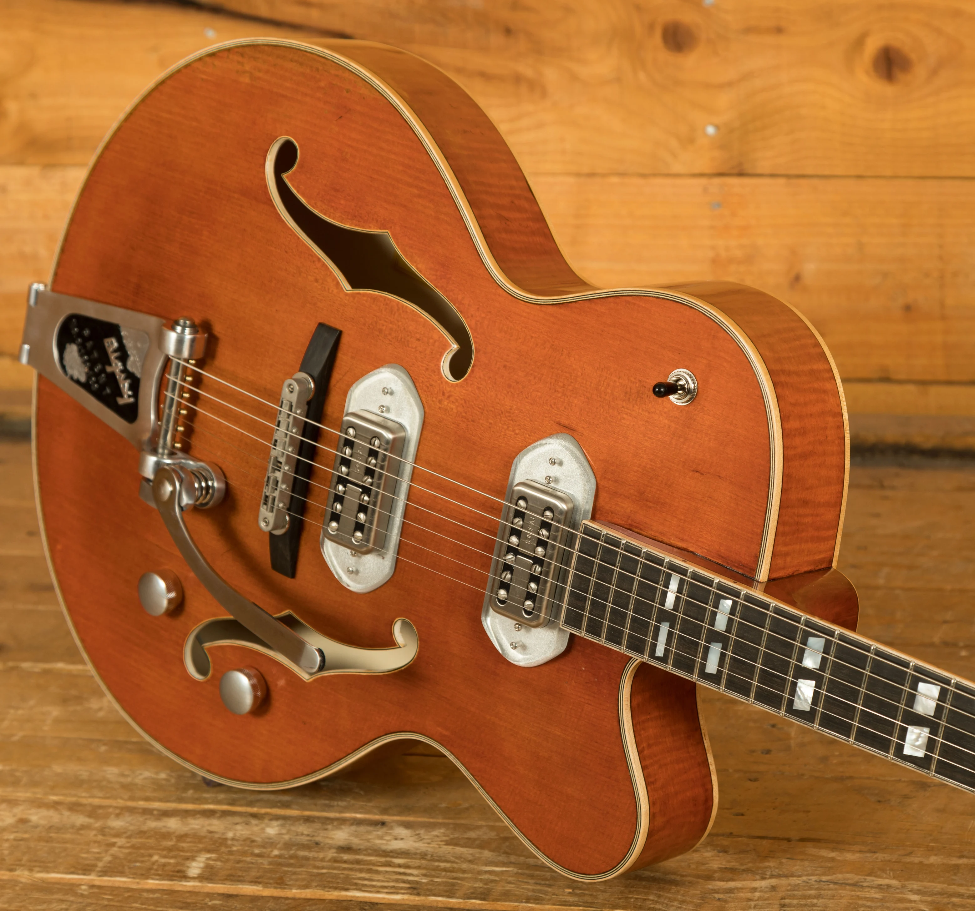 When it comes to pickups, the T58/v is equipped with the legendary TV Jones Classic Filtertron pickups that deliver vintage twang and growl. It has tonal characteristics in between bright single-coils and dark humbuckers with clean, compressed treble and mids breath life over a tight and controlled low-end.