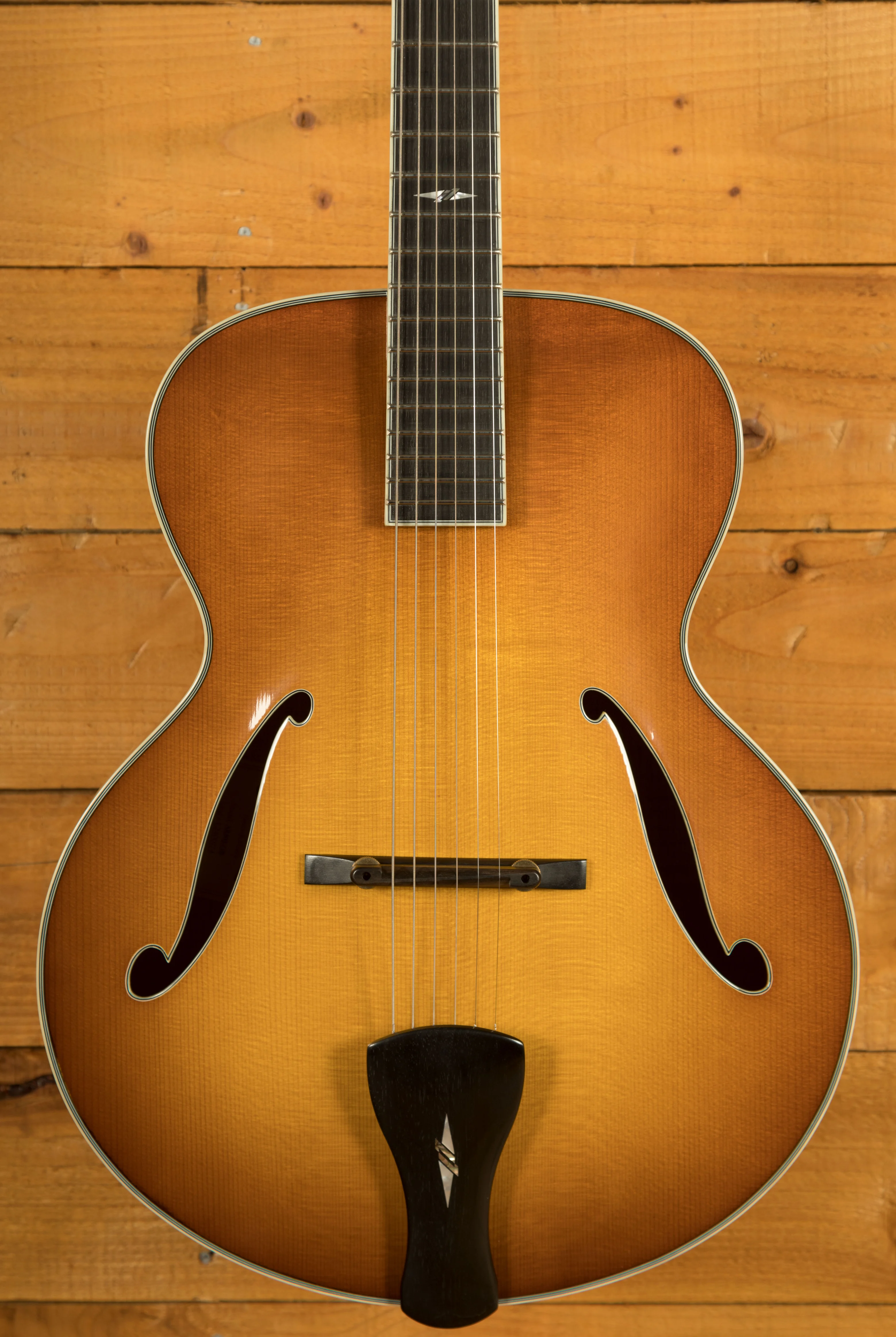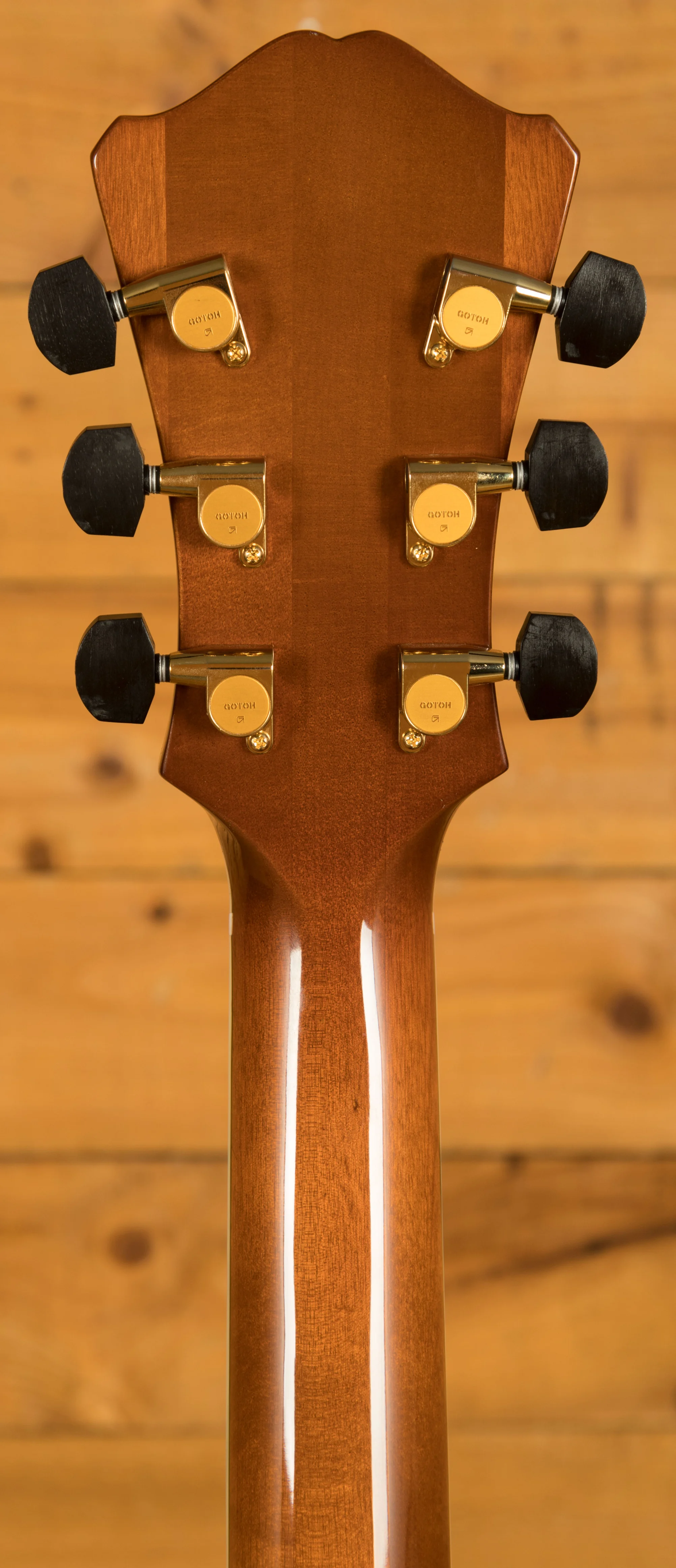 The AR805's superior construction extends to its hardware and aesthetics. The gold hardware adds a touch of elegance, complemented by the beautiful ebony bridge and tailpiece. The adjustable ebony bridge allows for precise action adjustment, ensuring optimal playability and comfort. The Gotoh SG360 tuners provide exceptional tuning stability, so you can focus on your performance without worrying about constant tuning adjustments.