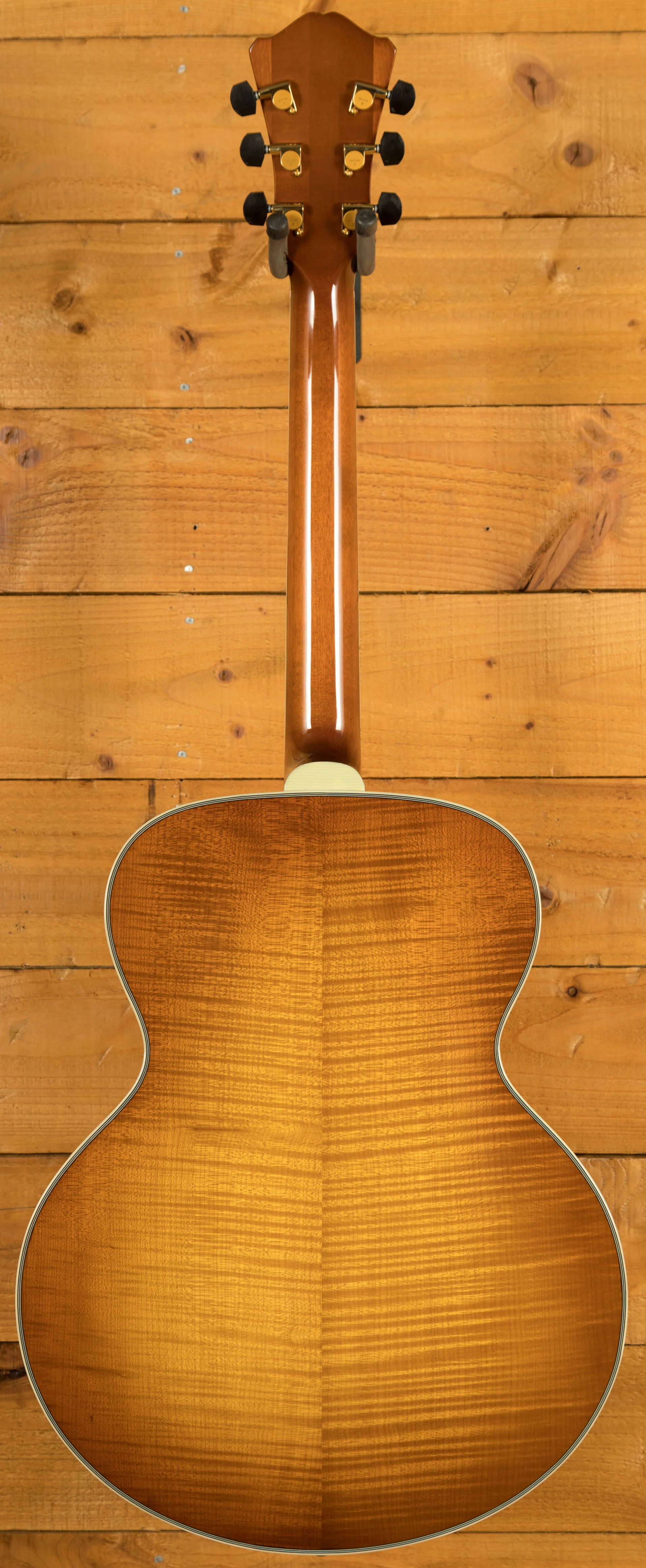 The solid spruce top and solid handcarved maple back and sides contribute to the guitar's exceptional resonance and projection, providing a well-balanced, full-bodied sound that will captivate both the player and the audience.