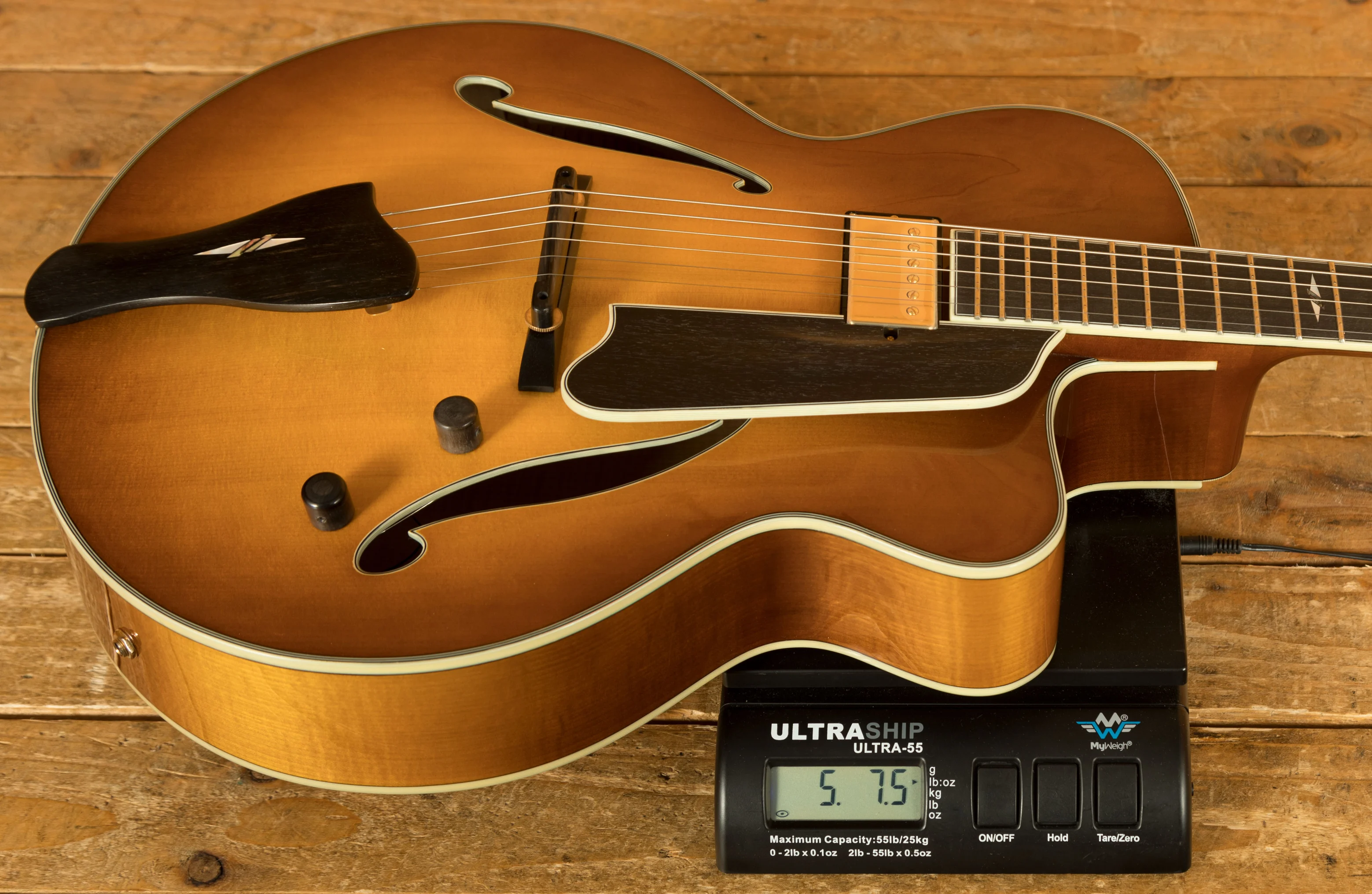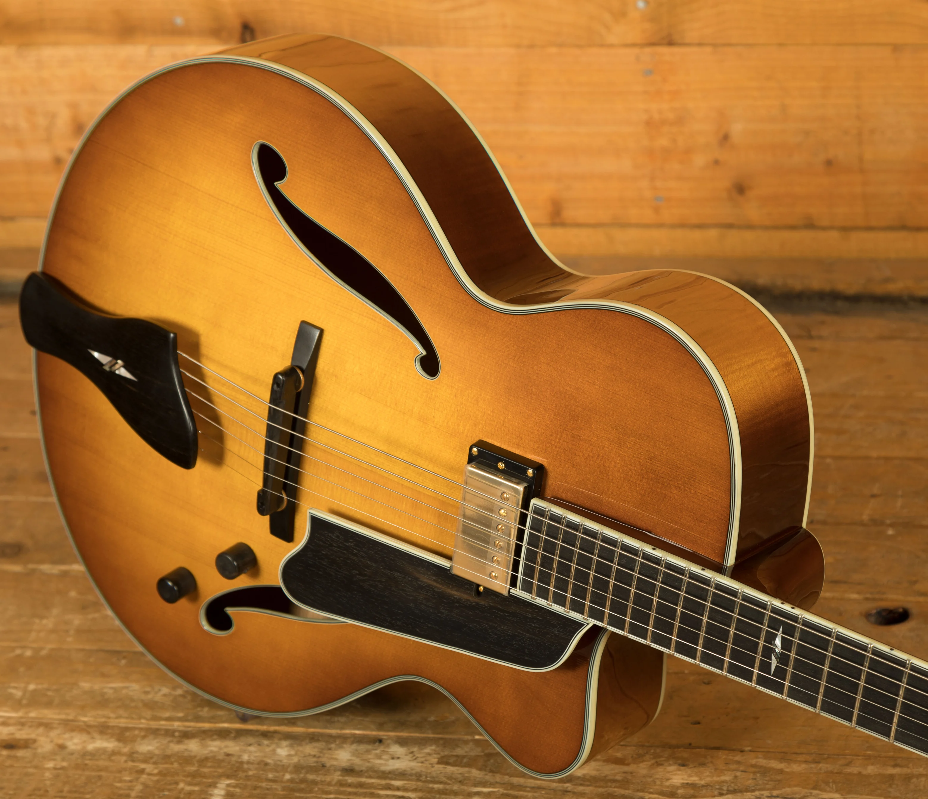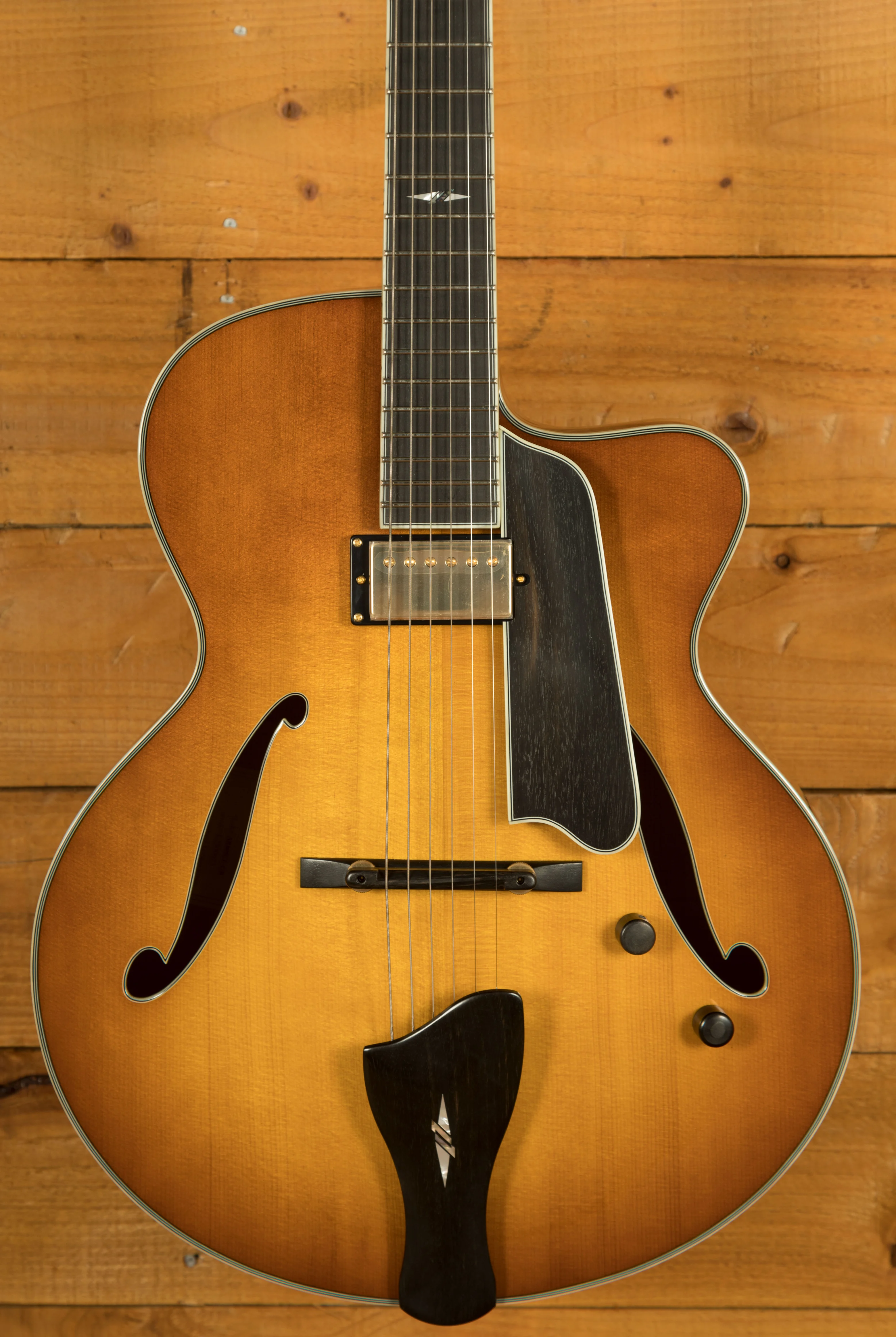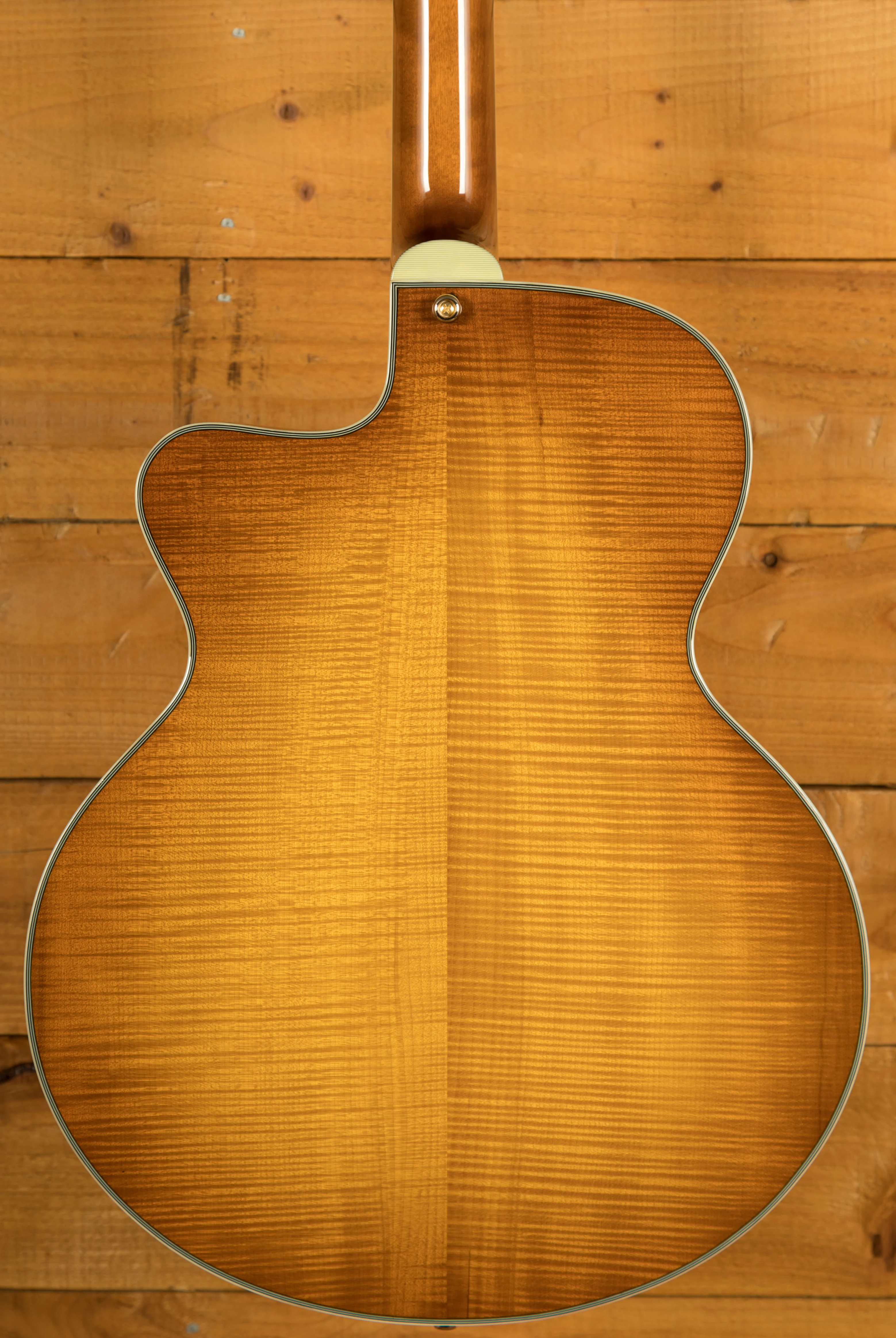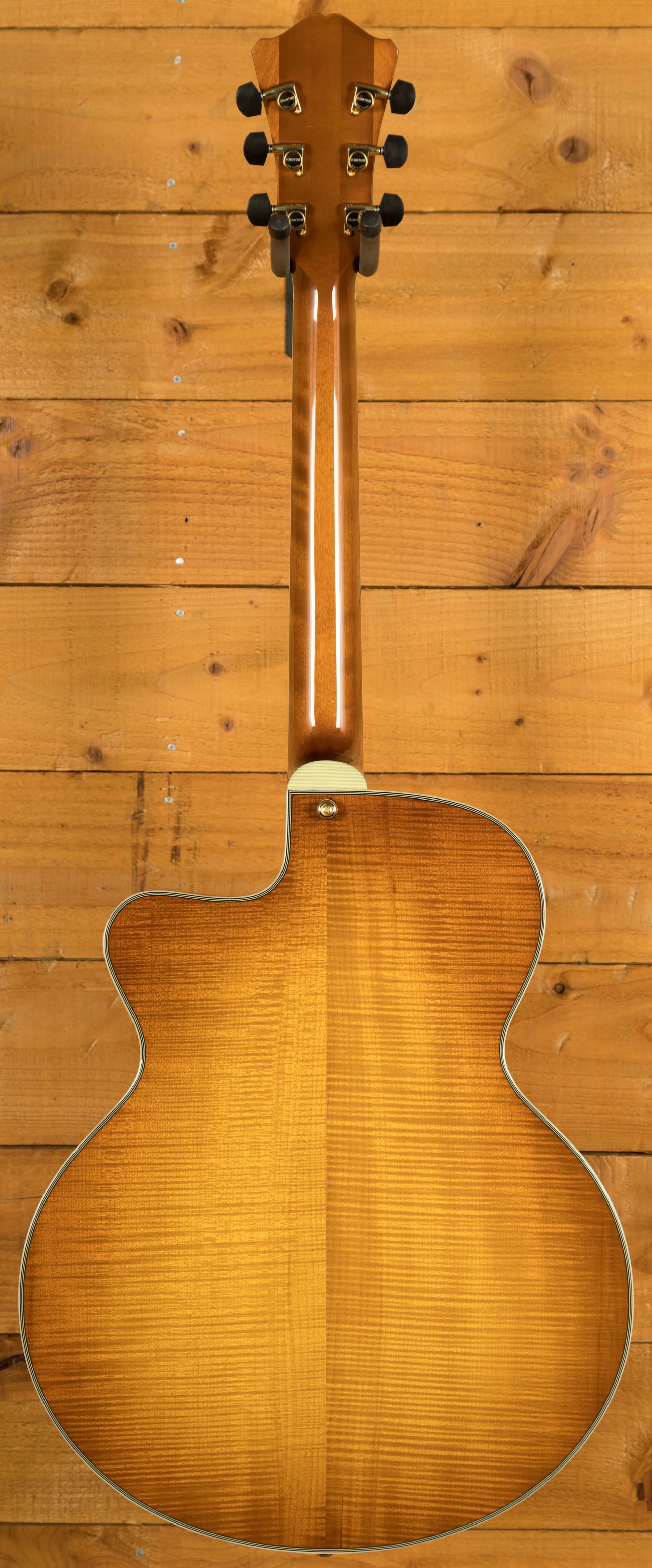 Experience sonic perfection with the Lollar Custom Wound Imperial neck pickup, meticulously calibrated to capture every nuance and deliver rich, warm tones that will leave you mesmerised. The solid spruce top and solid handcarved maple back/sides contribute to the guitar's exceptional resonance and projection, providing a well-balanced, full-bodied sound that will captivate both the player and the audience.