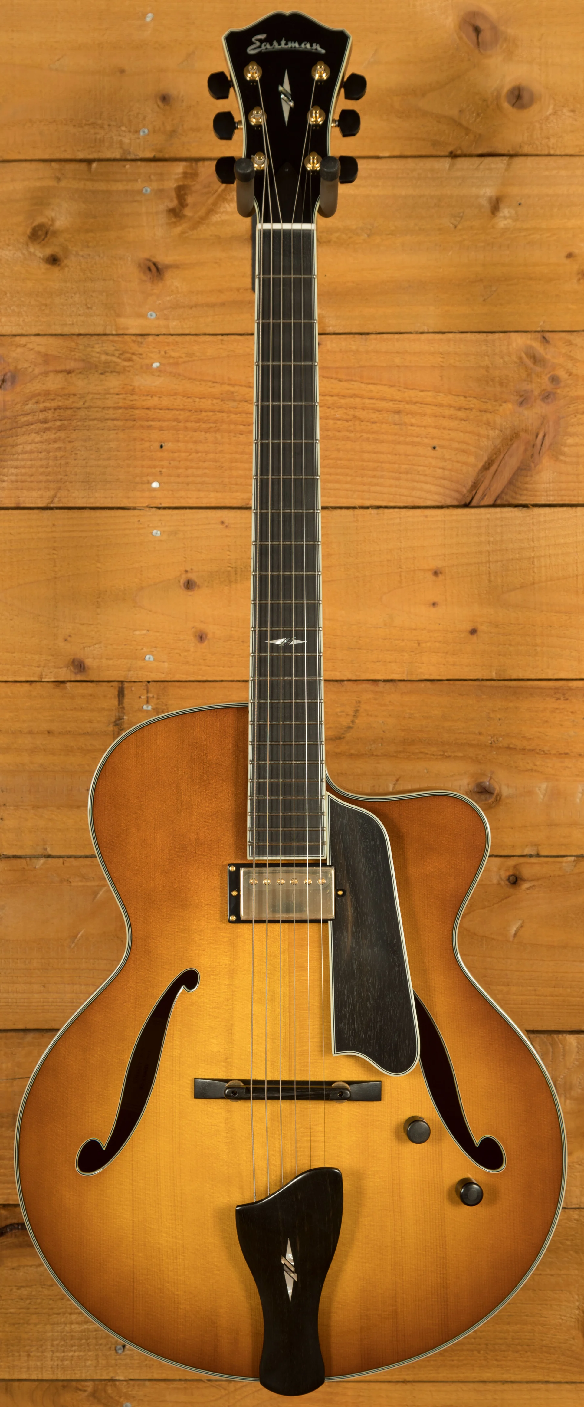 The AR805CE's superior construction extends to its hardware and aesthetics. The gold hardware adds a touch of elegance, complemented by the beautiful ebony bridge and tailpiece. The adjustable ebony bridge allows for precise action adjustment, ensuring optimal playability and comfort. The Gotoh SG360-EN01GG tuners with ebony buttons provide exceptional tuning stability, so you can focus on your performance without worrying about constant tuning adjustments.