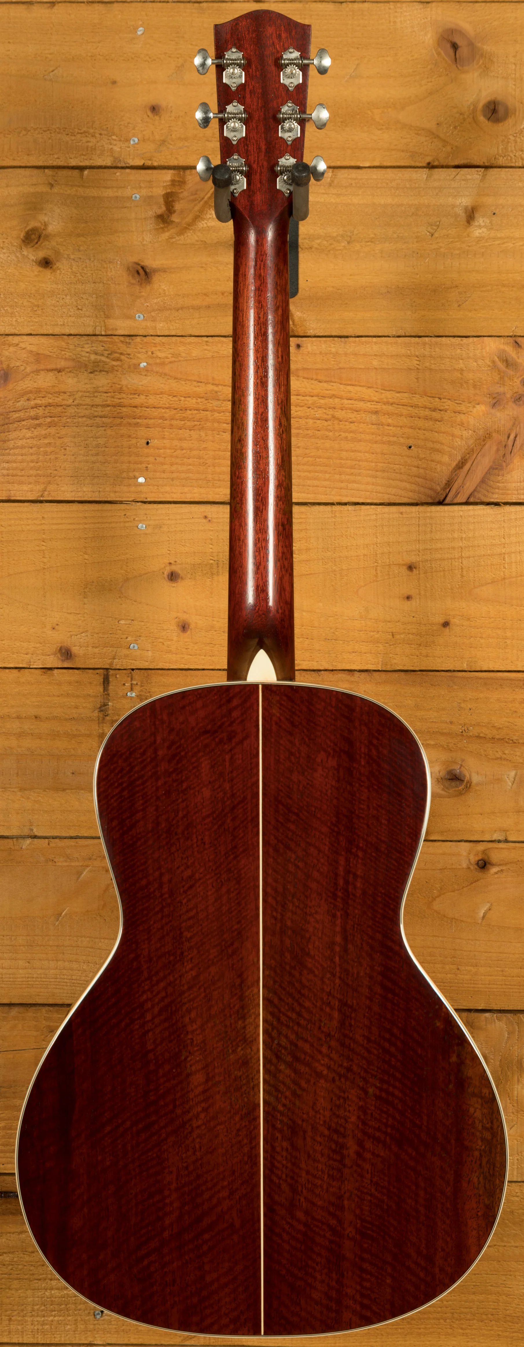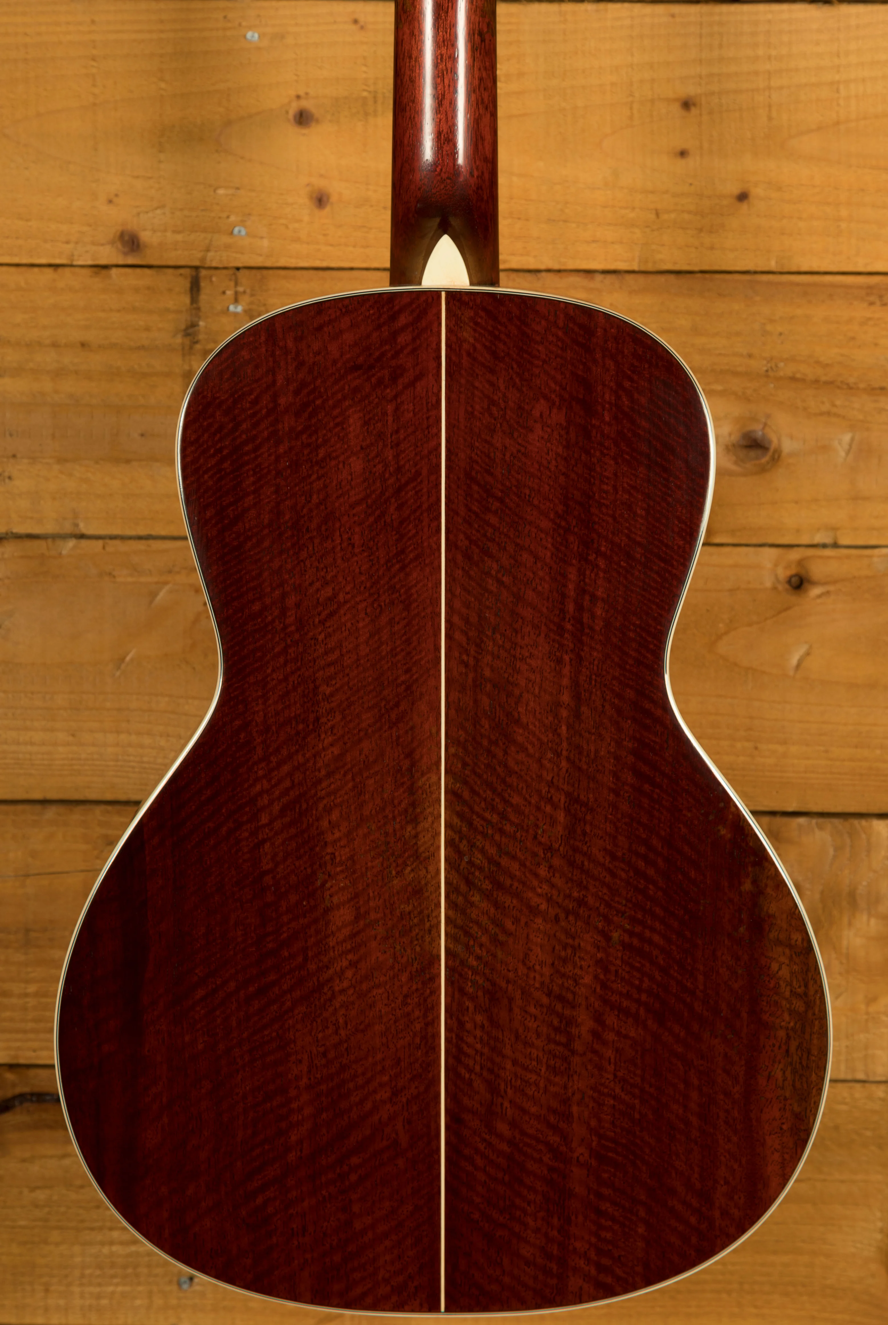 Aesthetically pleasing and structurally remarkable, the E10OOSS/v boasts a solid Adirondack spruce top that projects incredible resonance and a nuanced tonal palette. Combined with the solid mahogany body back and sides, this guitar delivers a balanced and articulate sound with warmth and depth that captivates both performers and listeners. The hand-carved scalloped X bracings ensure optimal vibration transfer, contributing to the instrument's exceptional responsiveness and dynamic range.