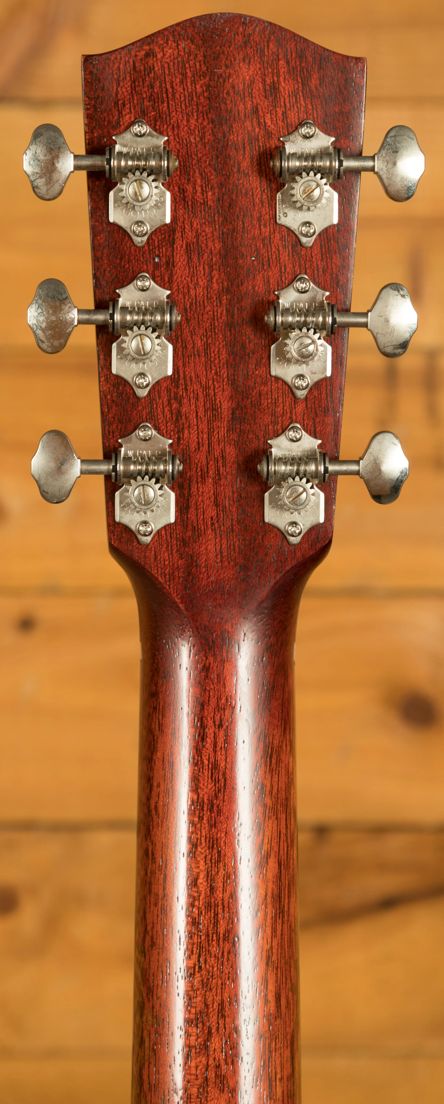 Featuring a rosewood and bone bridge/saddle with a spacing of 2-5/32", this guitar offers precise string placement and optimal string-to-body energy transfer. The classic rosette and pearl dot inlays add a touch of sophistication, reflecting the instrument's fine craftsmanship. The dual-acting truss rod allows for precise adjustment, ensuring optimal playability and preventing issues such as bowing or buzzing. The ivoroid binding elegantly frames the guitar's body, while the pearl headstock logo adds a distinctive and refined touch.