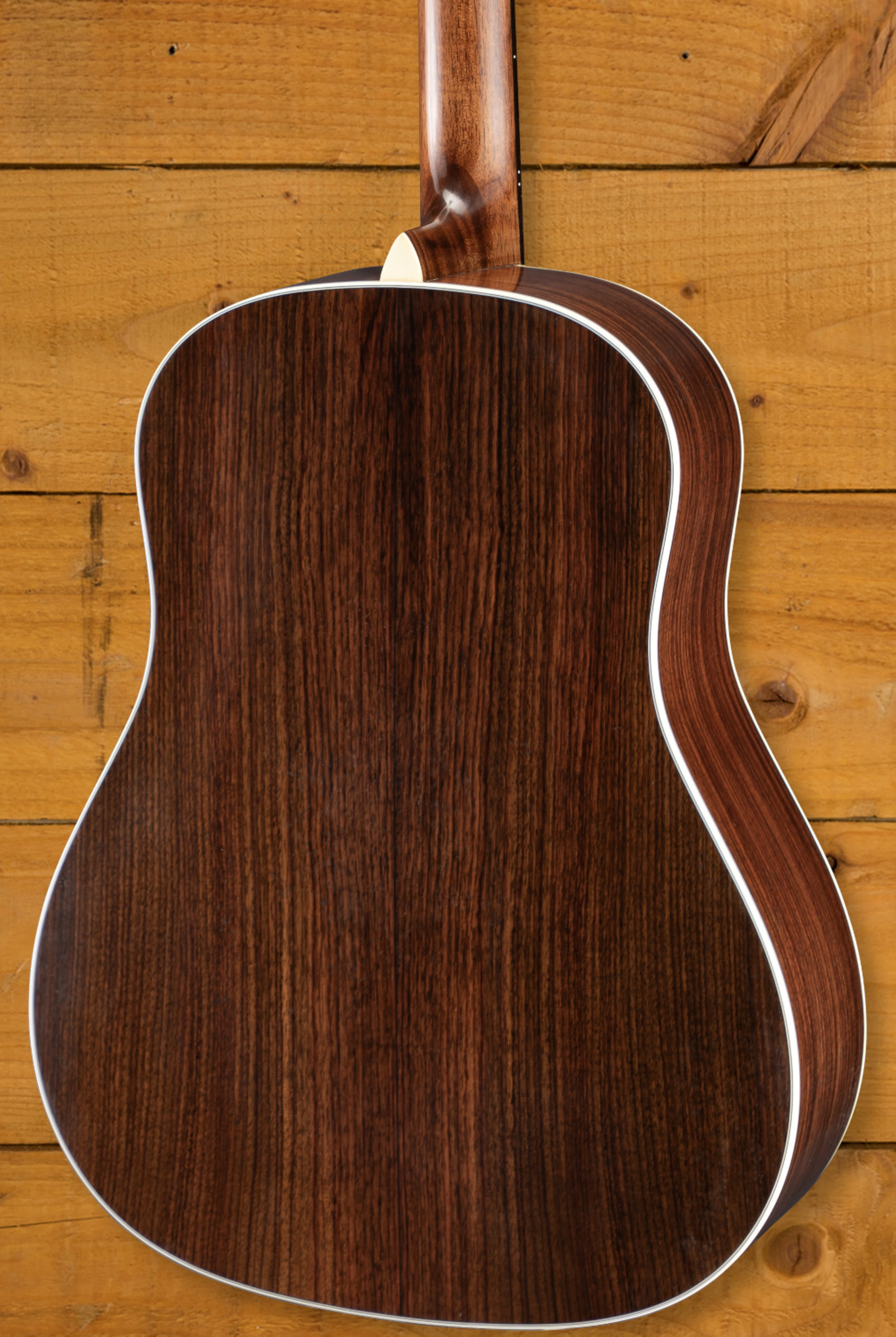 If you're looking for a Dreadnought shape but don't want to give up on versatility, the Eastman E25SS/v is a great offering. The solid thermo-cured Adirondack top is paired with solid Rosewood back and sides for a supreme tonal pairing with warmth and enhanced low and top end. The Mahogany neck features a Traditional Even "C" profile and the Rosewood fingerboard sports a 12" radius and 24.75" scale length for a comfortable and familiar feel.