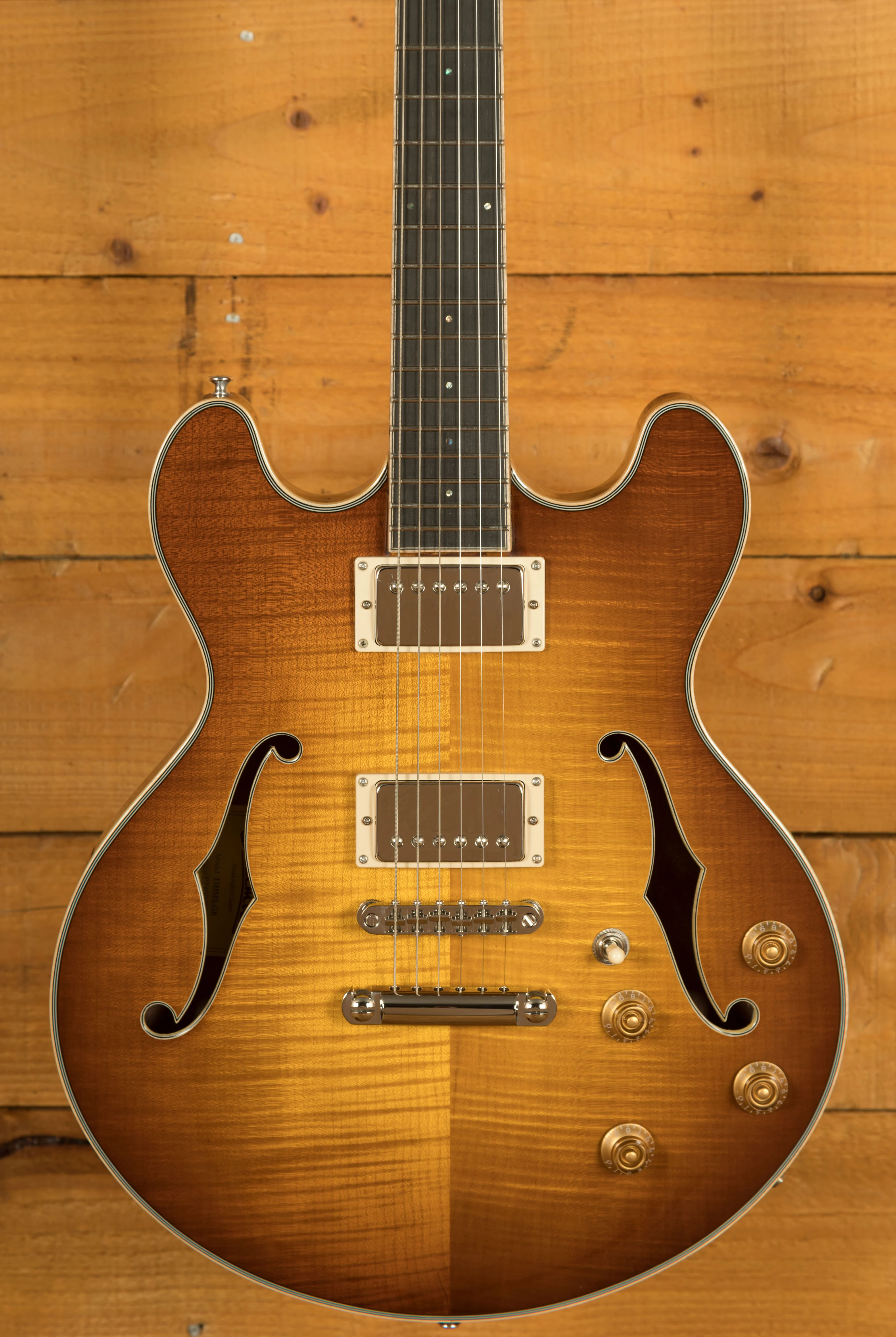 In summary, the T185MX is a guitar that harmoniously blends vintage charm with modern playability. From its solid maple top and mahogany body to the hand-wound Bare Knuckle BC Old Guard Custom humbuckers, every aspect is carefully crafted to deliver exceptional tone and performance. With its luxurious flamed maple binding, pearl inlays, and a glossy finish, this guitar is a true work of art. Elevate your playing and make a statement with the T185MX - a guitar that embodies timeless elegance and unparalleled craftsmanship.