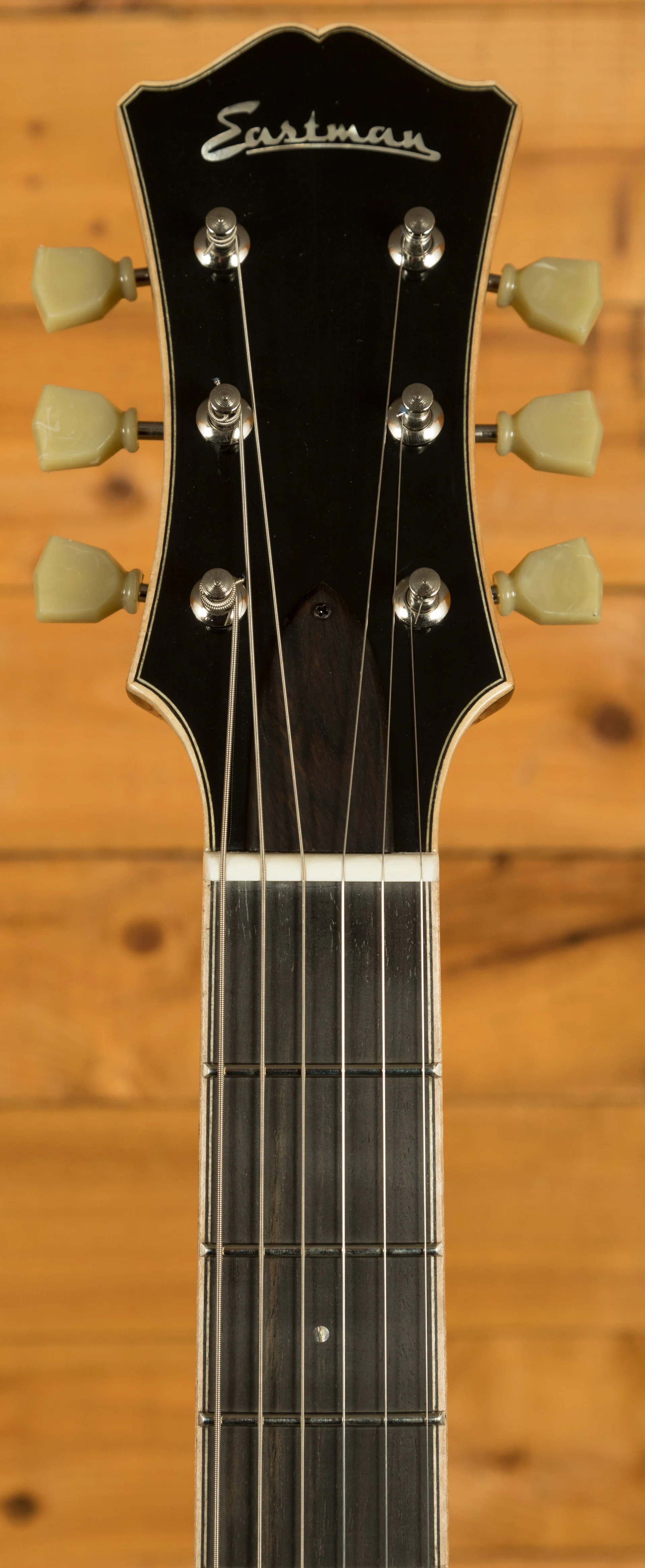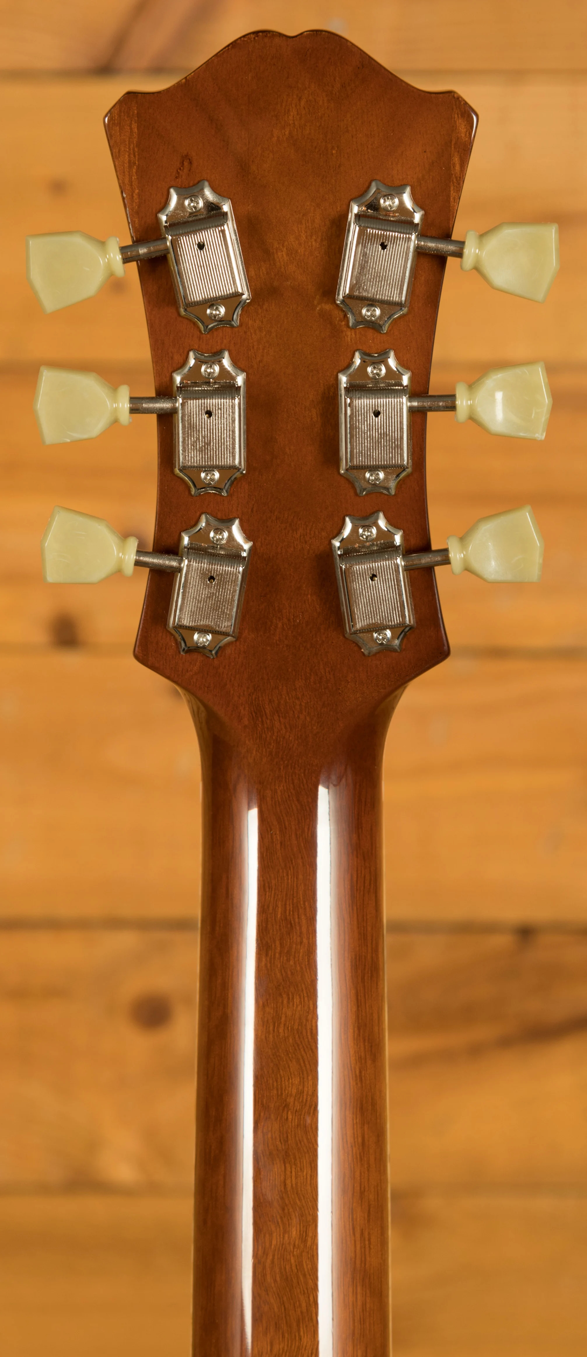 The T185MX features a mahogany neck with an ebony fingerboard, combining stability and playability for effortless fretting and smooth transitions. The traditional even "C" neck profile provides a comfortable grip that feels like an extension of your hand, allowing you to navigate the fretboard with ease. The bone nut, measuring 1.72" in width, ensures optimal string spacing for precise intonation and exceptional playability. With string heights expertly set by our in-house techs, the T185MX offers perfect action across the entire neck.