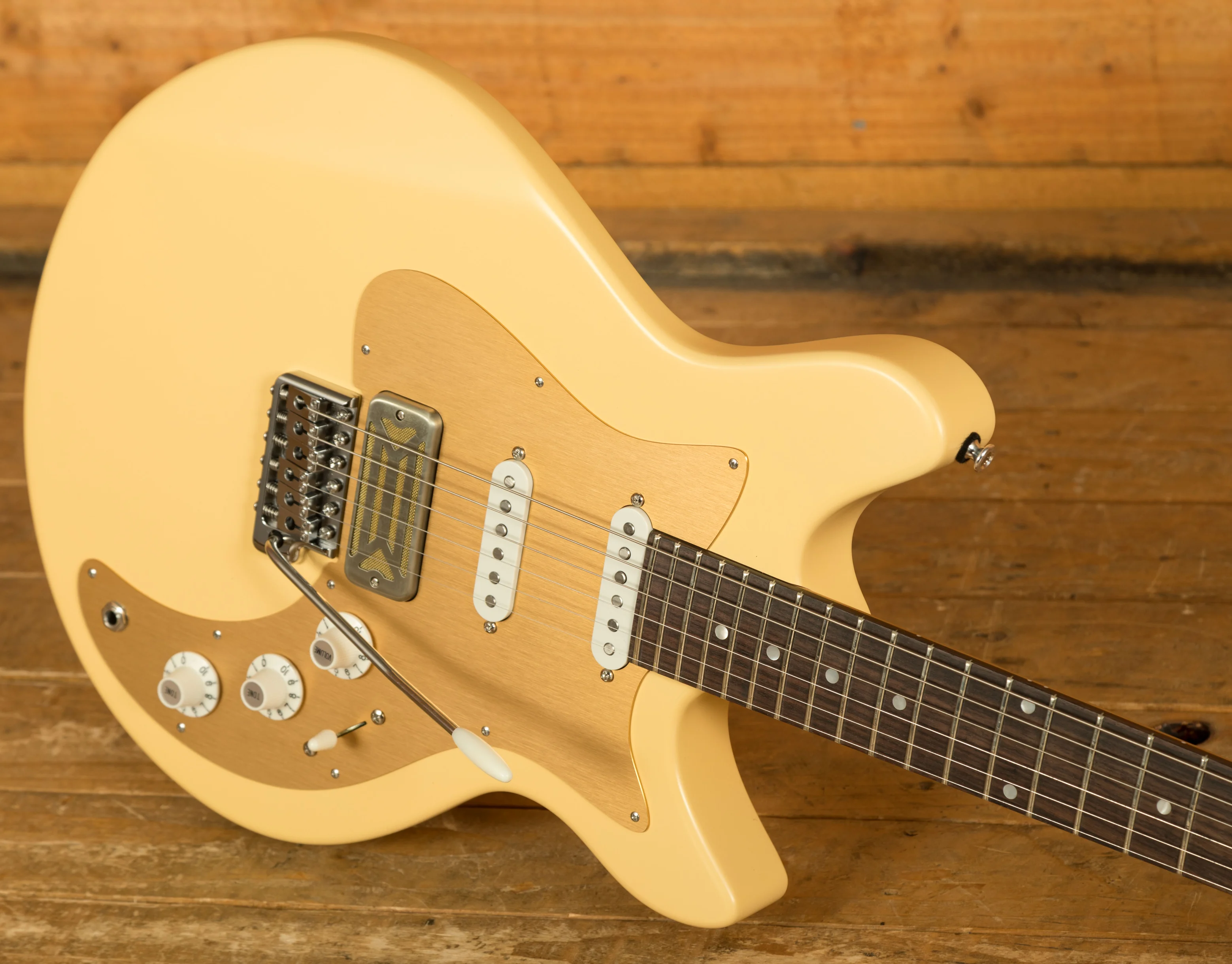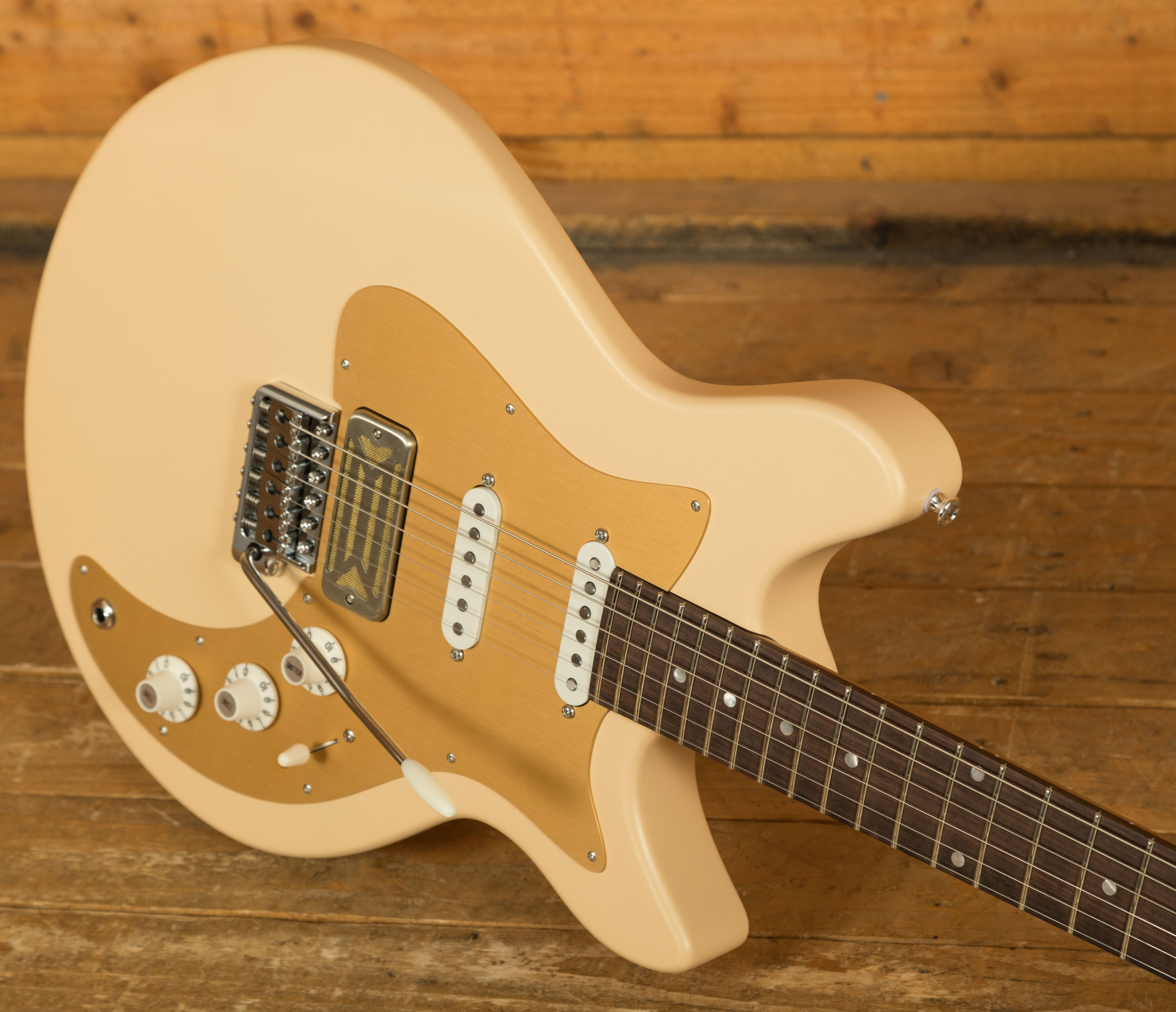 The DC'62 features an HSS (humbucker-single-single) pickup configuration, providing a vast sonic palette. A custom Tonerider gold-foil covered soapbar humbucker in the bridge position delivers powerful, thick tones perfect for rock and heavier styles, while two Tonerider noiseless single-coils in the neck and middle positions offer clear, articulate tones suitable for clean playing, blues, and funk. This versatile combination allows players to cover virtually any musical genre.