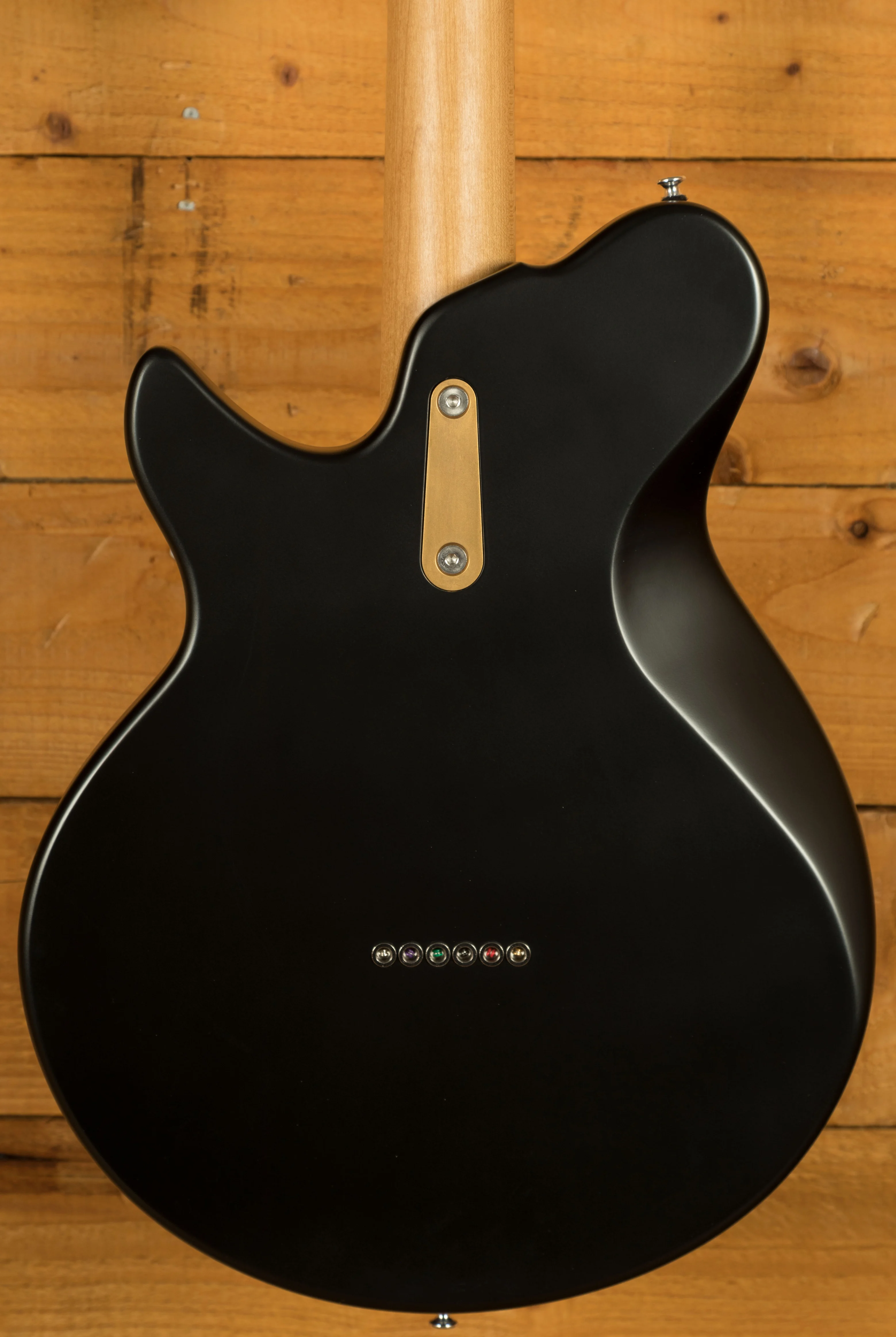 Beyond its innovative neck joint and versatile pickups, the SC'52 boasts a number of premium features. The roasted black limba body contributes to the guitar's resonant character and lightweight feel. Premium CTS pots and Orange Drop capacitors ensure smooth and precise control over the tone, while an Aumsen brass-saddled bridge provides excellent intonation and tuning stability. Custom staggered tuners further enhance tuning stability and create optimal string tension. The guitar is available in three elegant Truetone Matte finishes - Moss Black, Desert Sand, and Ice Blue Metallic - complemented by stunning brushed aluminium pickguards. The SC'52 is a player-focused instrument built for expression, offering exceptional tone, sustain, stability, and playability.