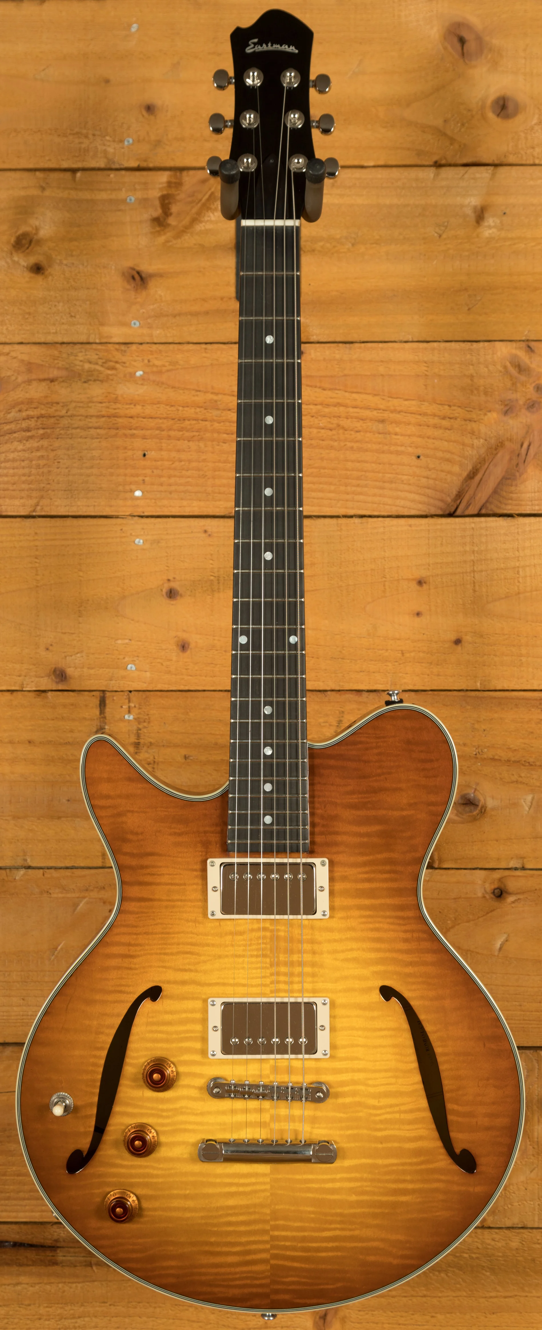 The Eastman Romeo California comes complete with Gavitt braided wire for the pickup wiring, D'Addario NYXL .011 - .049 strings, and an action height set by our in-house Peach techs, allowing for effortless playability across the entire neck. It is accompanied by a sturdy hardshell case, ensuring its protection both on the road and in the studio.