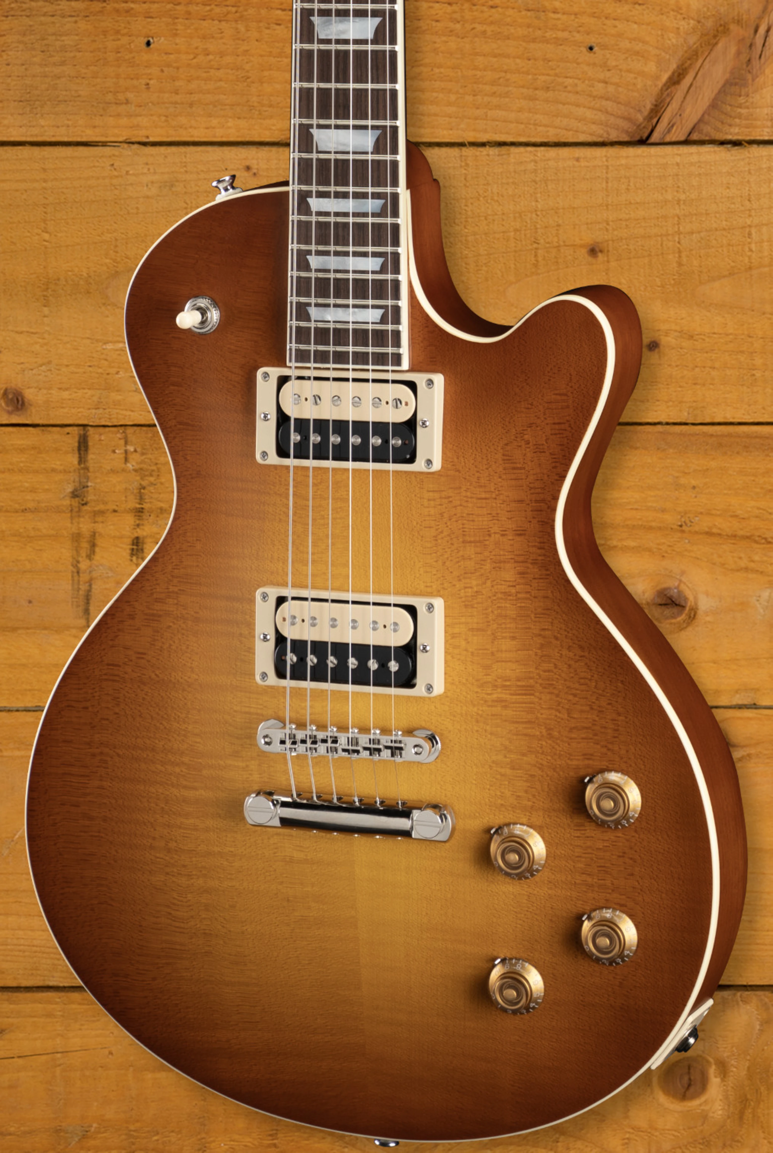 This offering from Eastman is a really cool one; with its Trutone Satin finish in Goldburst and zebra pickup bobbins, it has a lovely retro vibe. Featuring their standard Okoume neck and body construction with a carved Maple top and Rosewood fingerboard, it sounds exactly how you'd expect a classic single-cut to. The Tonerider Alnico 2 Classic humbuckers are a sonic treat too - reminiscent of that Appetite For Destruction Slash tone - supplying smooth and fluid lead tones from the neck and tight and fizzy overdriven tones from the bridge.