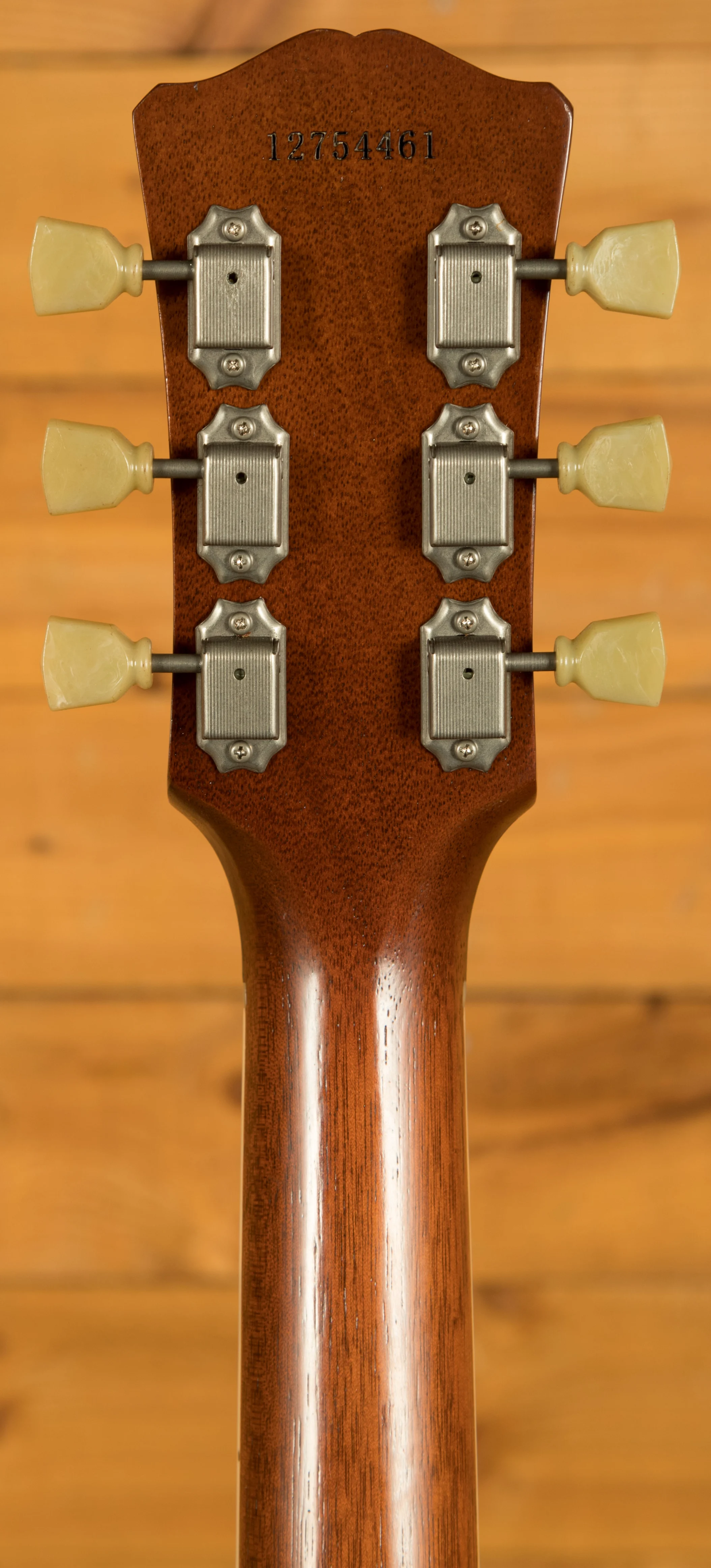 The SB59/v is meticulously finished with an antique varnish top coat, which not only provides a stunning aesthetic but also enhances the guitar's natural resonance and tonal complexity. The black plastic backplates, along with the aged nickel hardware, complete the vintage-inspired look.