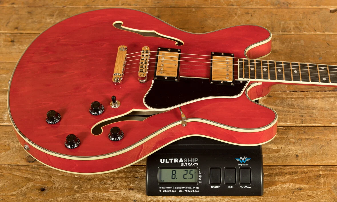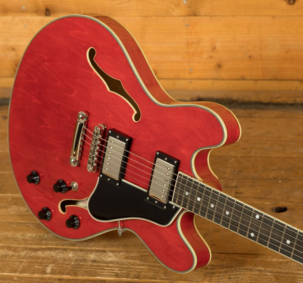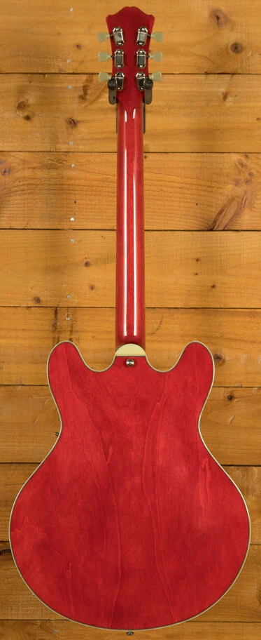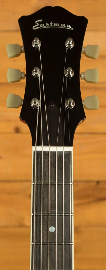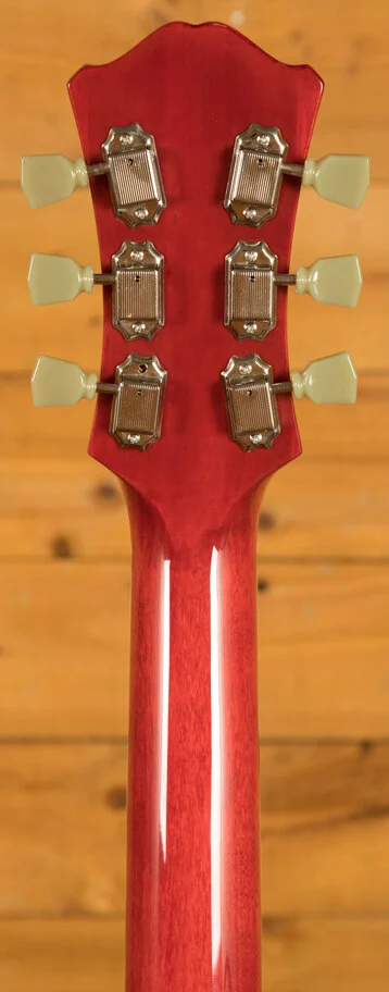 The hardware on the T386 is designed with precision and reliability in mind. The Gotoh stop tailpiece and Tuneomatic bridge provide excellent intonation and sustain, while the Pingwell RM1239-NV tuners ensure accurate and stable tuning. The black plastic pickguard with ivoroid binding adds a classic touch and protects the guitar's top from scratches and pick marks. The nickel hardware complements the instrument's elegant aesthetics, creating a cohesive and visually appealing look.