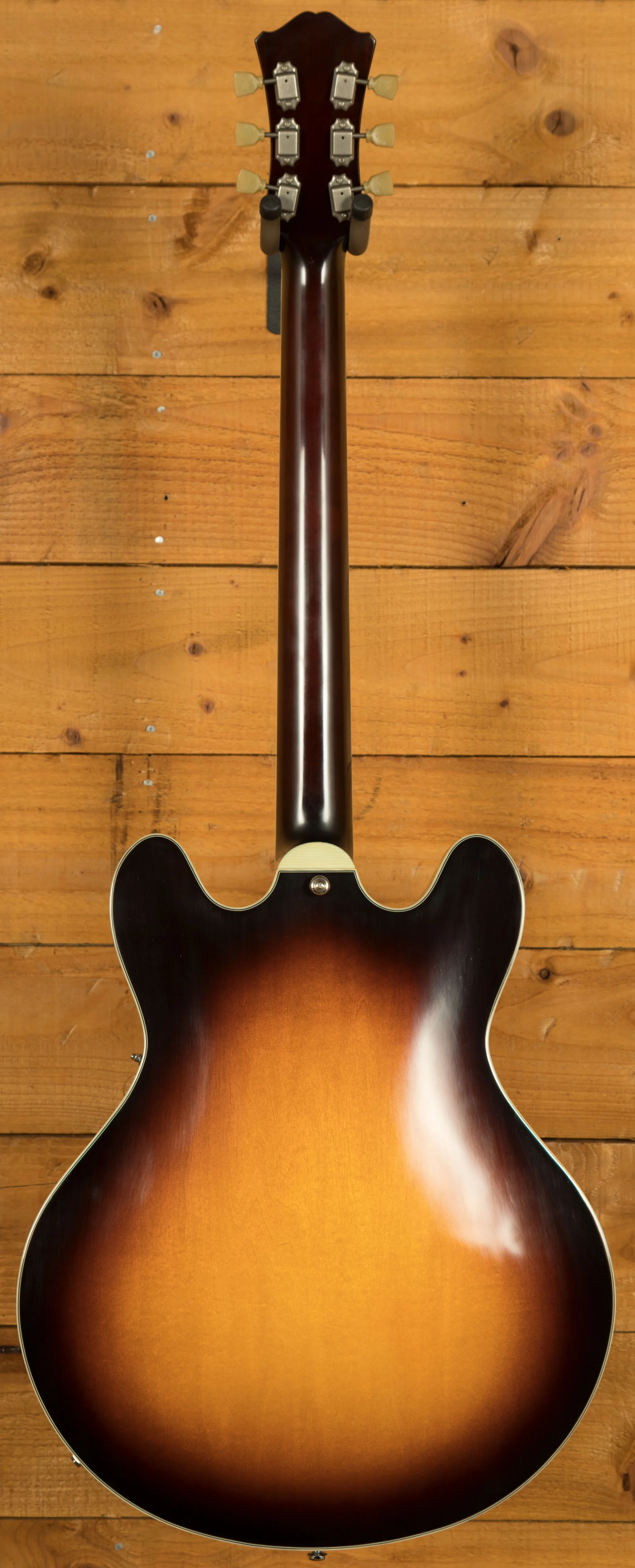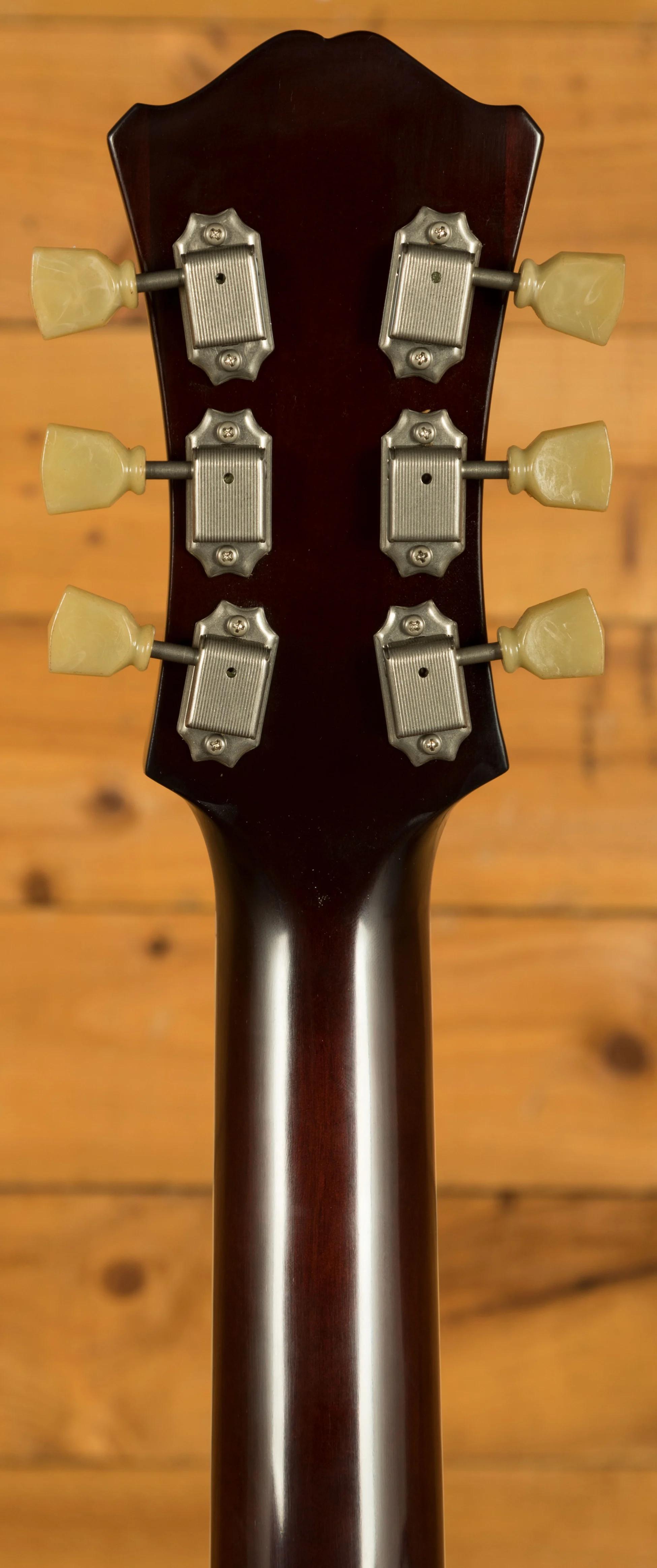 This guitar also features the unique Truetone Vintage Gloss finish - a perfect blend between a relic and a non-relic instrument. It boasts the same vintage vibe as the hand-aged Antique Varnish series, but without heavy wear and tear. The thin poly finish, inspired by Dana Bourgeois, allows players to naturally create their own marks over time. With top-notch aged hardware and pickups, the Truetone Vintage Gloss offers boutique quality at a great value. It's a quicker and more accessible option compared to the limited Antique Varnish series, making it an exciting choice for vintage guitar enthusiasts.
