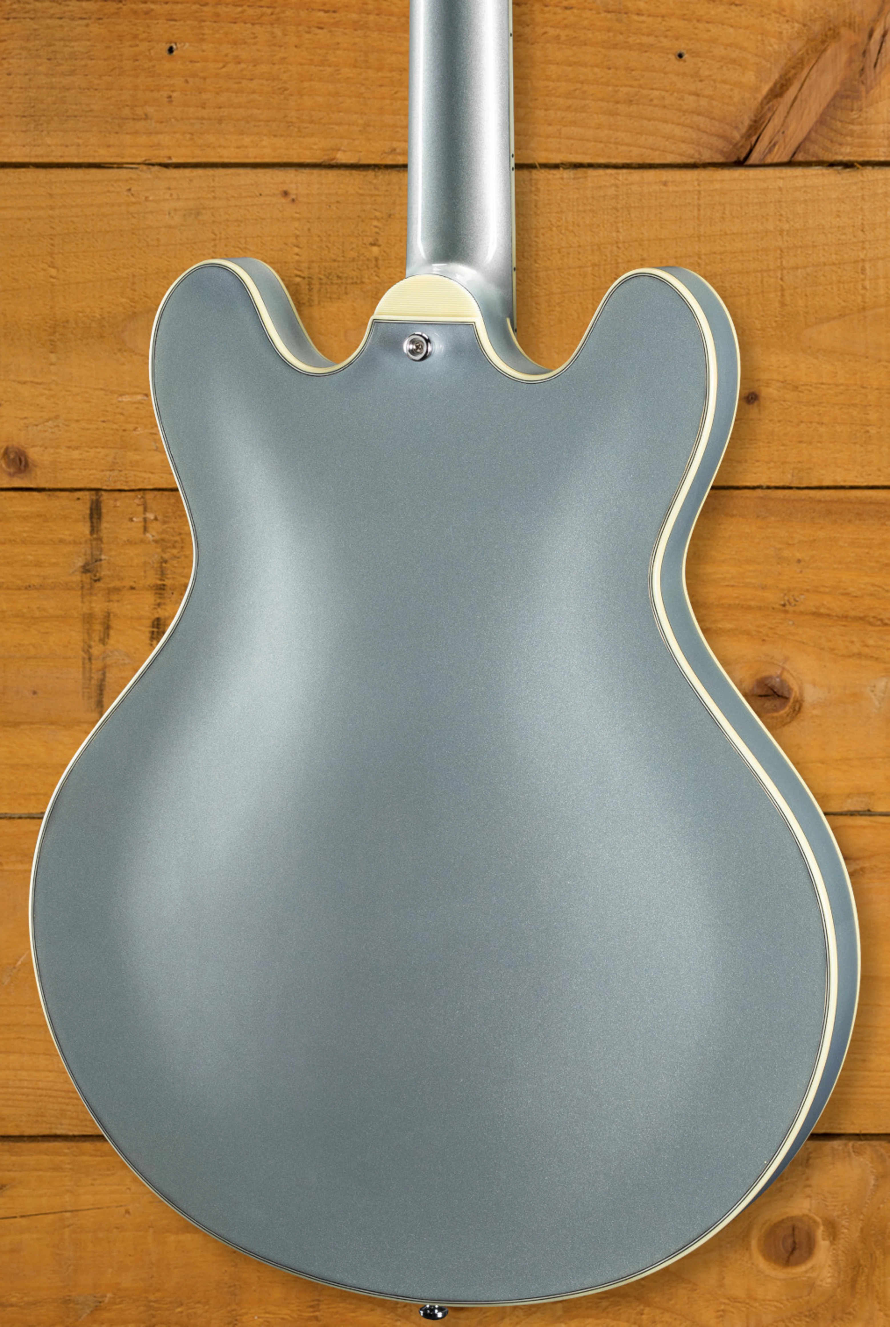 The Eastman T64-T in Iced Blue Metallic is a fantastic value for money hollowbody thinline that doesn't cut any corners - it comes with all the quality craftsmanship that you've come to expect from them but with a price tag that appeals to those on a budget. The Iced Blue Metallic undoubtedly stands out on stage and with Ivoroid neck and body binding tying it together, it looks top notch.