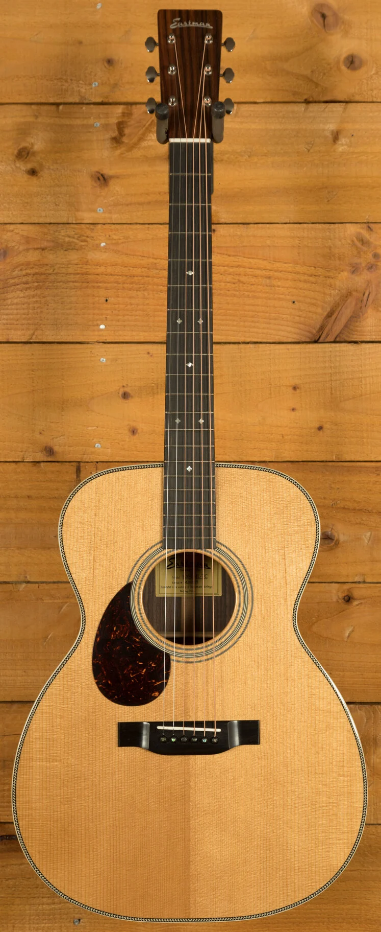 In summary, the E20OM acoustic guitar is a testament to the dedication and expertise of Eastman's skilled artisans. With its exceptional tone, flawless playability, and breathtaking aesthetics, this instrument is a true masterpiece that will captivate and inspire you. Whether you're performing on stage, recording in the studio, or simply enjoying moments of musical expression, the E20OM will exceed your expectations and become a cherished companion on your musical journey.
