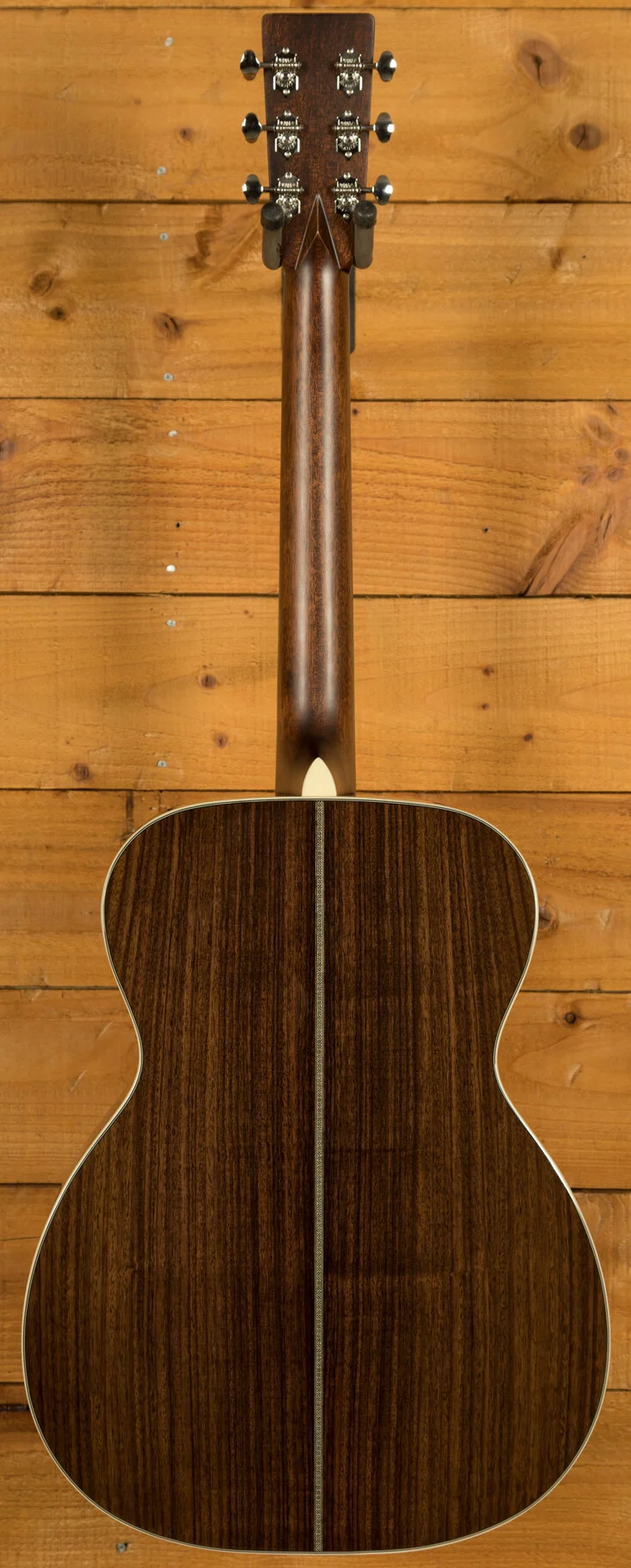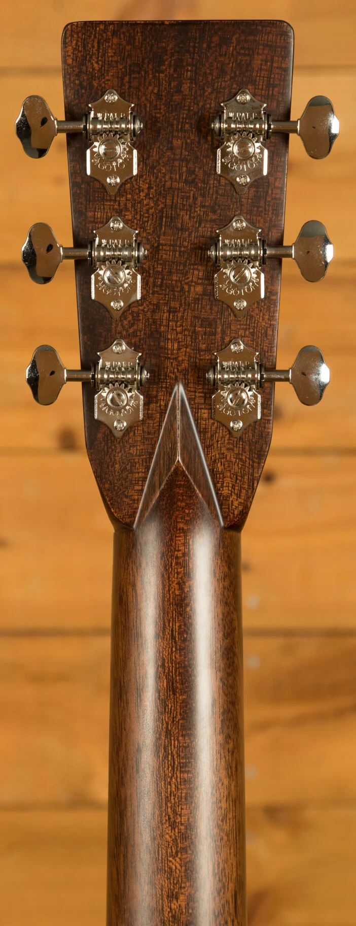 The E20OM features a mahogany neck, offering a warm and resonant tonal character. Its ebony fingerboard provides a smooth and luxurious playing surface, ensuring effortless fretting and precise note articulation. With a comfortable 12" fingerboard radius and a traditional even "C" neck profile, the E20OM offers a familiar and comfortable playing experience.