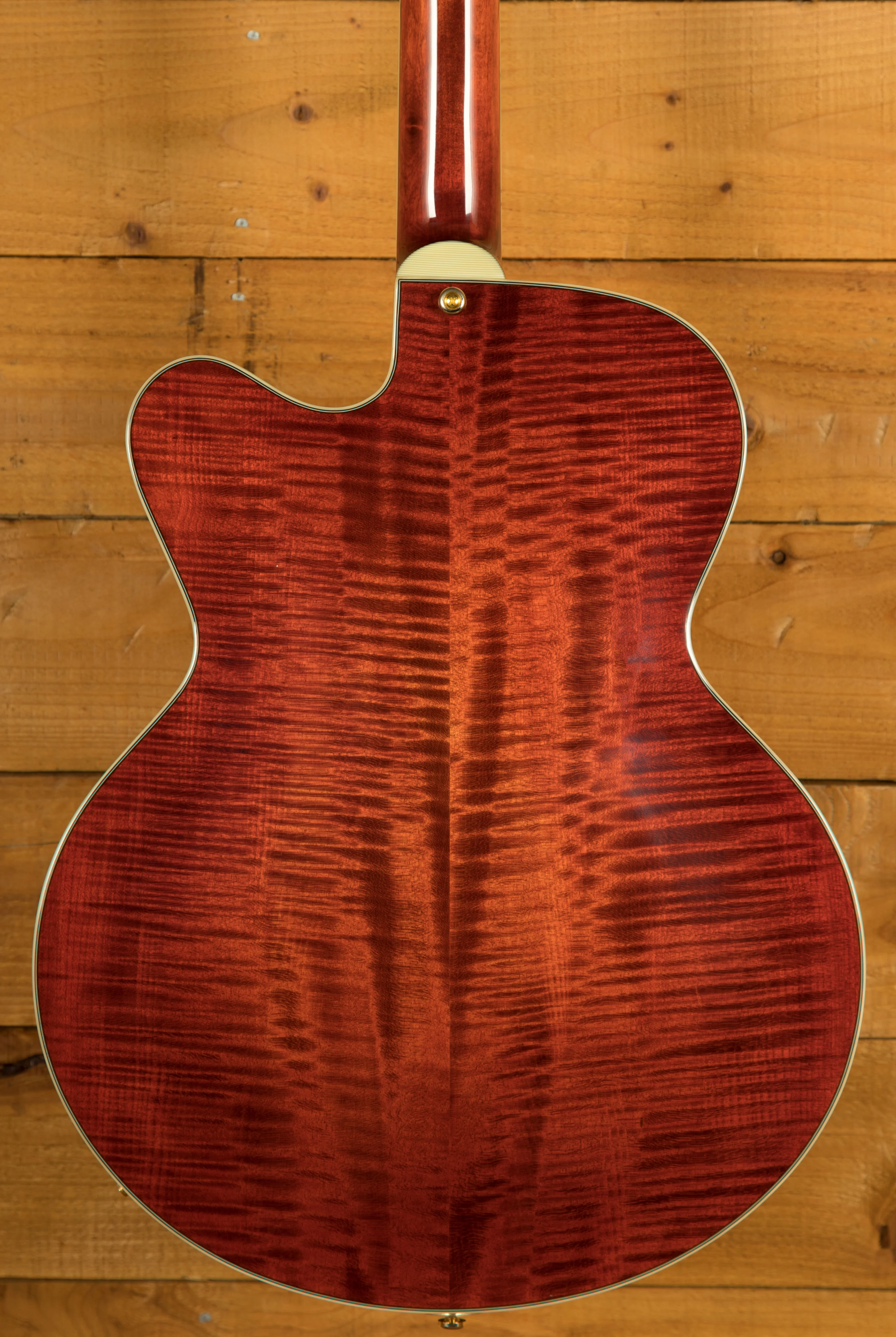 Experience sonic perfection with the Lollar Custom Wound Imperial neck pickup, calibrated to capture every nuance of your playing and deliver rich, warm tones that will leave you mesmerised. The solid spruce top and solid maple back/sides contribute to the guitar's exceptional resonance and projection, providing a well-balanced, full-bodied sound that will captivate both the player and the audience.