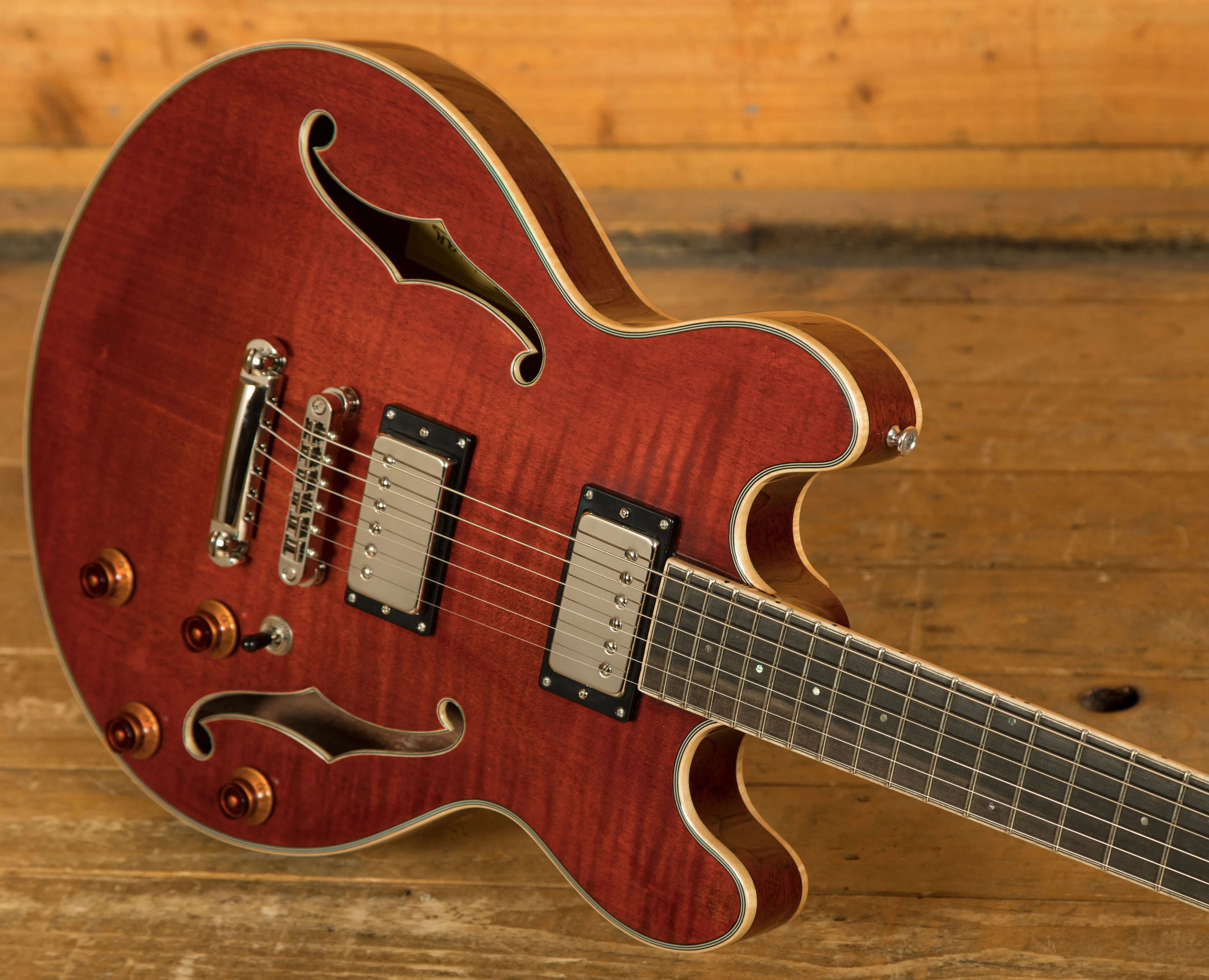 In summary, the T184MX is a guitar that harmoniously blends vintage charm with modern playability. From its solid maple top and mahogany body to the hand-wound Bare Knuckle BC Old Guard Custom humbuckers, every aspect is carefully crafted to deliver exceptional tone and performance. With its luxurious flamed maple binding, pearl inlays, and a glossy finish, this guitar is a true work of art. Elevate your playing and make a statement with the T184MX - a guitar that embodies timeless elegance and unparalleled craftsmanship.