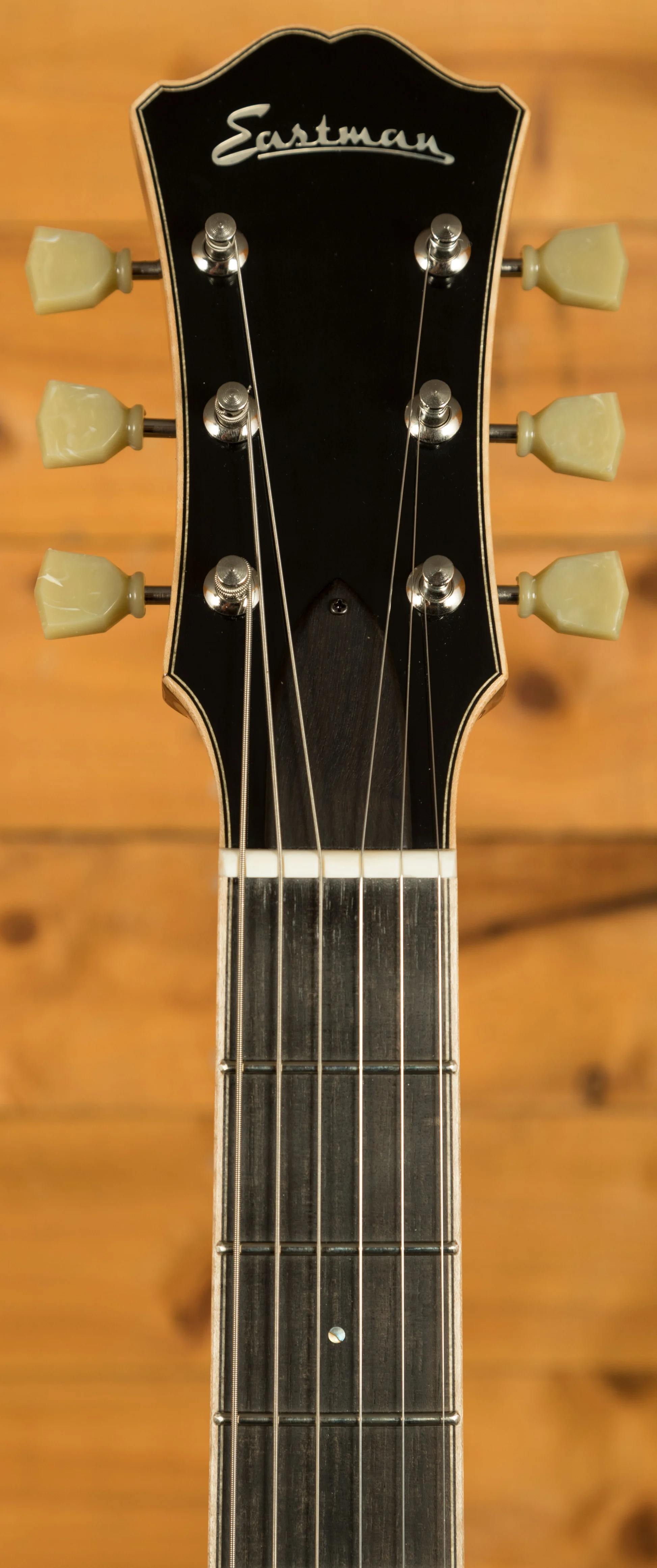 The T184MX features a mahogany neck with a 12" radius ebony fingerboard, combining stability and playability for effortless fretting and smooth transitions. The traditional even "C" neck profile provides a comfortable grip that feels like an extension of your hand, allowing you to navigate the fretboard with ease. The guitar features 22 medium-jumbo Jescar frets for a premium playing experience. The bone nut, measuring 1.72" in width, ensures optimal string spacing for precise intonation and exceptional playability. With string heights expertly set by our in-house techs, the T184MX offers perfect action across the entire neck.