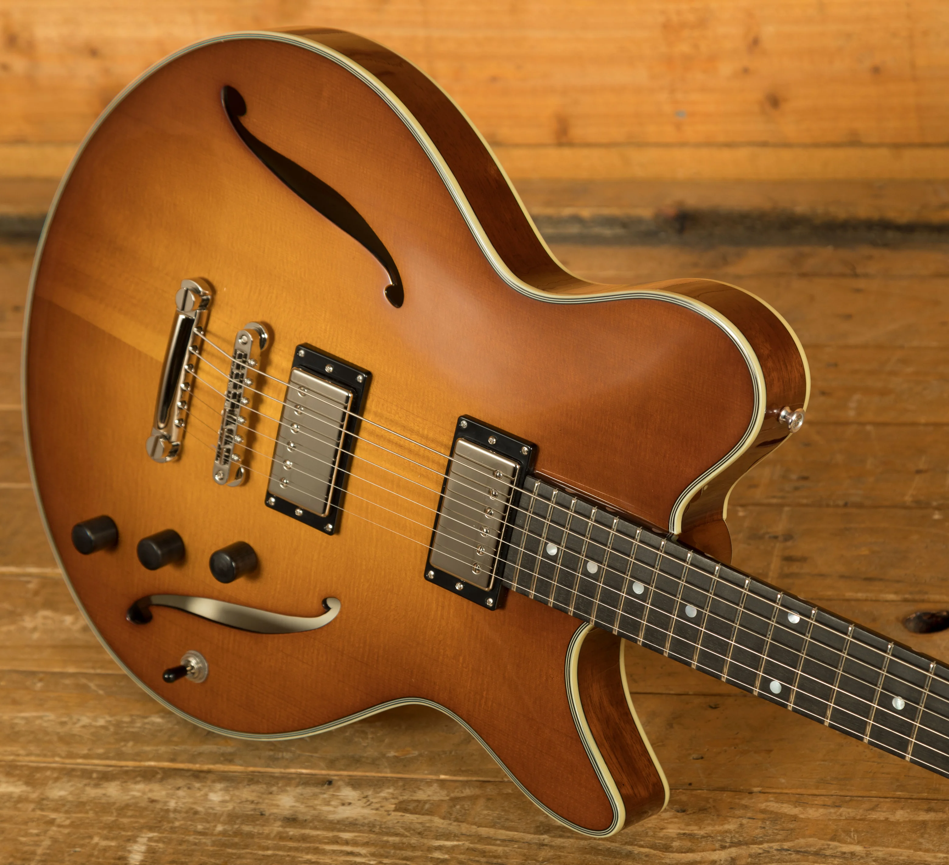 When it comes to hardware, the Romeo doesn't disappoint. Nickel components, including the Gotoh GE101A tailpiece and GE-103B bridge, are not only visually appealing but are also sturdy and reliable. Tuning stability is assured with Gotoh tuners, ensuring that your playing experience remains uninterrupted. The Romeo is fitted with a pair of Lollar Custom Wound Imperial Humbuckers, renowned for their rich, vintage-inspired tones. These pickups offer a broad tonal spectrum, from mellow and smooth to growling and powerful. The electronics are thoughtfully designed, featuring a 3-way switch and CTS 500K Audio Taper potentiometers, granting you precise control over your sound.
