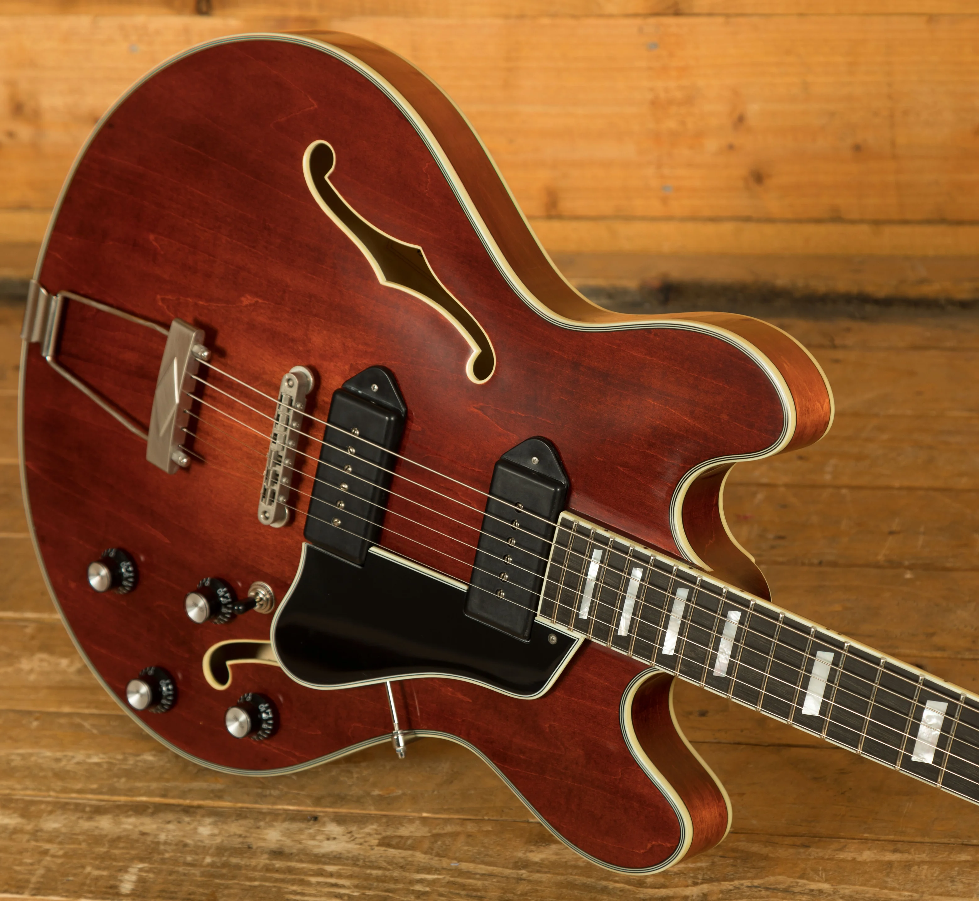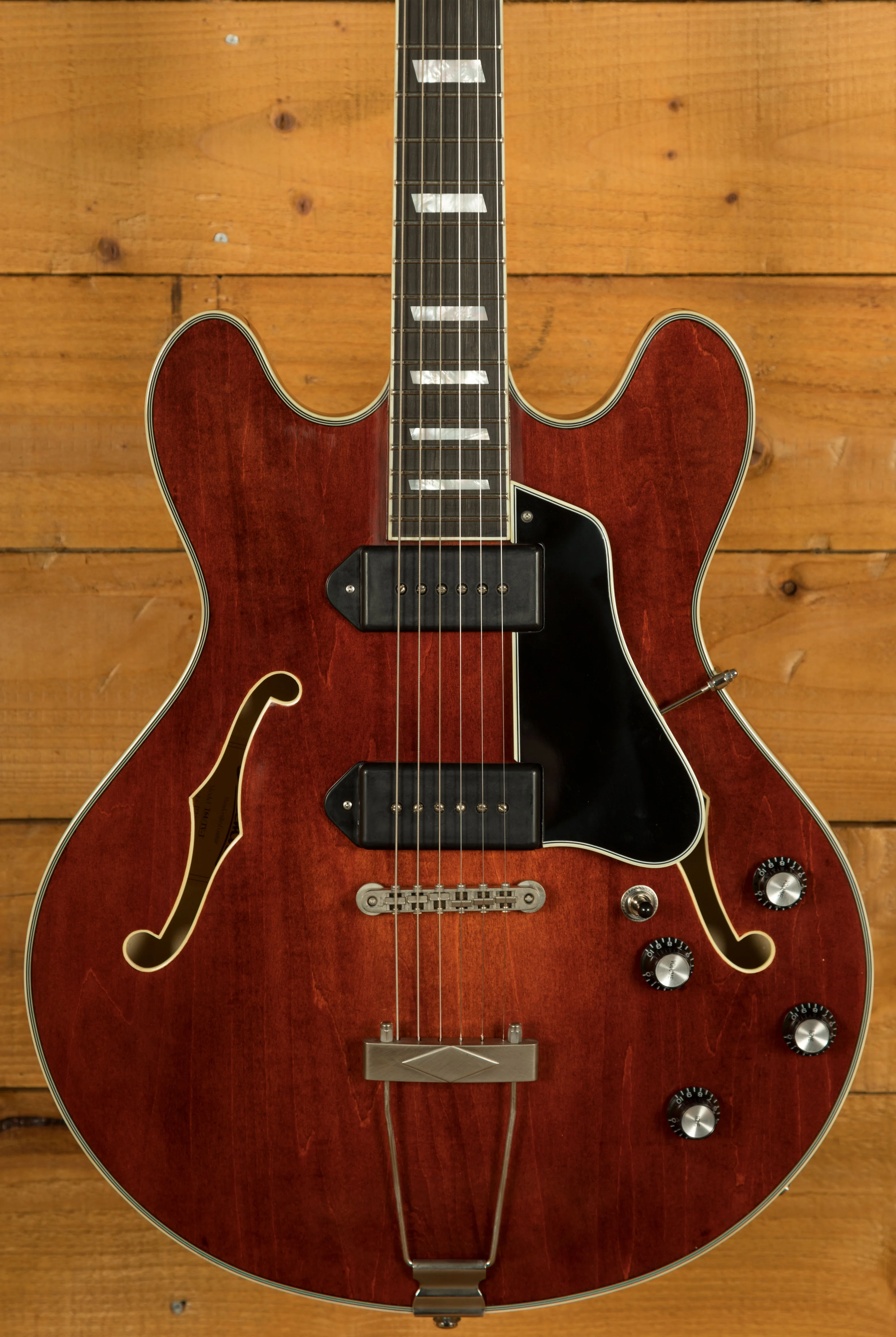 Now, let's talk about the heart of the T64/TV-T - its pickups and hardware. Featuring top-notch aged hardware and Lollar Dog Ear P-90 pickups, this guitar ensures that your tone is nothing short of extraordinary. The Relic Chrome Plated Brass Trapeze tailpiece, Gotoh GE104B-Relic bridge, Gotoh SD90-Relic tuners, and Gotoh EP-A1 Relic strap peg are all carefully selected to provide precise tuning stability and a vintage aesthetic.