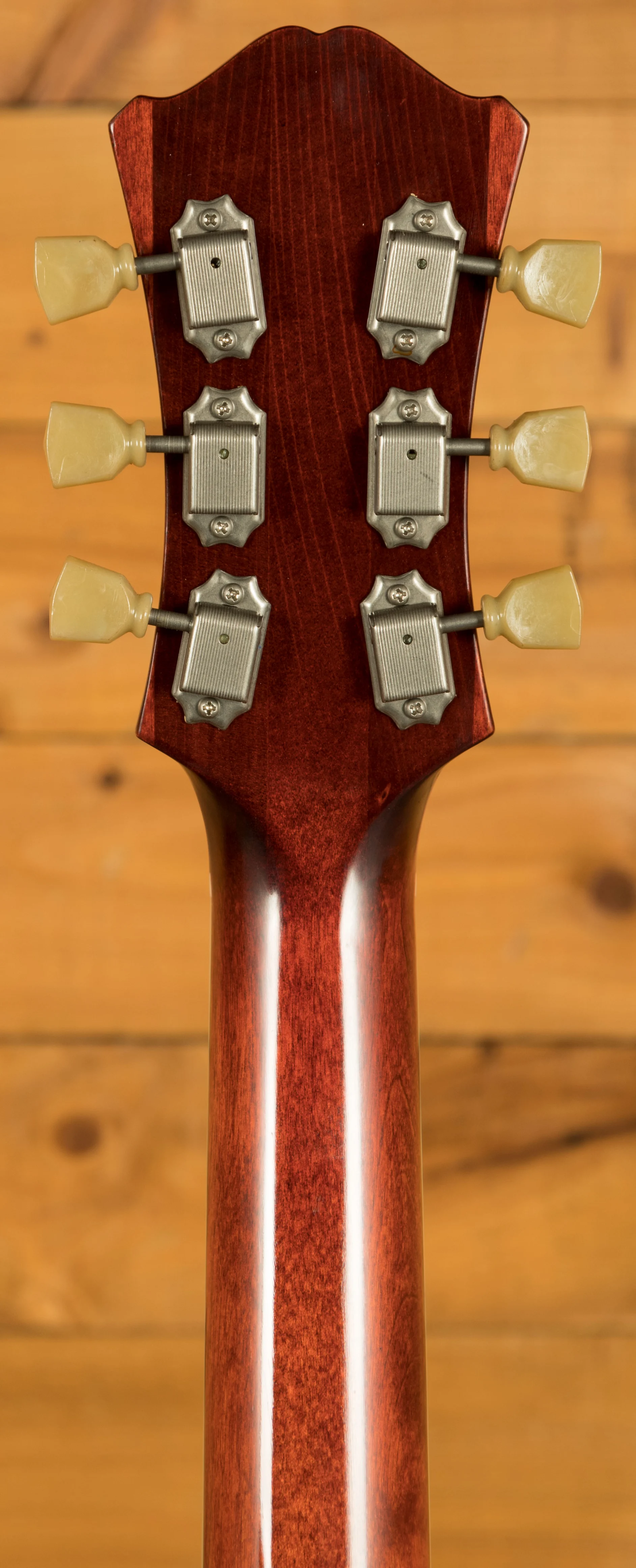 But it's not just about looks - the T64/TV-T is equipped with pearl split block inlays that not only guide your fingers across the fretboard but also exude sophistication. The finish on this masterpiece is something truly special - the Truetone Vintage Gloss. It strikes a perfect balance between relic and non-relic, capturing the vintage essence without the heavy wear and tear. Inspired by the legendary Dana Bourgeois, this thin poly finish allows you to create your own marks over time, making this guitar uniquely yours.