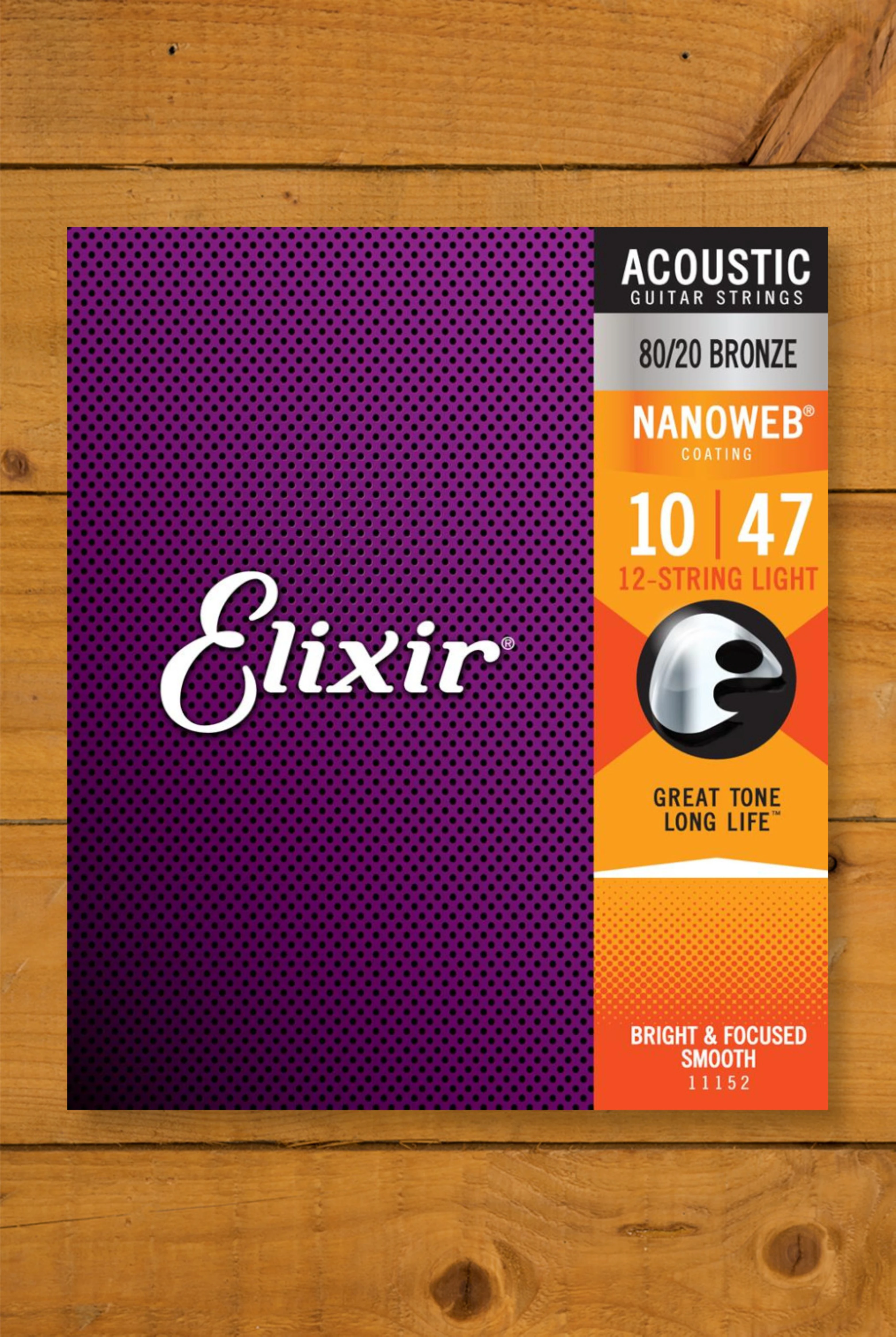 Elixir Acoustic 80/20 Bronze with NANOWEB Coating deliver a bright, lively together with the extended life that players have come to expect from Elixir Strings.
