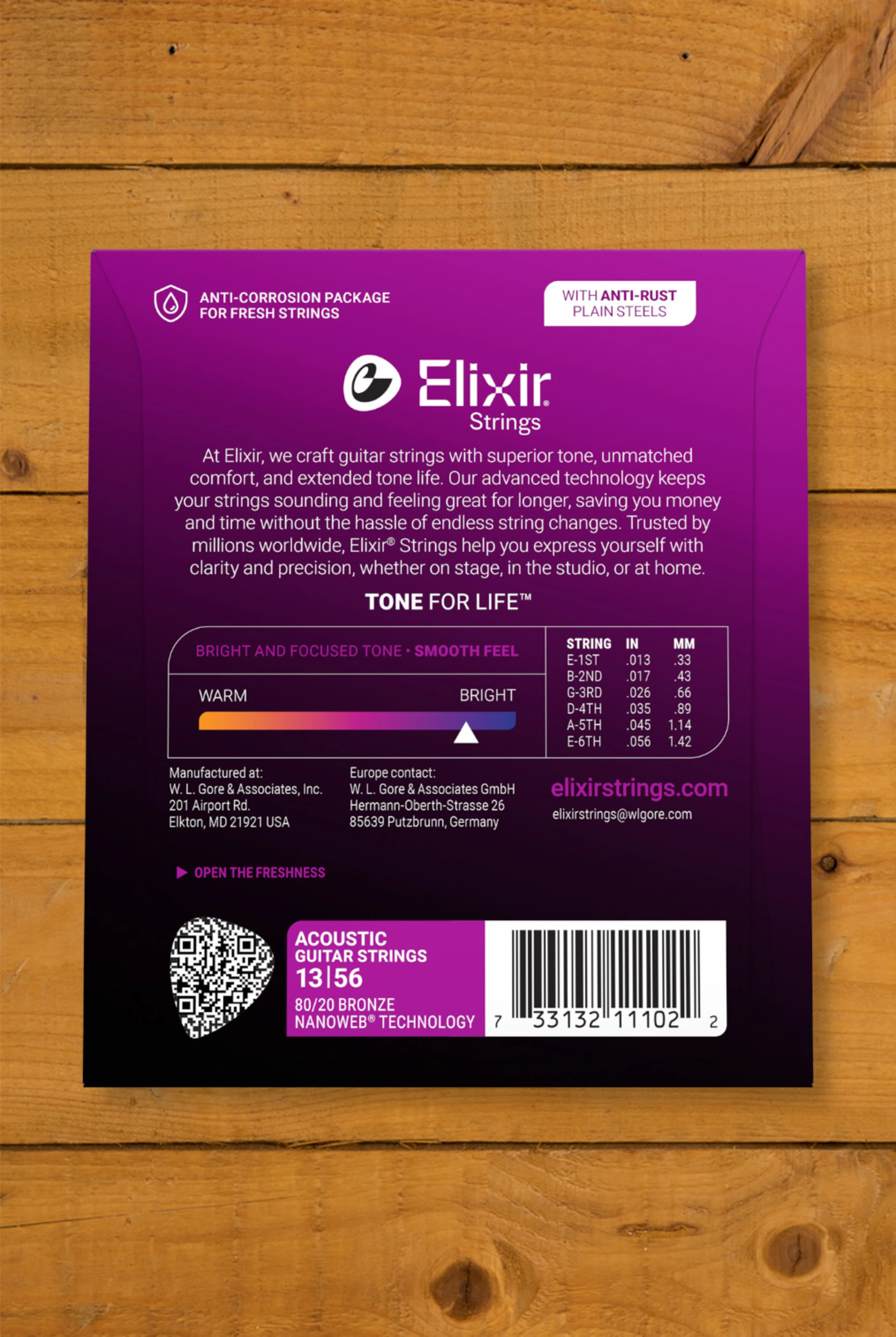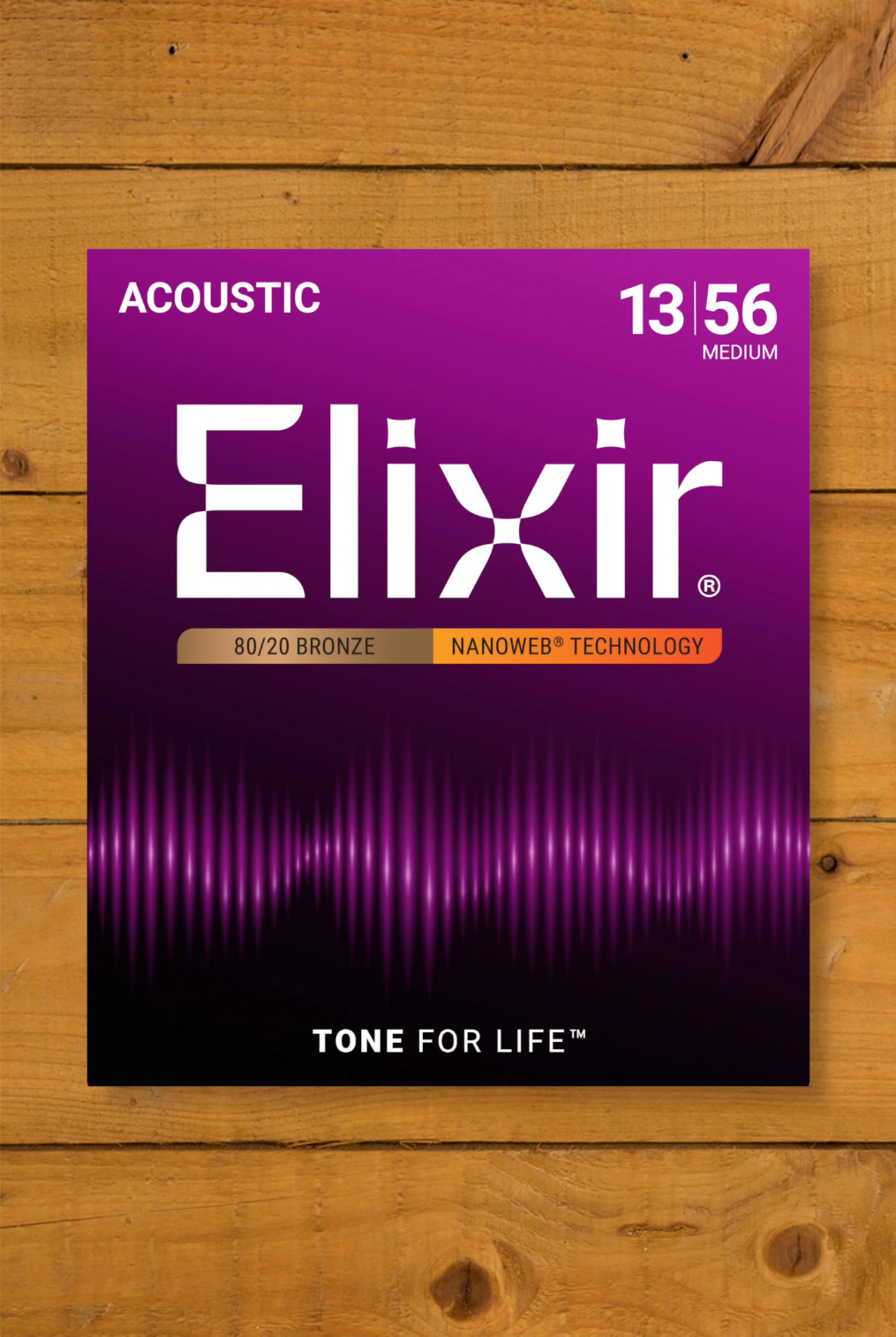 Elixir Acoustic 80/20 Bronze with NANOWEB Coating deliver a bright, lively together with the extended life that players have come to expect from Elixir Strings.