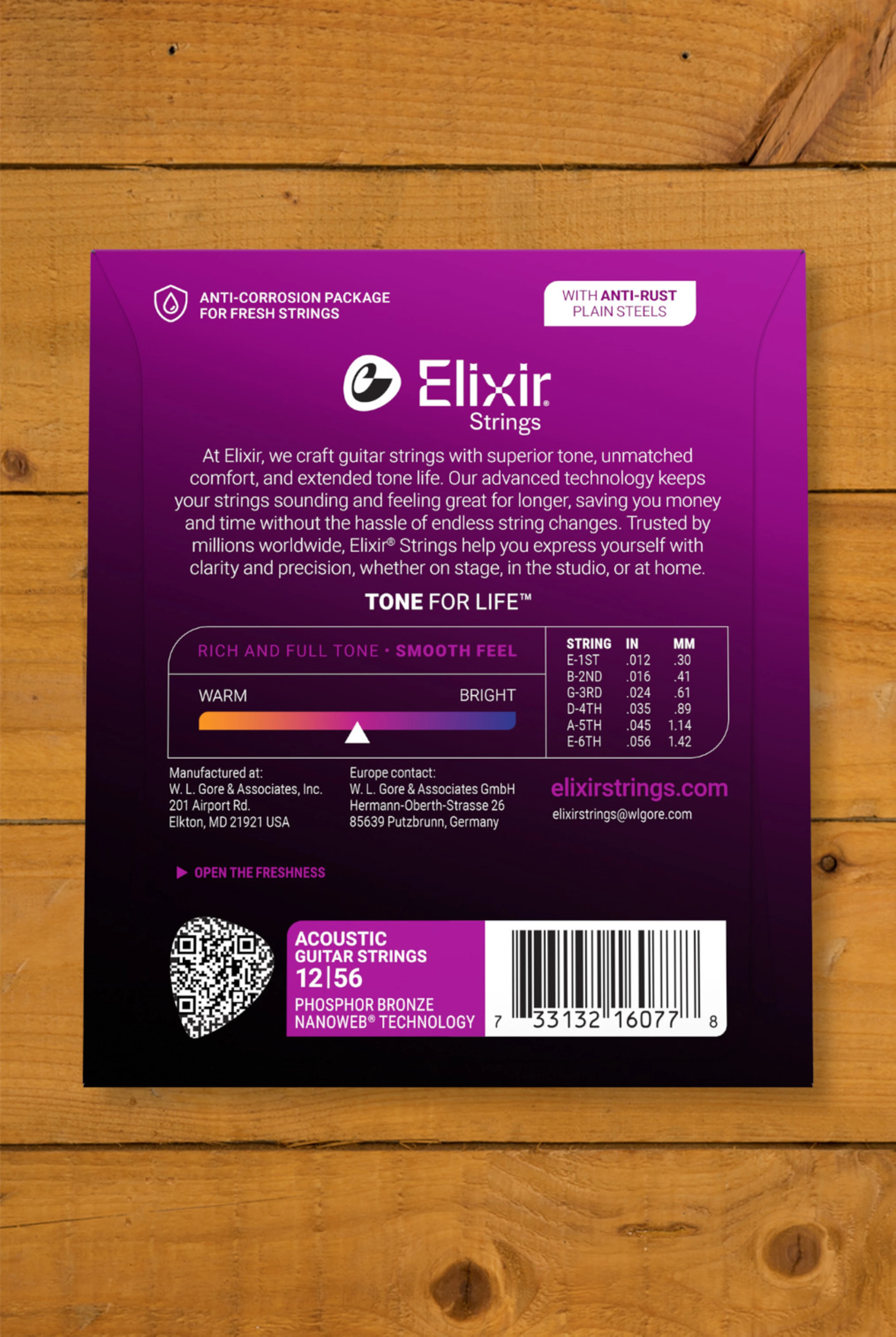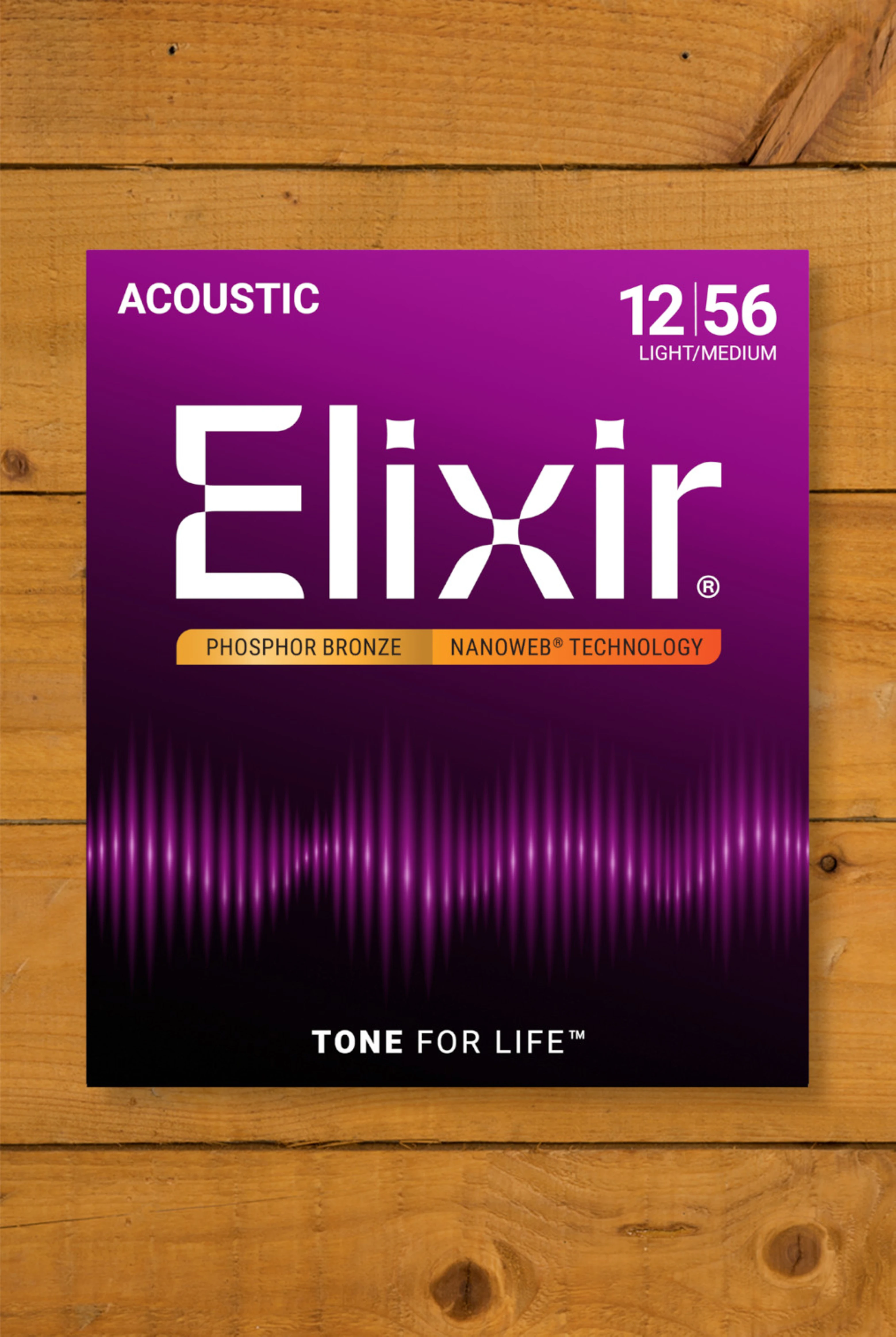 Elixir Strings Acoustic Phosphor Bronze with NANOWEB Coating deliver distinctive phosphor bronze warmth and sparkle together with extended tone life.