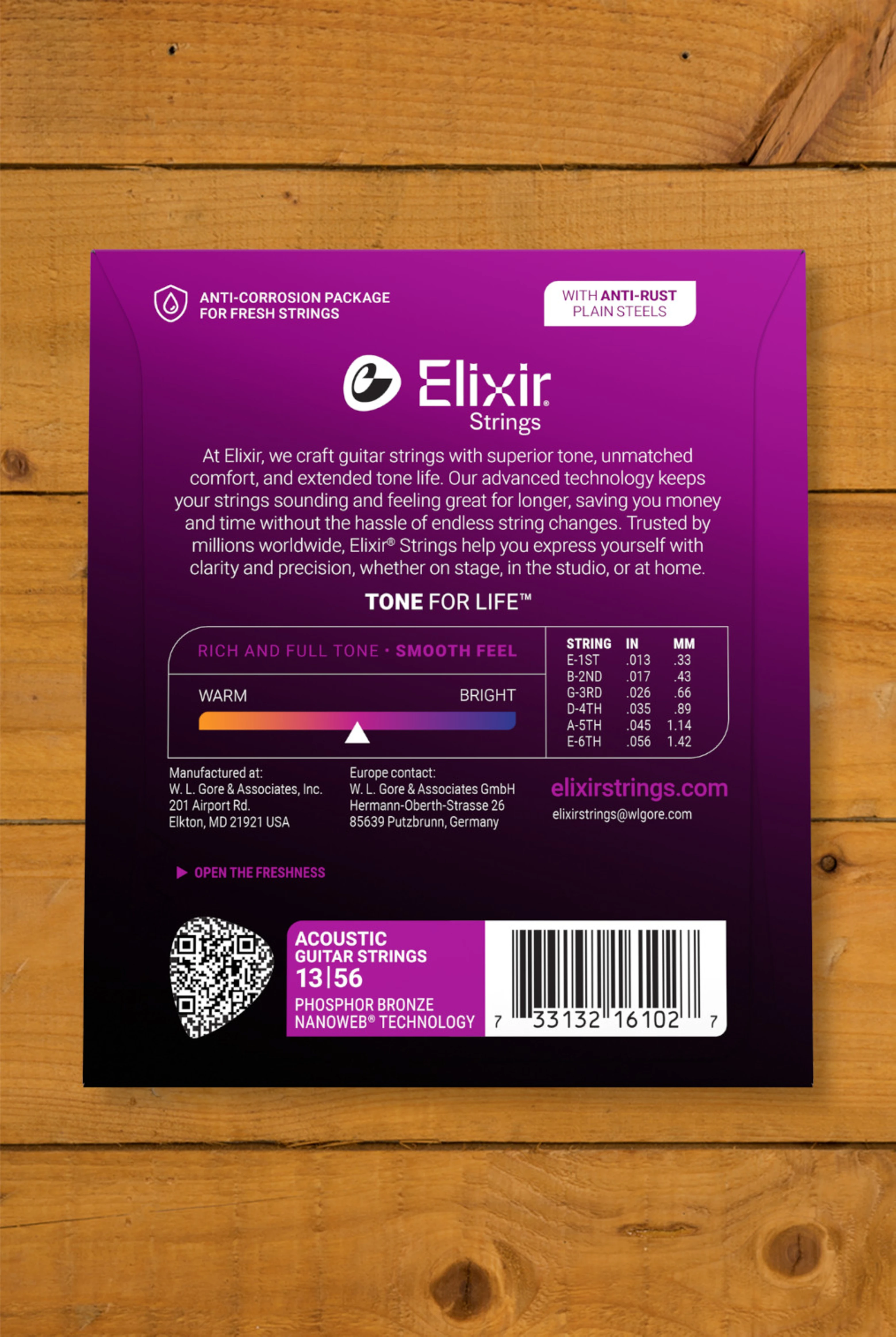 Elixir Strings Acoustic Phosphor Bronze with NANOWEB Coating deliver distinctive phosphor bronze warmth and sparkle together with extended tone life.
