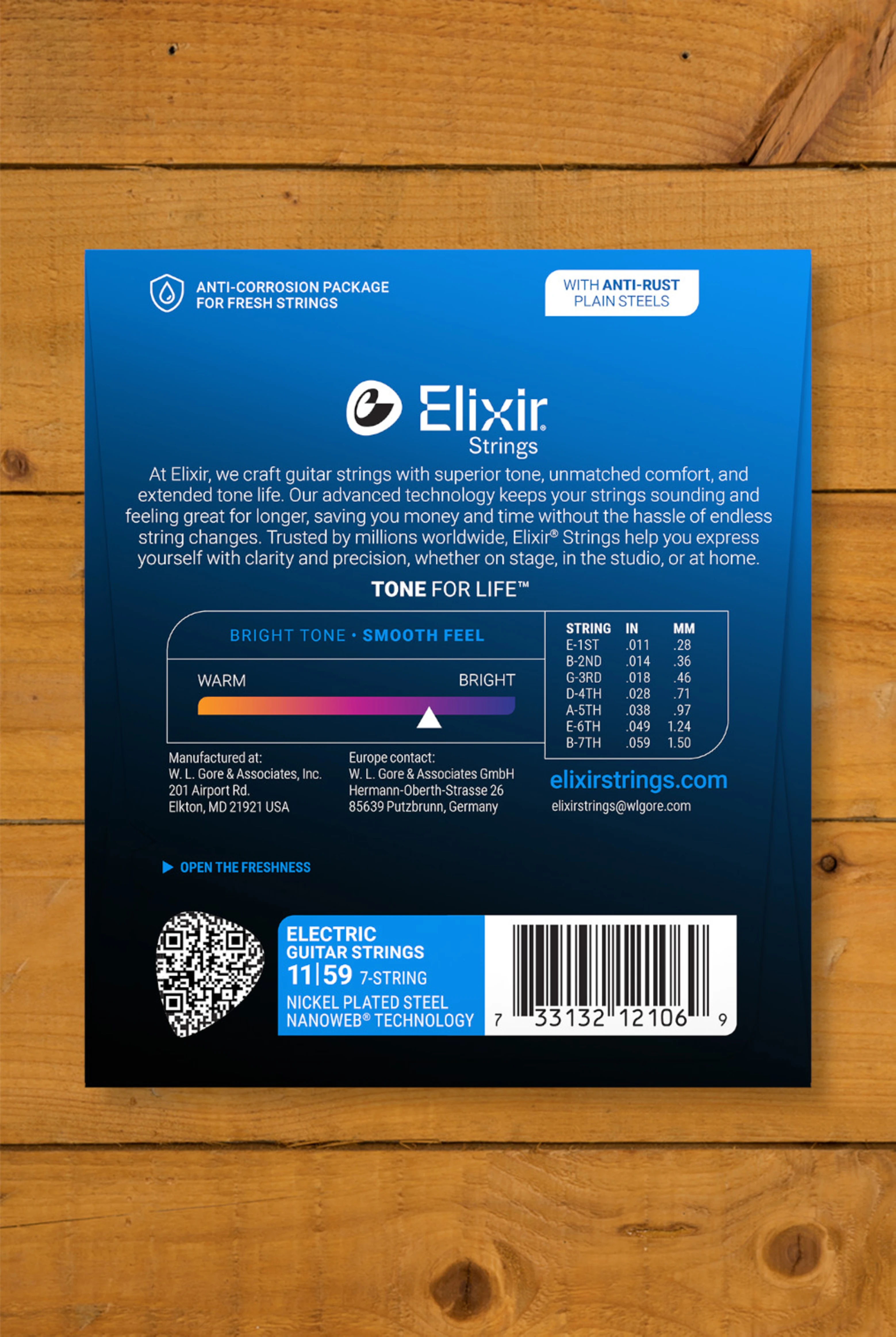 Elixir Electric Nickel Plated Steel Strings with NANOWEB Coating deliver the presence, punch, and personality of traditional electric guitar strings but with extended tone life.