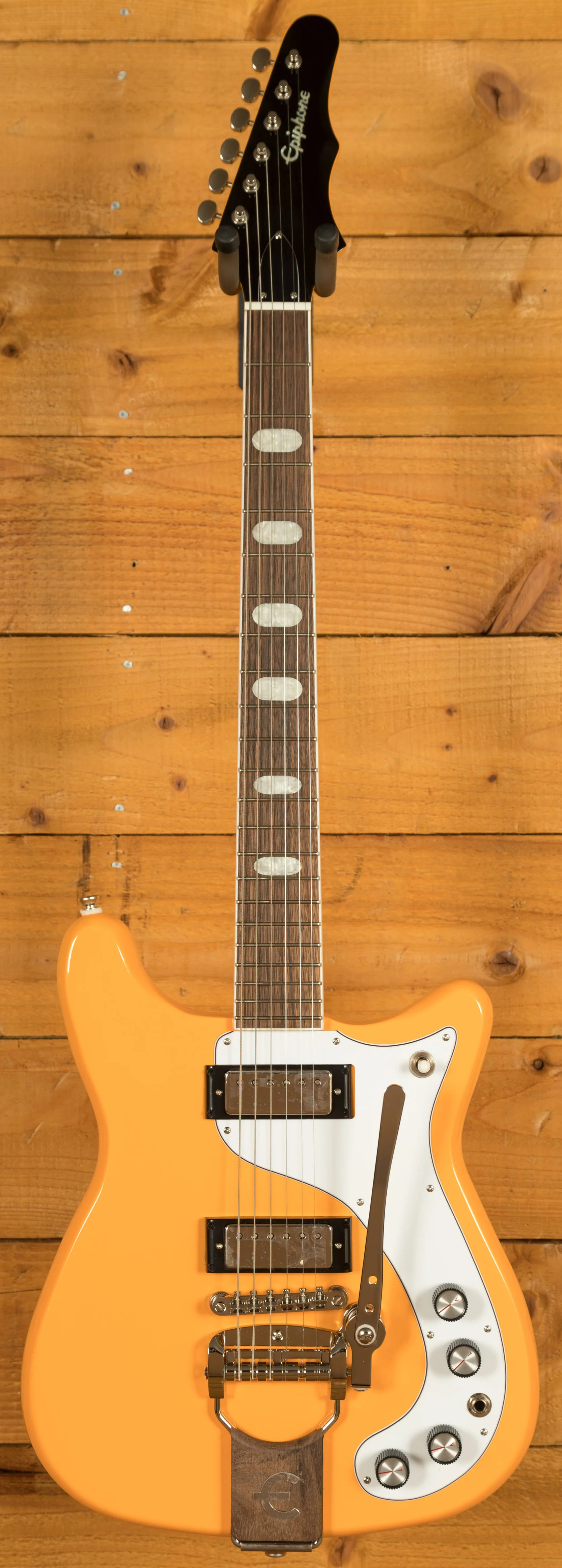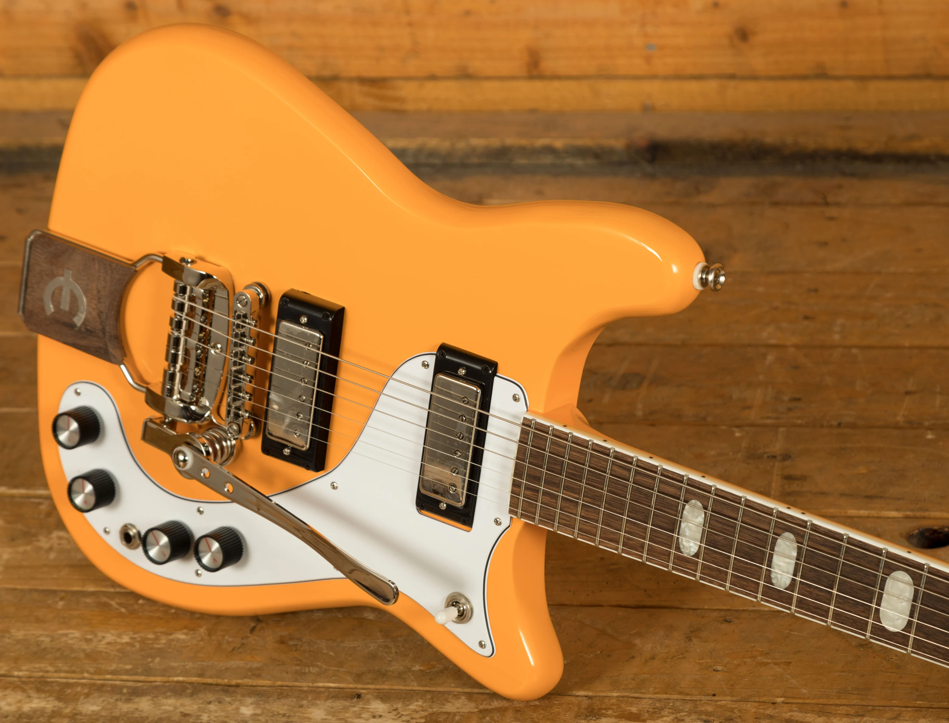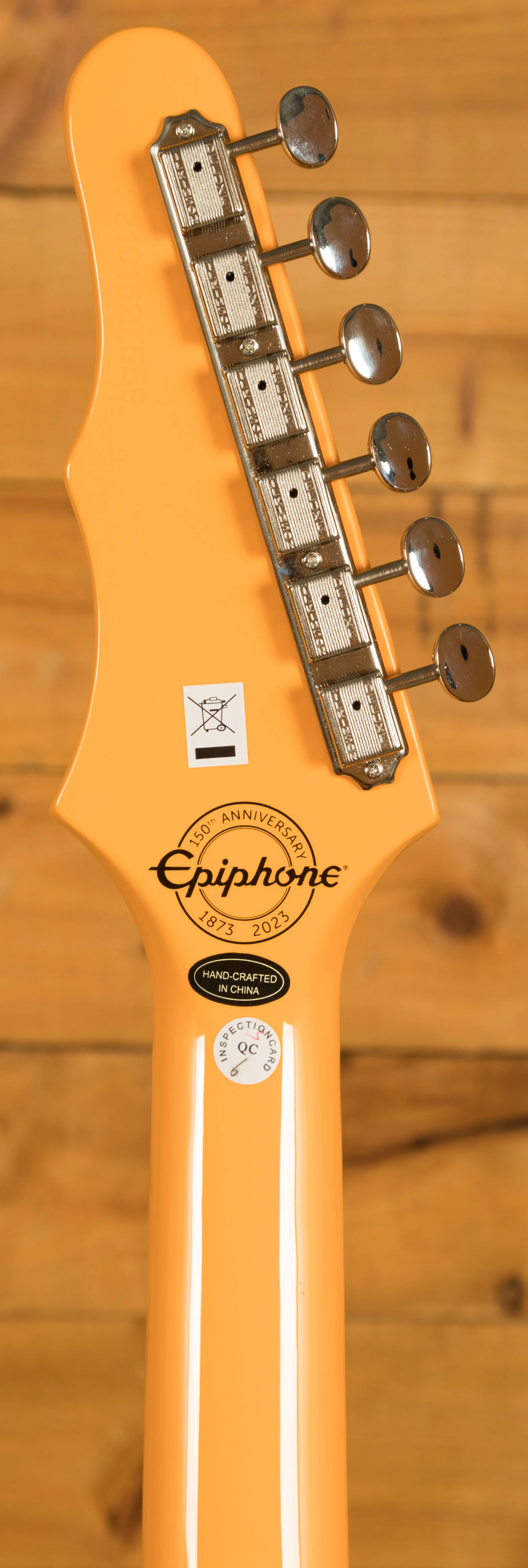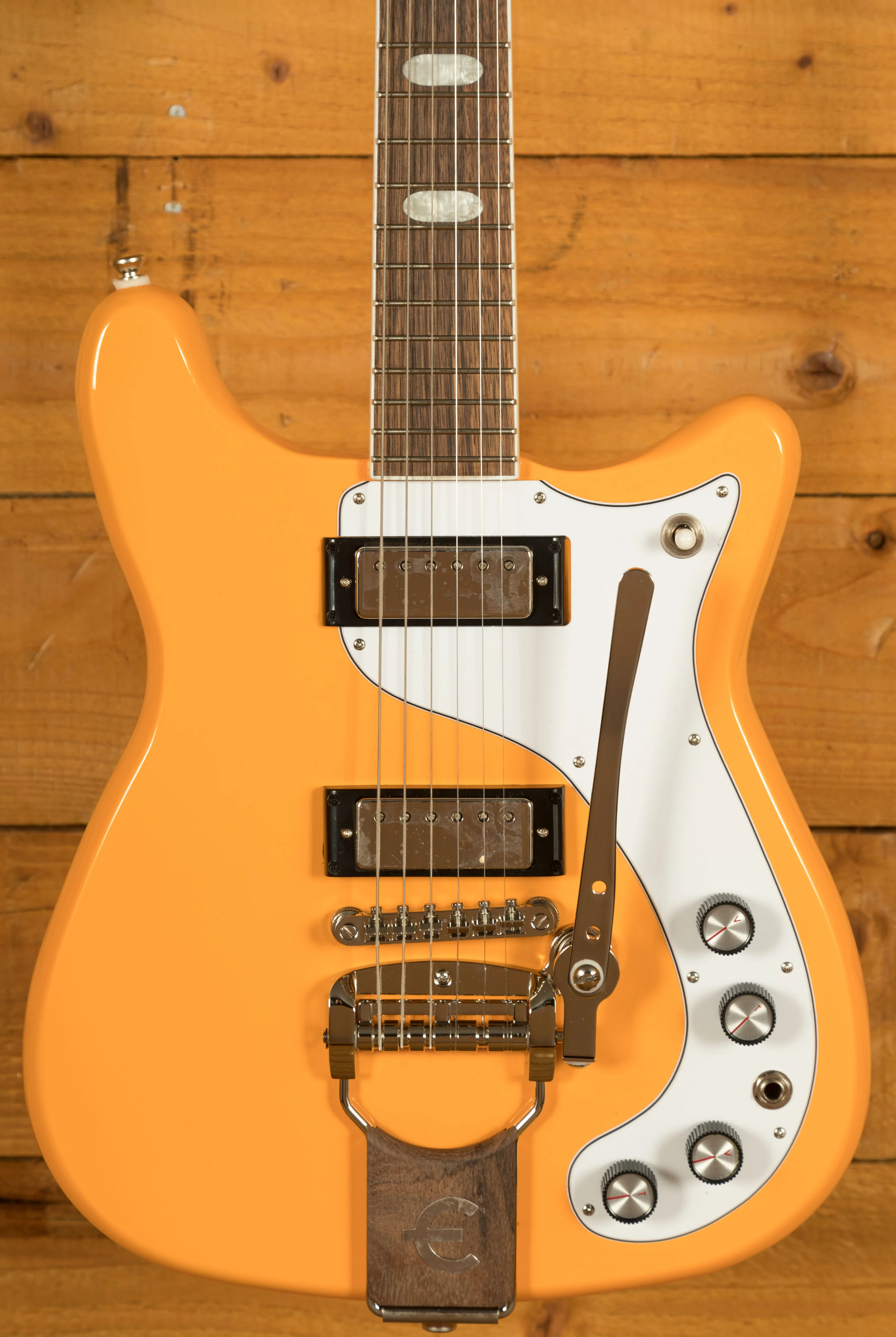 Introducing the limited edition Epiphone 150th Anniversary Crestwood Custom. From its original introduction in 1959, the Crestwood Custom has been one of Epiphone's most successful original solid body designs. This 150th anniversary model features a resonant Mahogany body which has been beautifully finished with a vibrant California Coral lacquer. With an asymmetrical body design this Wilshire allows for outstanding upper fret access.