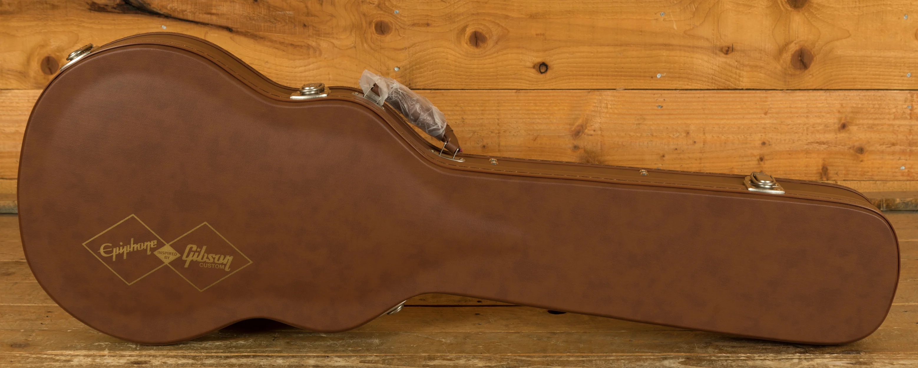 Hardware choices remain true to the period and enhance both tone and reliability. The ABR-1 Tune-O-Matic bridge and aluminium Stop Bar tailpiece contribute to rock-solid tuning stability and effective string vibration transfer. Nickel plating throughout the hardware offers classic looks with modern durability. The Epiphone Deluxe tuners feature Single Ring Keystone buttons, another period-correct touch that supports consistent tuning performance.