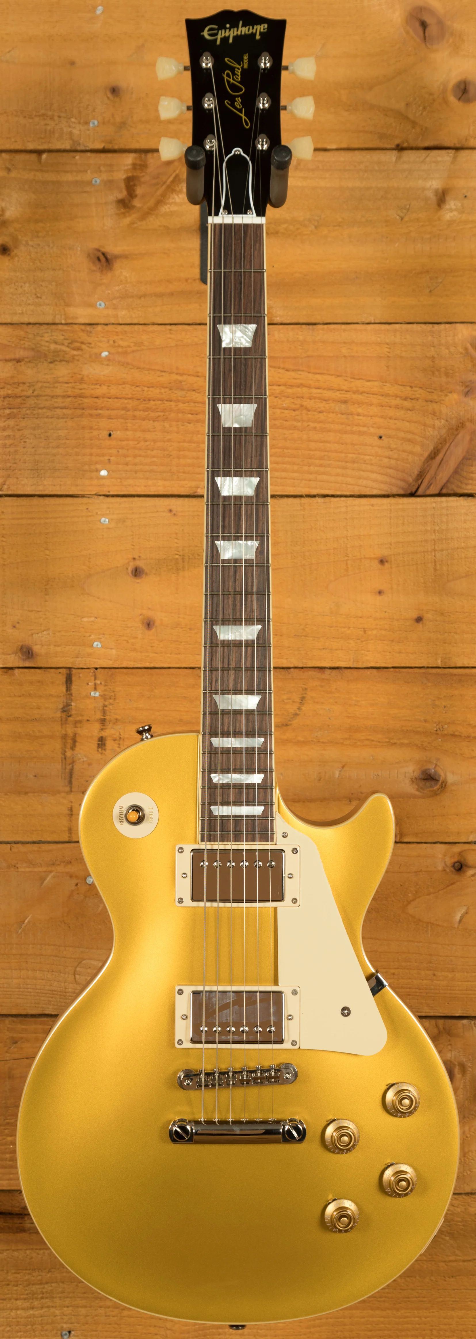 The Epiphone 1957 Les Paul Goldtop Reissue is a meticulously crafted electric guitar designed to deliver the tone, feel, and aesthetics of a classic late-'50s Les Paul at a more accessible price. Developed in collaboration with Gibson Custom, this model faithfully recreates the specifications of the original 1957 Goldtop, one of the most influential electric guitars in music history. With a solid mahogany body and a carved plain maple cap, this construction provides a balanced tonal foundation - warm and resonant from the mahogany, with added clarity and brightness from the maple top. The new Vintage Gloss finish gives the instrument a historically inspired appearance, with a lightly aged look that retains a clean, refined aesthetic.