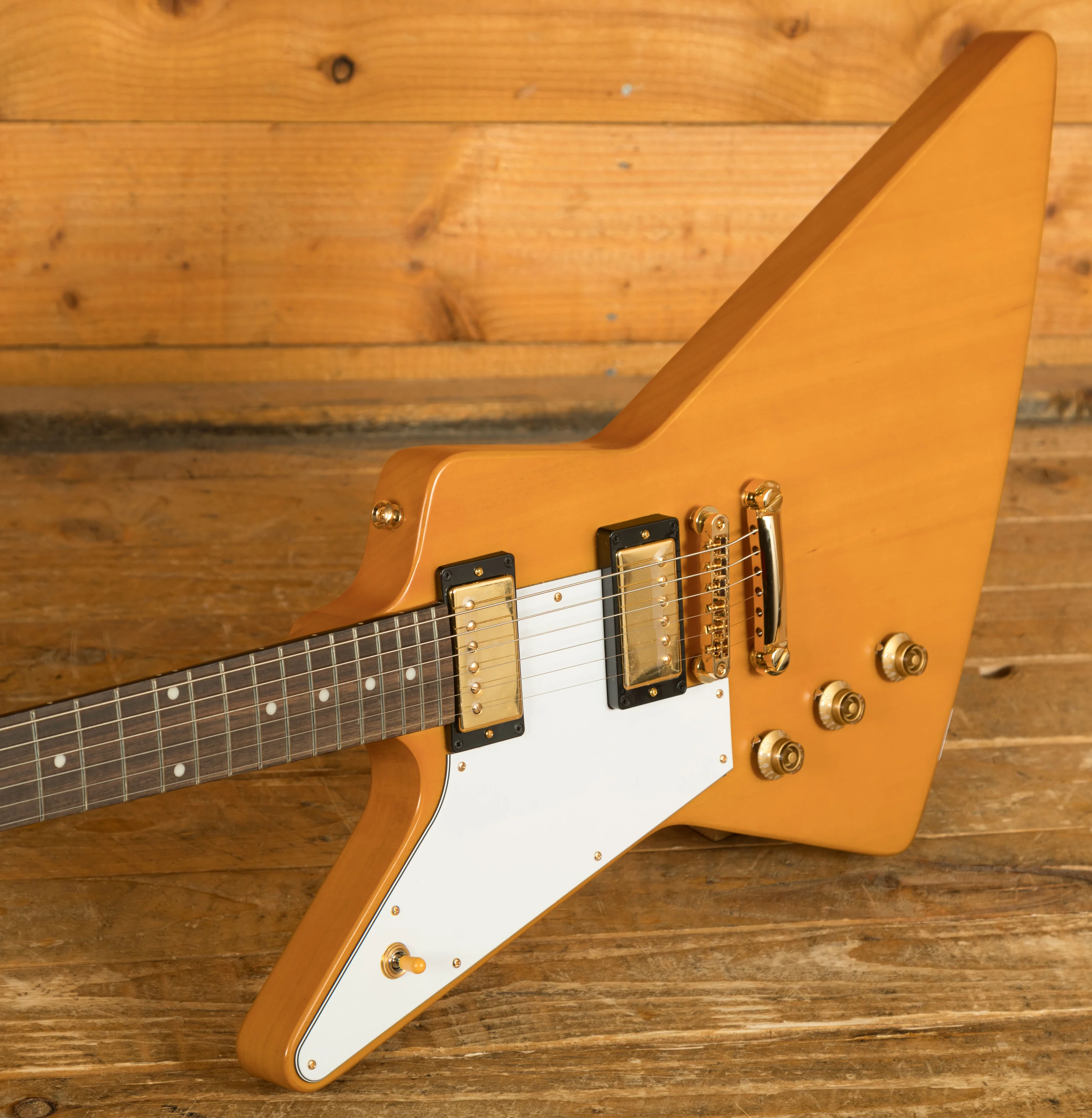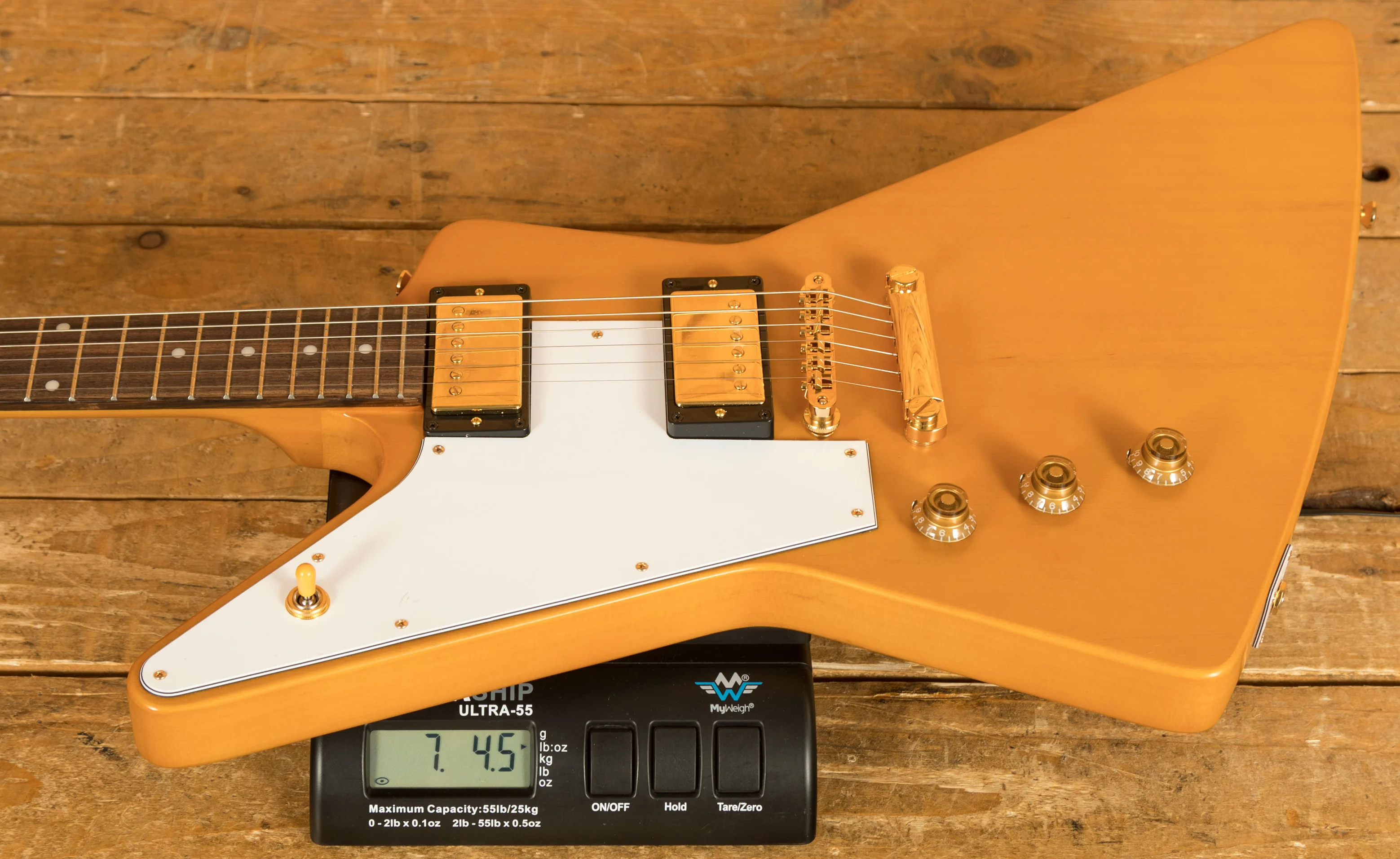 Drawing inspiration from the ultra-rare original Gibson models from 1958, this extraordinary guitar effortlessly captures the essence of its predecessors. At its core lies a solid Korina body, meticulously crafted to replicate the vintage aesthetics and tonal characteristics that have enthralled guitar enthusiasts for decades. The accompanying Korina neck features a long neck tenon, a hallmark of the 1958 Explorer, ensuring unparalleled sustain, resonance, and overall playability. With a 1958 Explorer neck profile, this instrument offers a supremely comfortable and familiar feel, empowering you to unleash your musical creativity with absolute confidence.