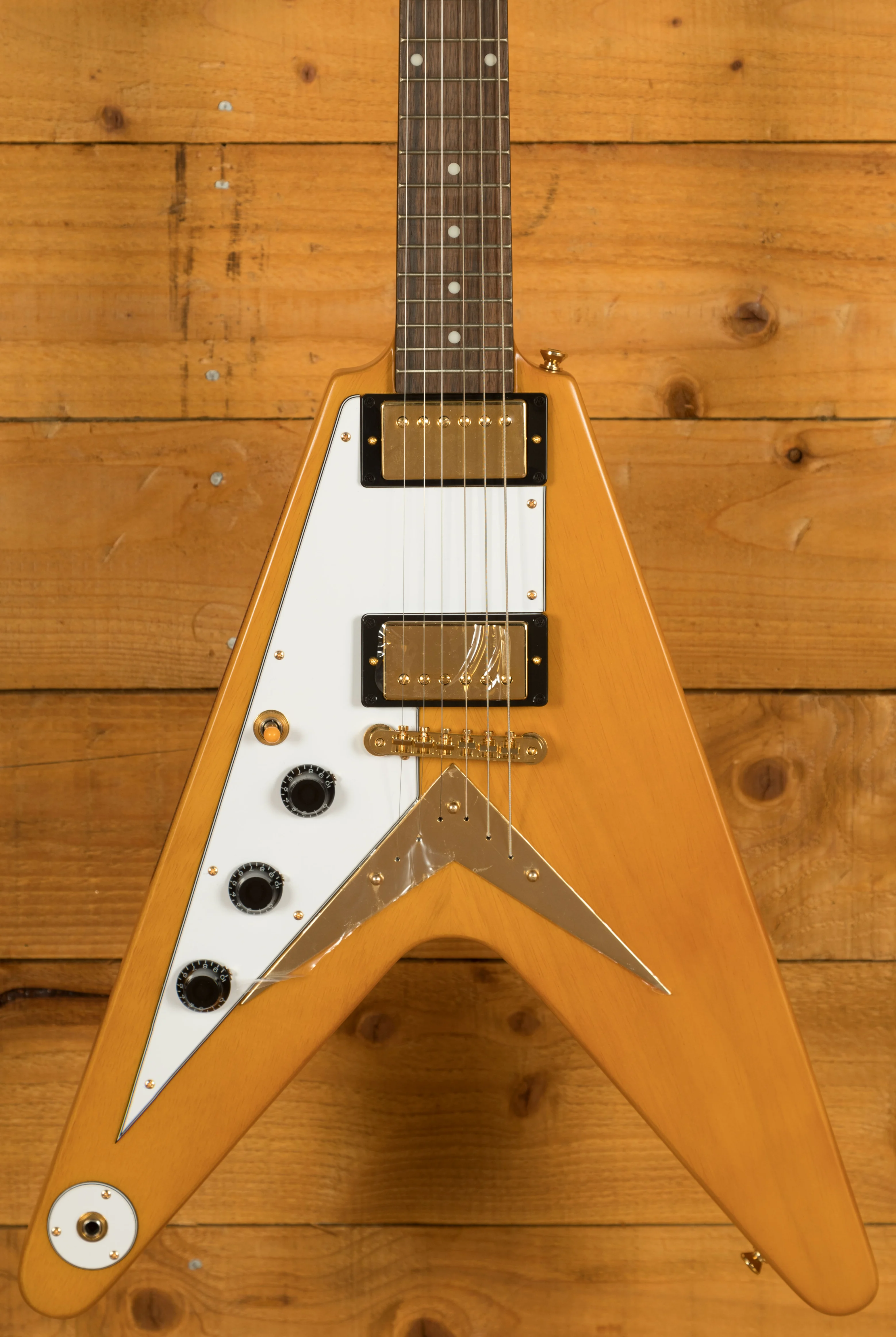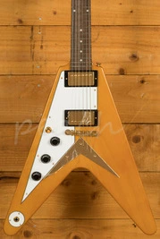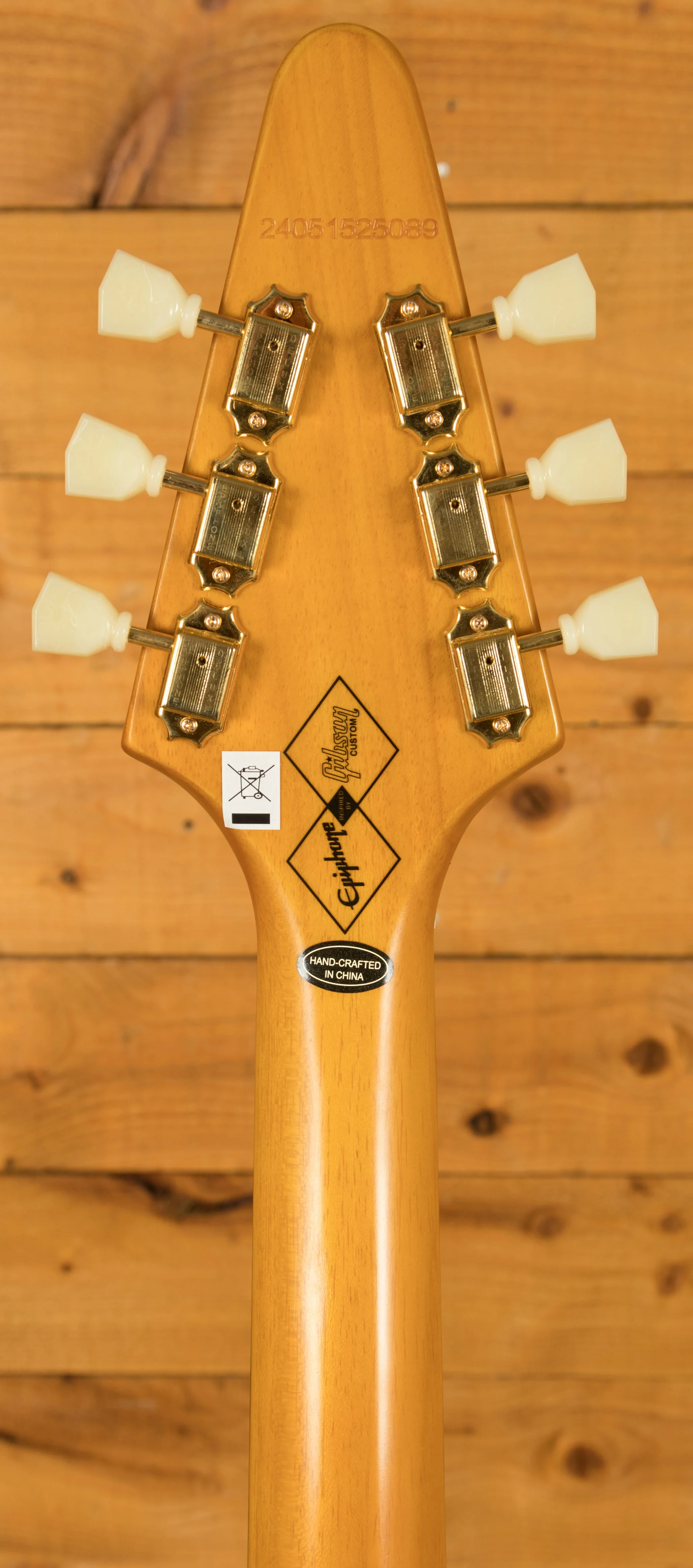 Introducing the Epiphone 1958 Flying V, a marvel of craftsmanship and musical history brought to life in collaboration with the renowned Gibson Custom Shop. This extraordinary instrument stands as an impeccable recreation of one of the most revered and sought-after vintage guitars ever made. Prepare to be captivated by its mesmerising beauty, unparalleled playability, and a tonal palette that will elevate your musical expression to new heights.