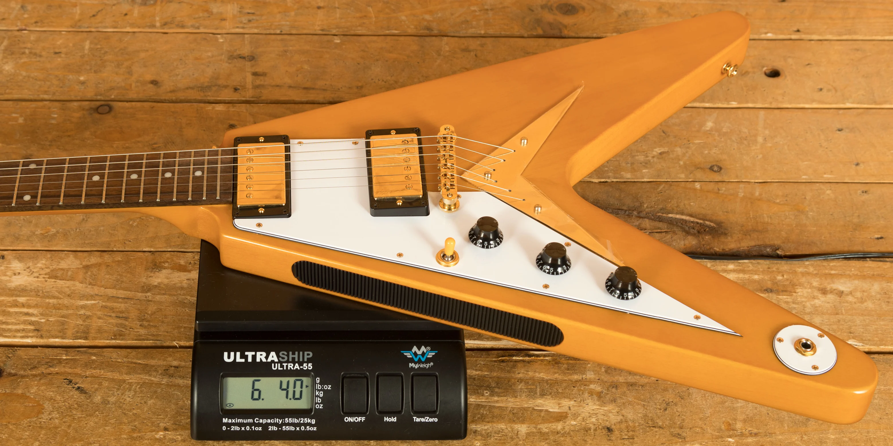 Experience flawless intonation and effortless string bending, thanks to the 22 medium jumbo frets and Graph Tech nuts, meticulously crafted to optimise your playing experience. The ABR-1 Style bridge with Gold Plated Brass Flying V String Plate not only ensures optimal string alignment but also enhances the instrument's overall resonance, allowing every note to soar with remarkable clarity and sustain.