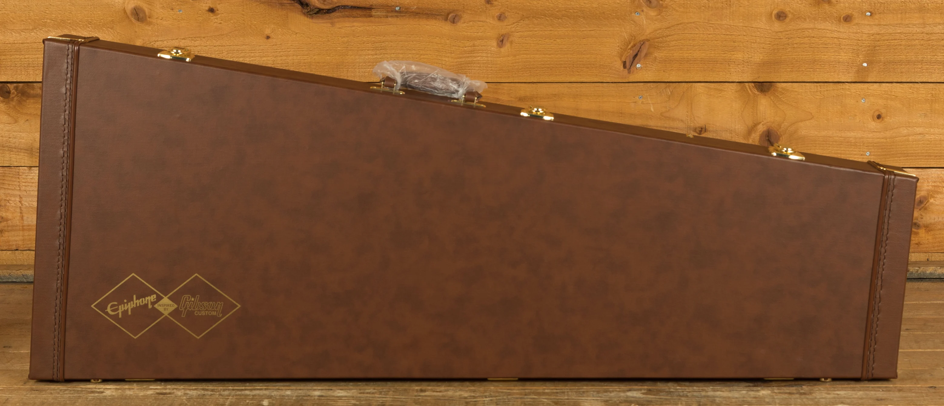 Proudly displaying the Epiphone x Gibson Custom logo on the back of the headstock, this exquisite instrument bears the mark of a true collaboration between two giants of the guitar world. It stands as a testament to Epiphone's commitment to delivering exceptional craftsmanship and unmatched quality. To ensure its safekeeping, a hardshell case is thoughtfully included, providing optimal protection for your prized possession during travel or storage.