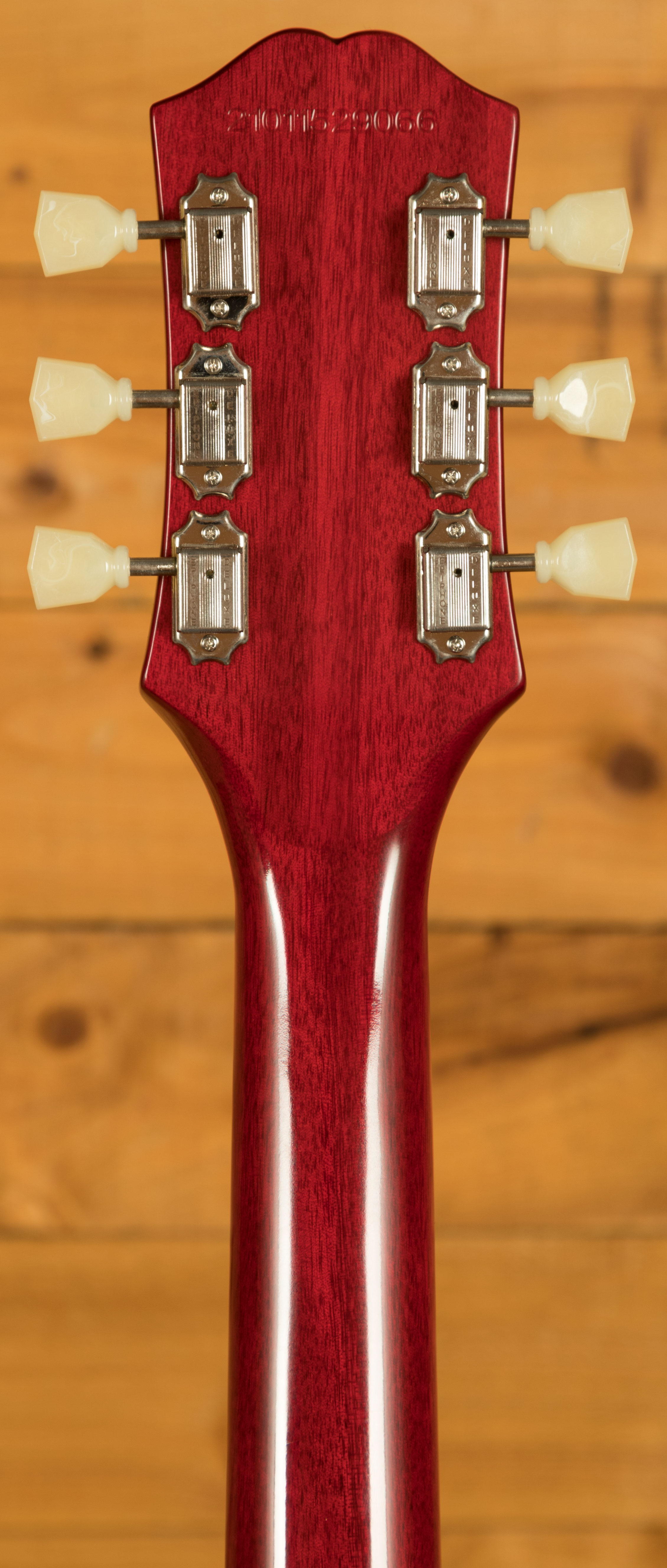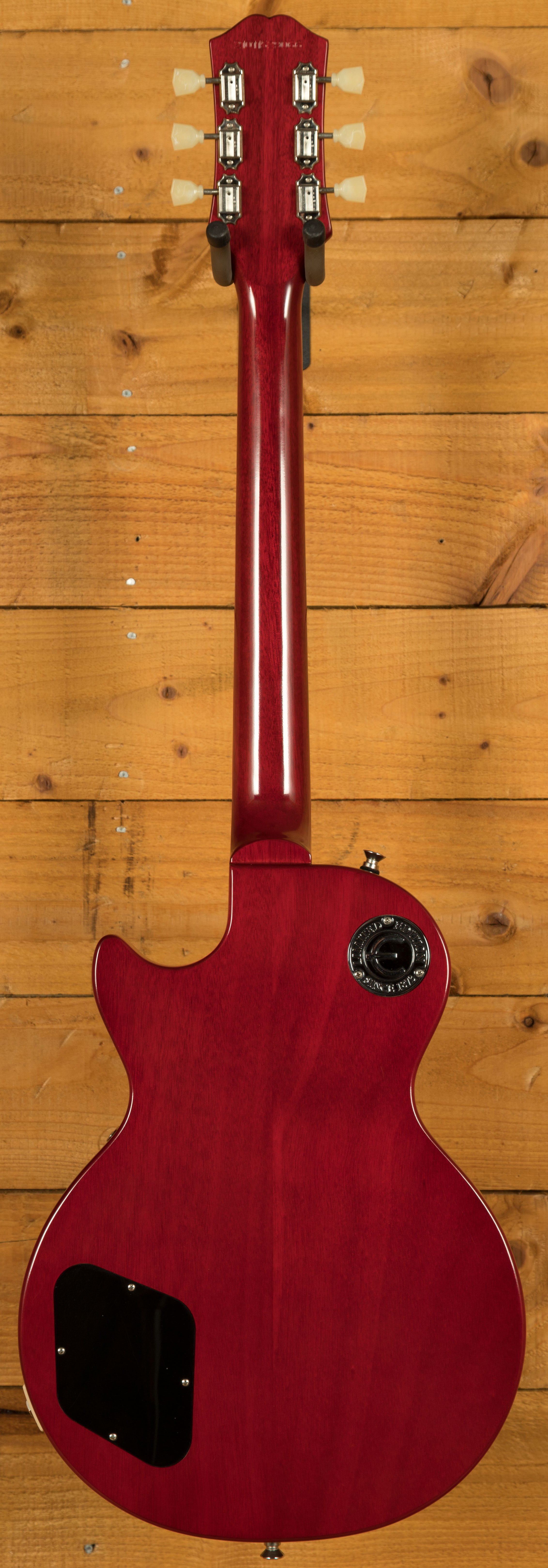 The neck is built to original 1959 specifications, featuring a hand-rolled "C" profile and a long neck tenon for improved sustain and stability. Its 12" radius laurel fingerboard provides a smooth, responsive playing surface with 22 medium jumbo frets, allowing for comfortable playability across all styles. Whether used for expressive bends, articulate solos, or precise rhythm work, this neck design ensures comfort and consistency during extended playing sessions. High-quality hardware, including Epiphone Deluxe vintage tuners, a Graph Tech NuBone nut, and a LockTone Tune-O-Matic ABR-1 bridge with stopbar, guarantees tuning stability and accurate intonation, allowing players to perform confidently in any setting.