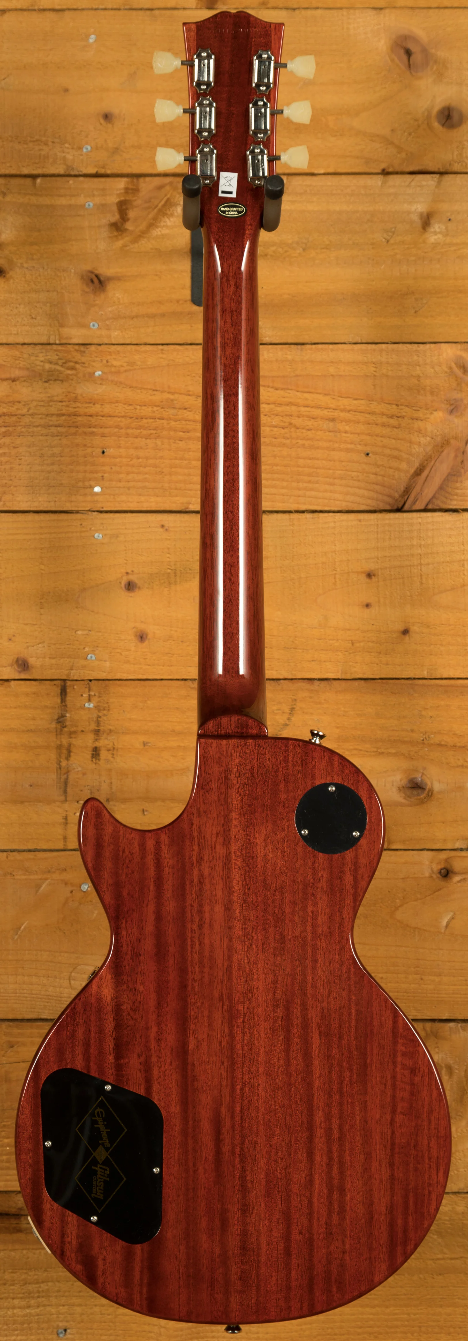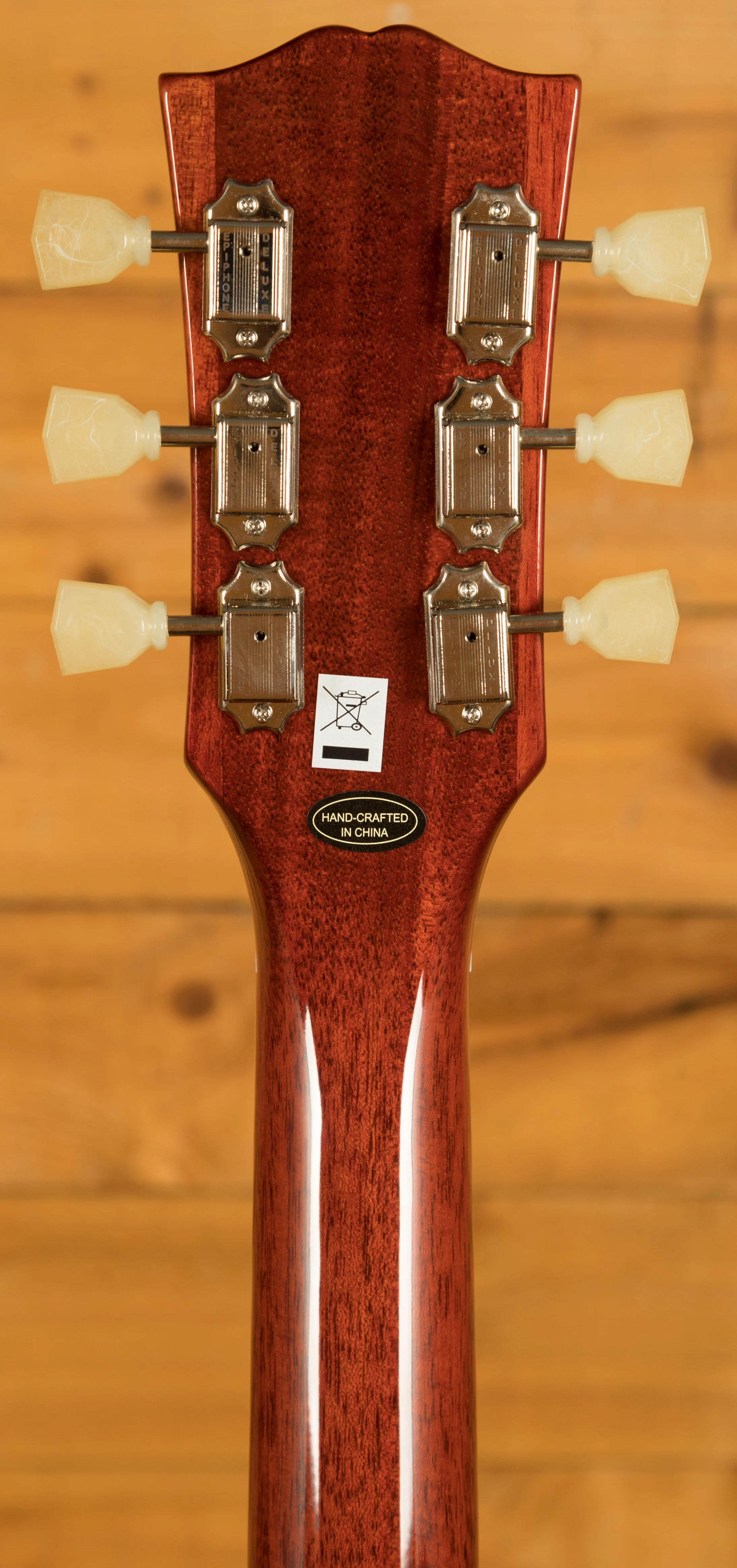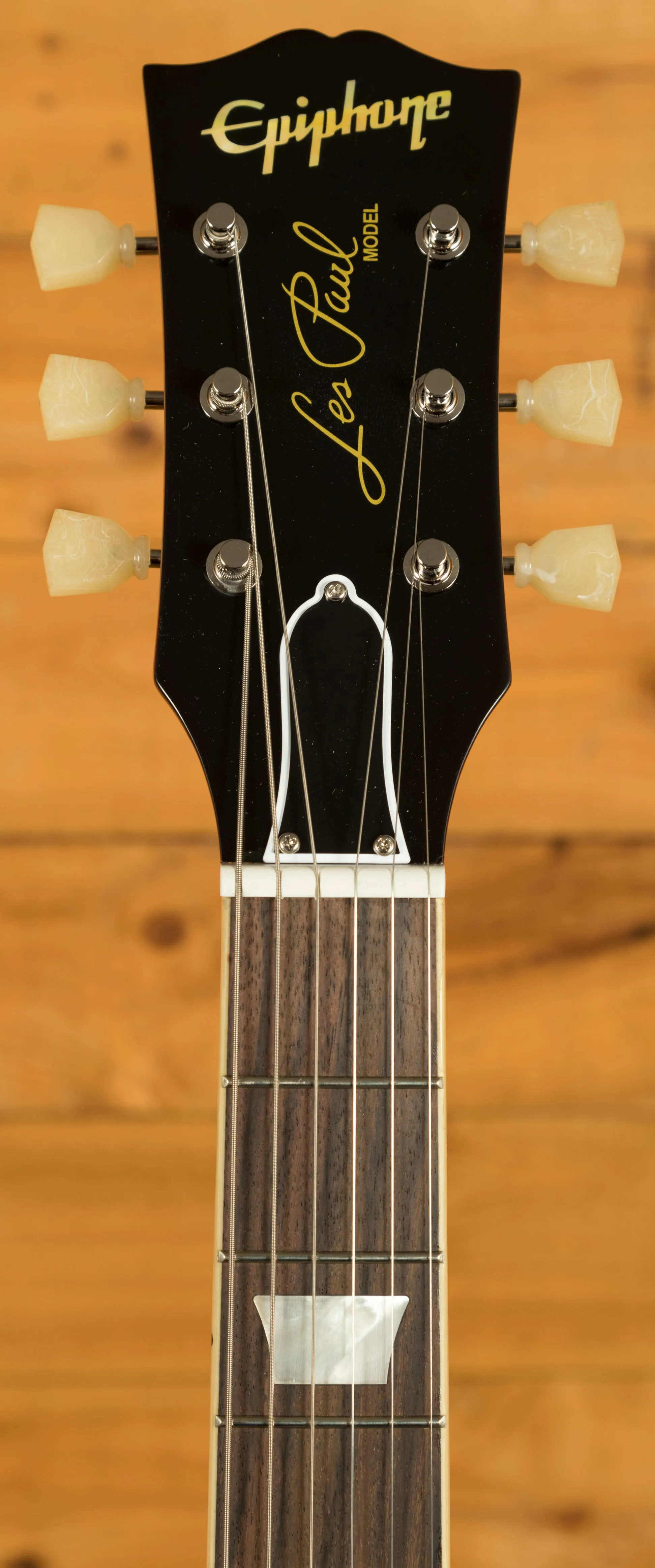 Additional features include an ABR-1 Tune-O-Matic bridge and historical aluminium tailpiece for enhanced tuning stability and sustain, along with nickel-plated Epiphone Deluxe tuners featuring Single Ring Keystone buttons. The guitar comes with a hardshell case that features a brown exterior, pink plush-lined interior, and Inspired by Gibson Custom graphics - offering protection and vintage styling for transport and storage. This model is ideal for players who want classic looks, professional performance, and a connection to the most legendary era of the Les Paul.