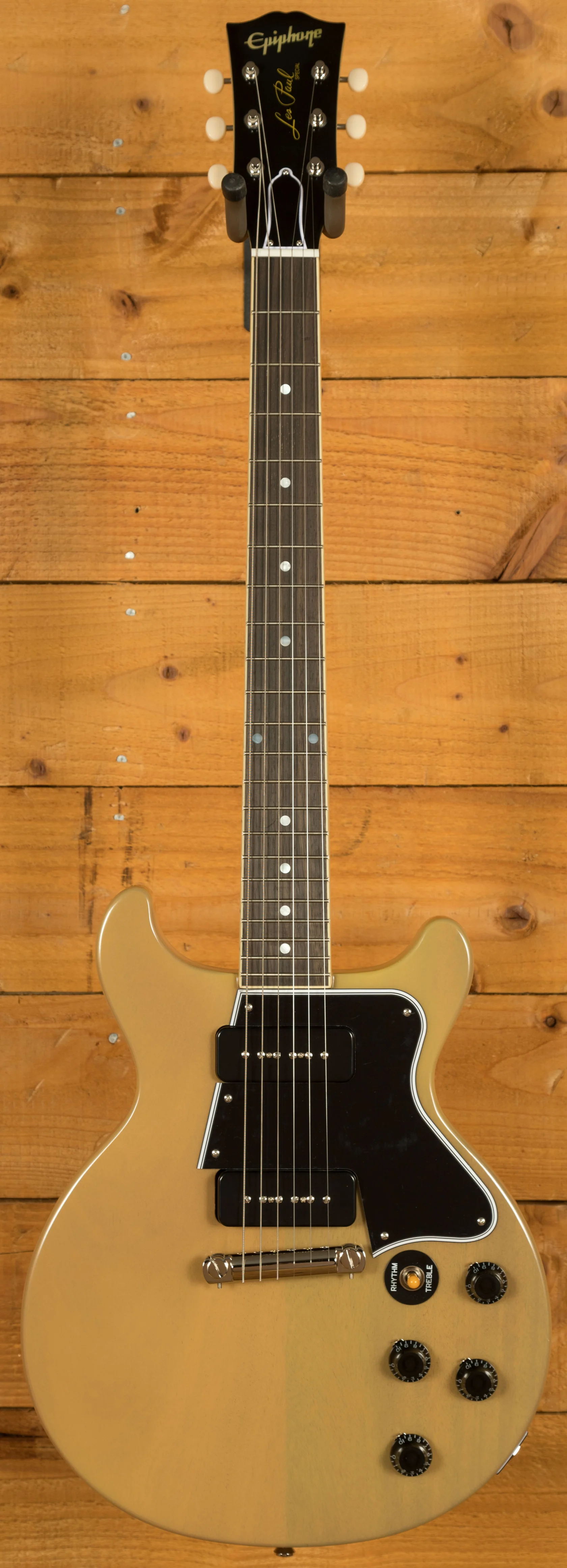 Much like the original Gibson design, this Epiphone model features a slab Mahogany body finished in a classic TV Yellow finish. Thanks to the double cutaway design, this guitar offers excellent access to all areas of the fretboard, making solos super easy. The black pickguard contrasts brilliantly against the TV Yellow finish, these look super classy