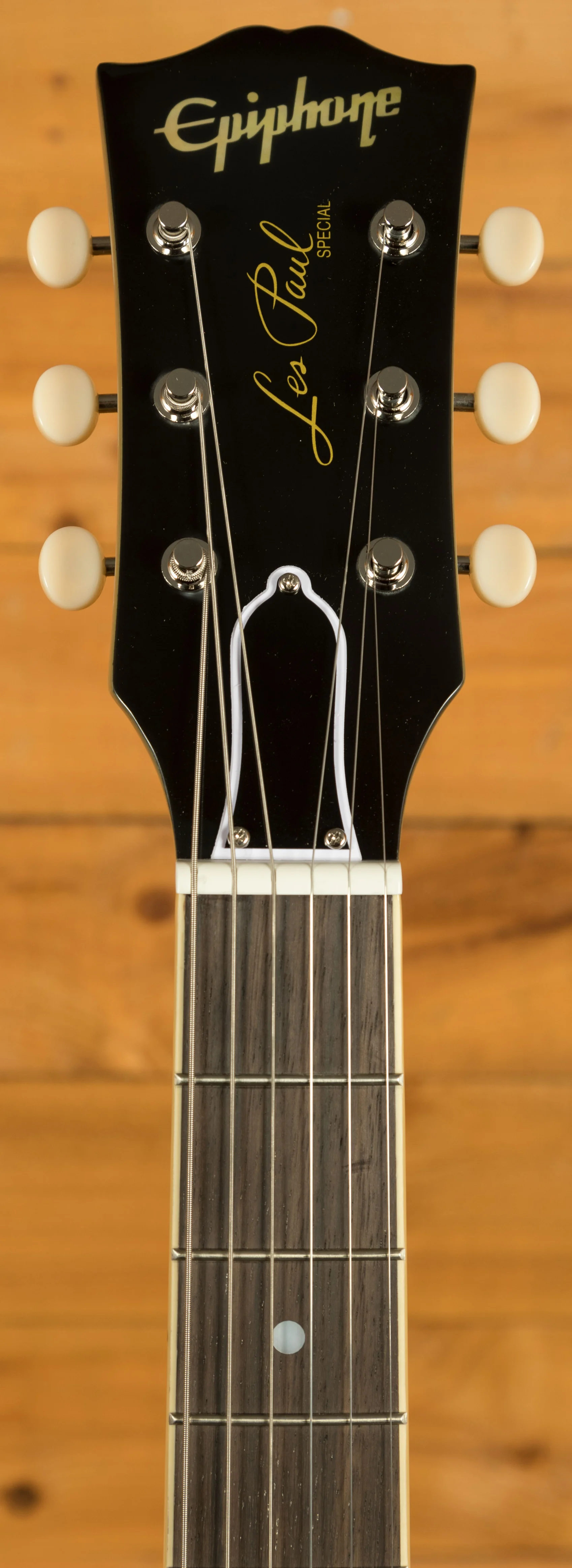 The one-piece mahogany neck features a fast-playing 60s Slim Taper profile and is topped with a rosewood fretboard, fitted with 22 medium jumbo frets and mother-of-pearl dot inlays. With a 12-inch radius, the fretboard makes both first-position chords and higher-up solos with string bends feel smooth and effortless. One of the most exciting features about this model is the addition of a Gibson style “Open Book” headstock which gives this guitar an authentic Gibson look.