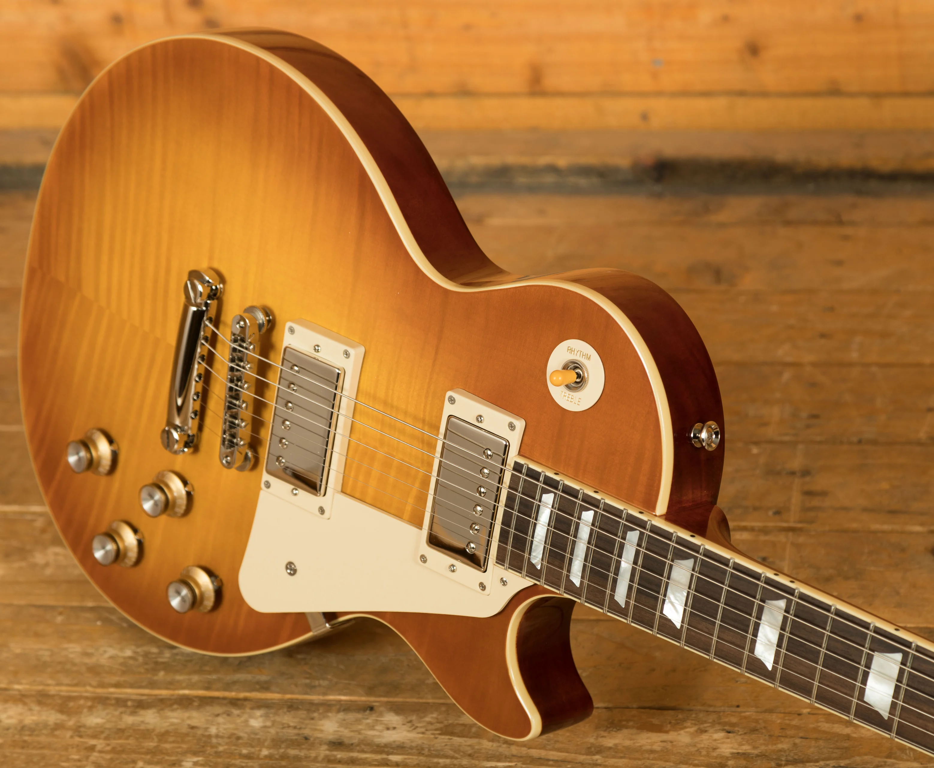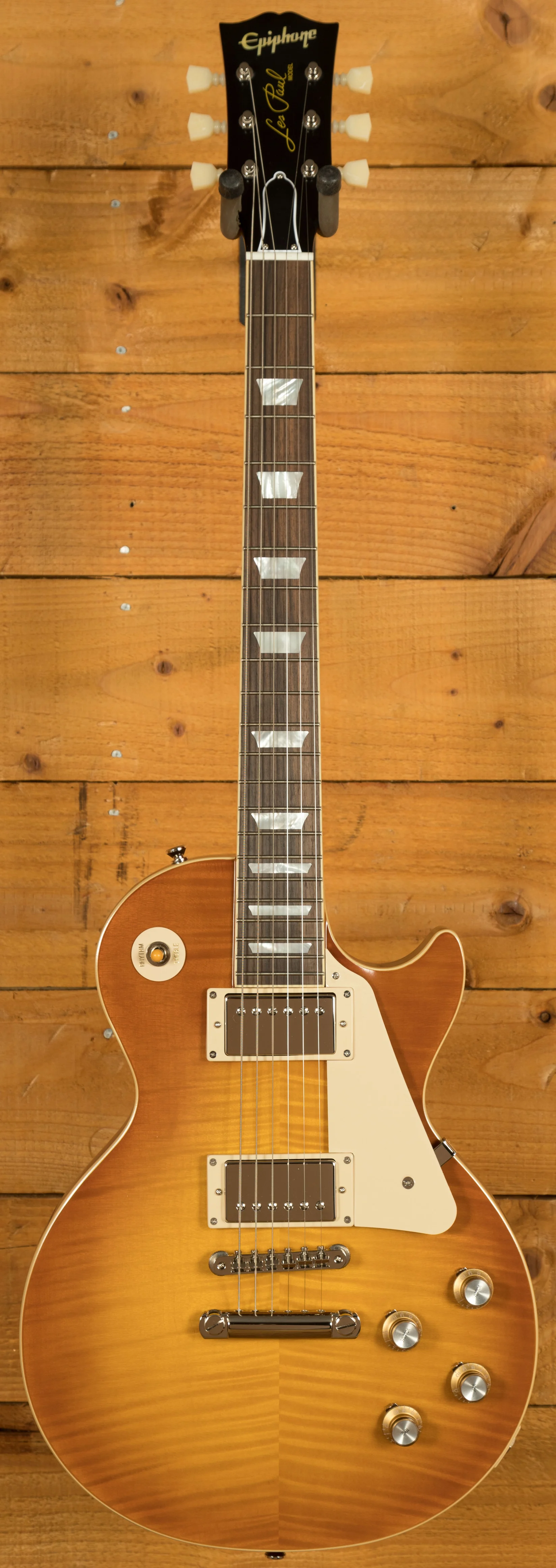 The Epiphone 1960 Les Paul Standard Reissue is a detailed and accurate recreation of one of the most iconic electric guitars in history. Developed in collaboration with Gibson Custom, this model offers the look, feel, and tone of the original 1960 Les Paul Standard at a more accessible price point. It features a solid mahogany body topped with a carved maple cap and AAA flamed maple veneer, delivering the resonant warmth and brightness that define the classic Les Paul tone.