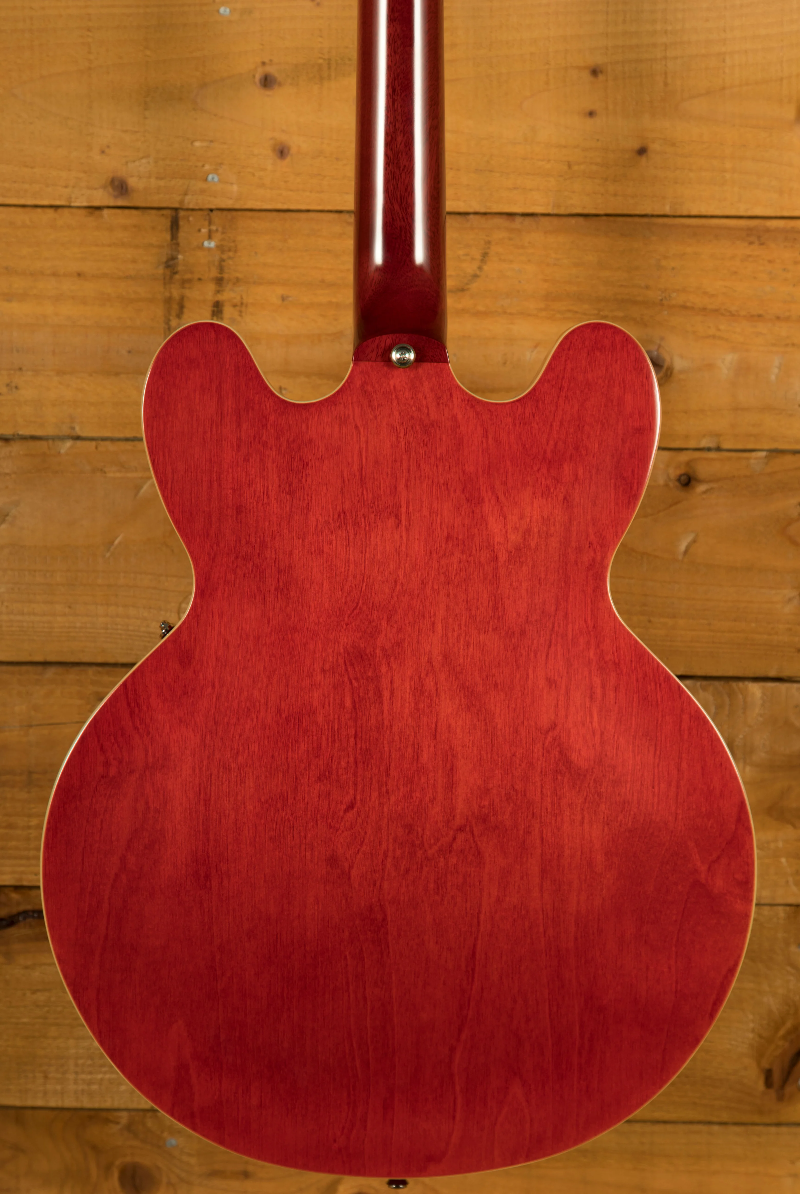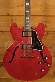 For tone, the Epiphone 1962 ES-335 Reissue is equipped with a pair of USA-made Gibson Custombuckers. These pickups are known for delivering a warm, articulate sound that closely matches the tonal character of ES-335's of that period. The electronics are hand-wired using CTS potentiometers and Black Beauty paper-in-oil capacitors, components prized for their durability and tonal fidelity.