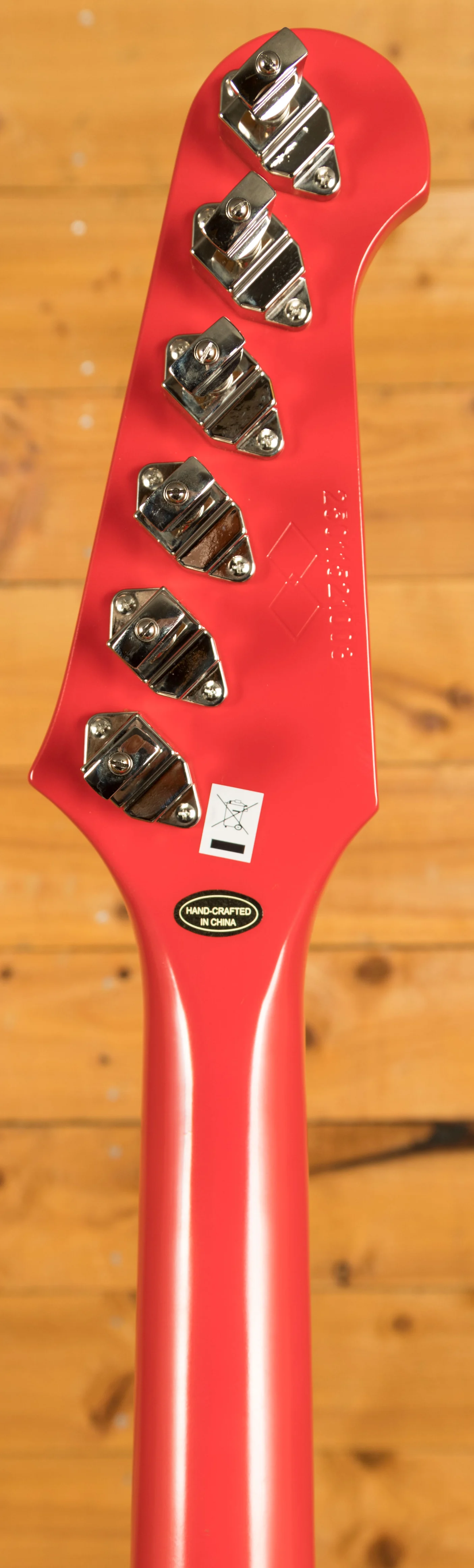 The Mahogany/Walnut neck through body is finished in a lush Cardinal Red with a White pickguard for a fresh, vibrant appeal. It's resonant and nicely balanced too, despite its larger size. The Mahogany neck benefits from 22 frets, a 24.75" scale length, ‘63 spec neck profile and a killer Rosewood fingerboard. Super stable and supremely comfortable this is a real player's guitar.
