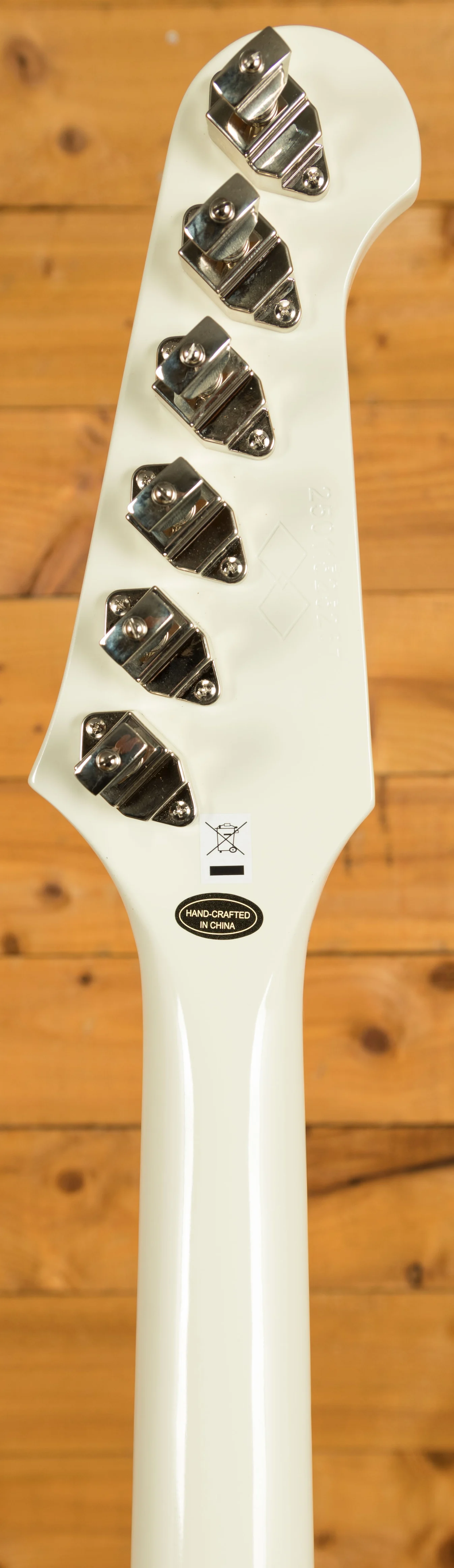 The Mahogany/Walnut neck through body is finished in a lush Polaris White with a White pickguard for a fresh, vibrant appeal. It's resonant and nicely balanced too, despite its larger size. The Mahogany neck benefits from 22 frets, a 24.75" scale length, ‘63 spec neck profile and a killer Rosewood fingerboard. Super stable and supremely comfortable this is a real player's guitar. It is also equipped vintage spec Kluson Banjo-Style planetary tuners.