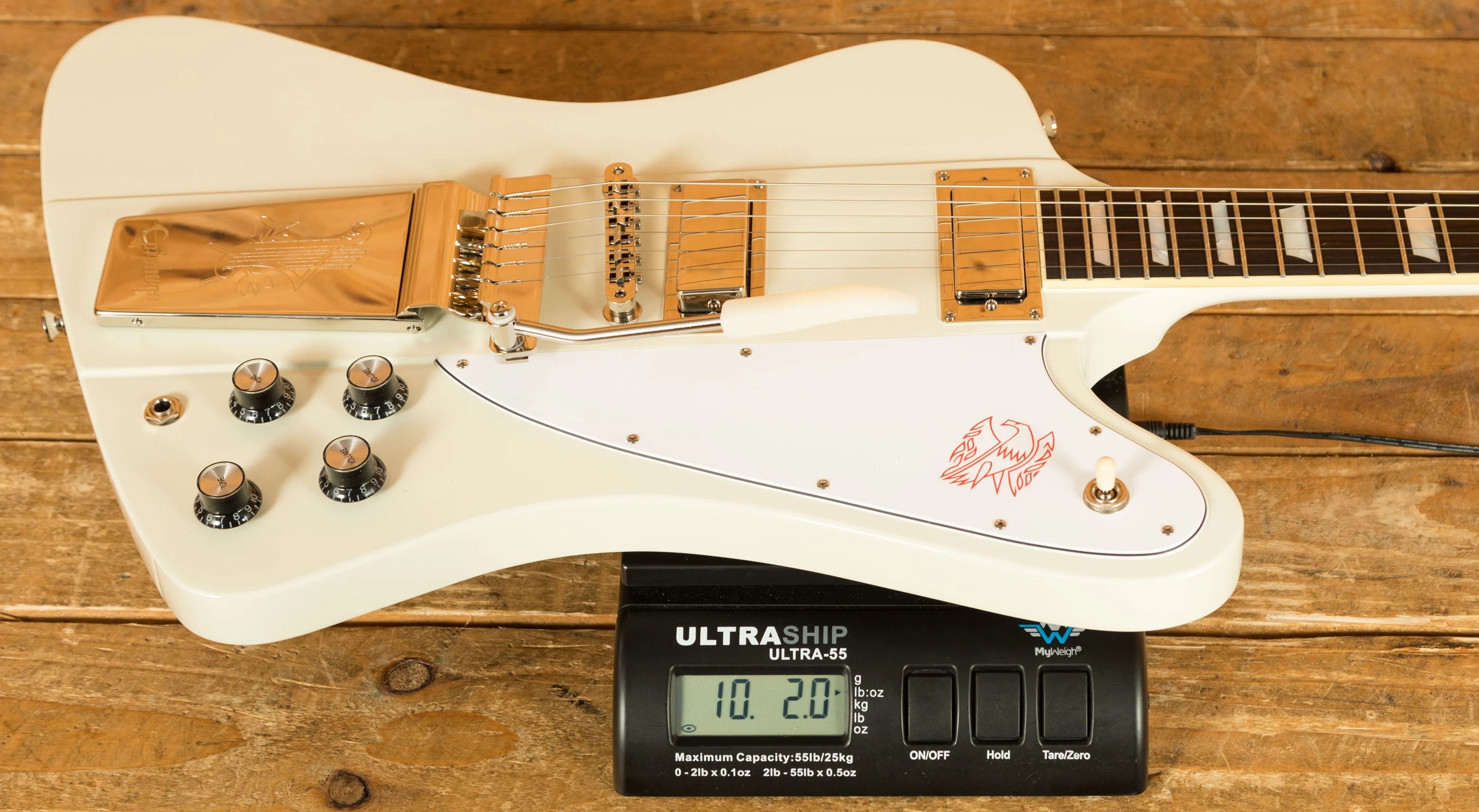 Loaded with a pair of Gibson USA Firebird Mini Humbuckers this Firebird V delivers tone by the bucket load. With a really unique sonic character it is versatile, dynamic and offers crystal clear note definition. In classic Firebird V fashion this Epiphone is equipped with a traditional Maestro Vibrola, allowing for incredible tuning stability.